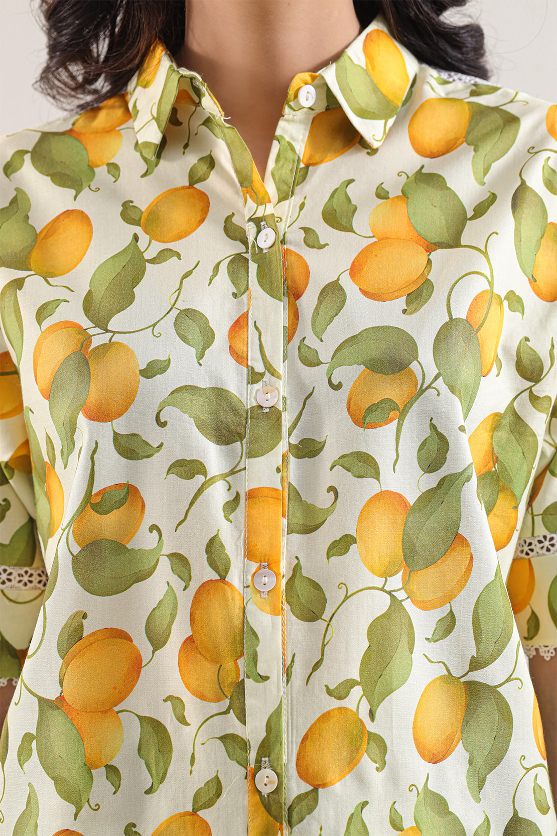 An Elevated Ready-To-Wear Shirt Crafted From Distinctively Textured Dobby Self Fabric That Offers Subtle Visual Depth And Light Structure. The Tailored Silhouette Features A Delicate Printed Pattern Infused With Understated Elegance, Perfect For Everyday Sophistication. This SAYA Shirt Blends Refined Detail With Breathable Comfort—Ideal For Transitional Styling, Casual Daywear, Or Graceful Layered Looks.