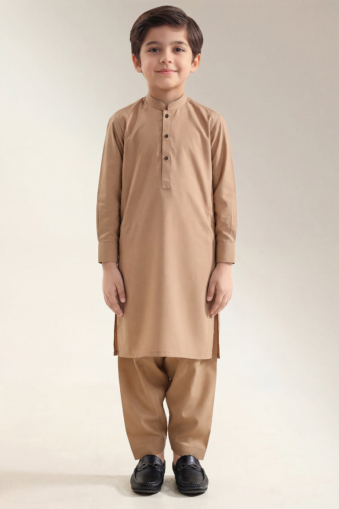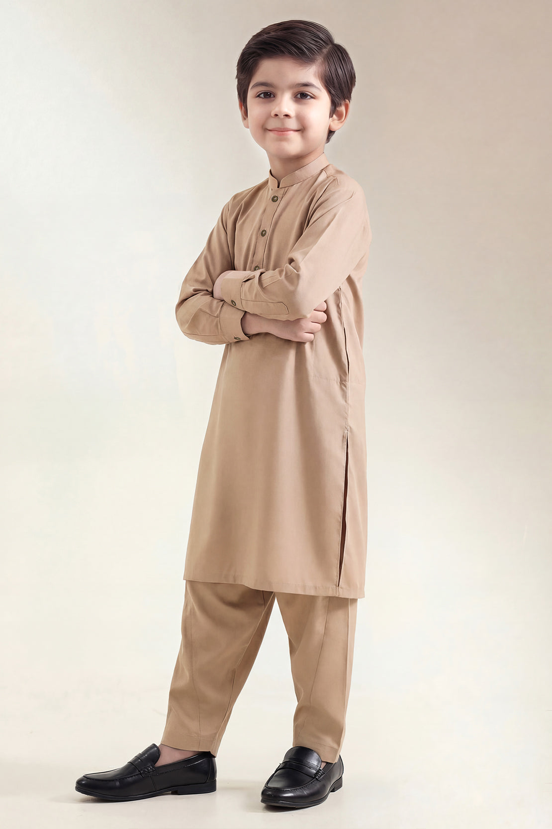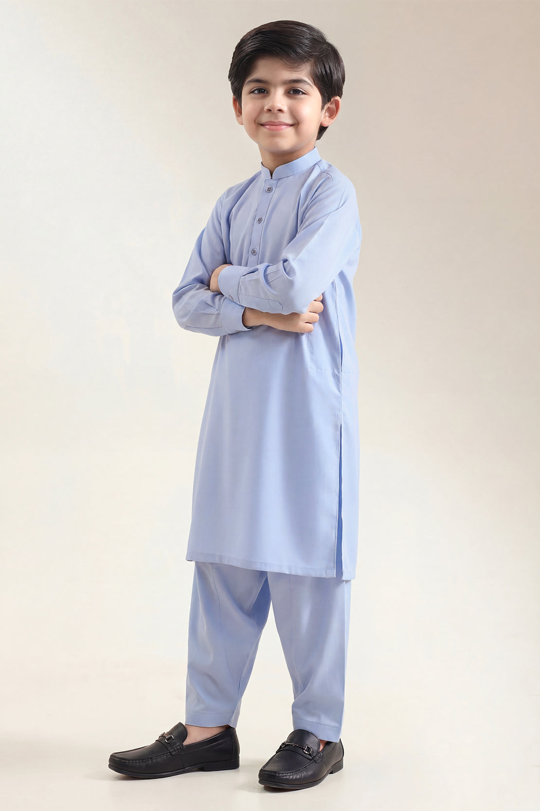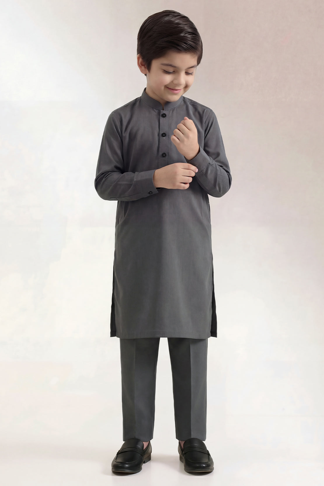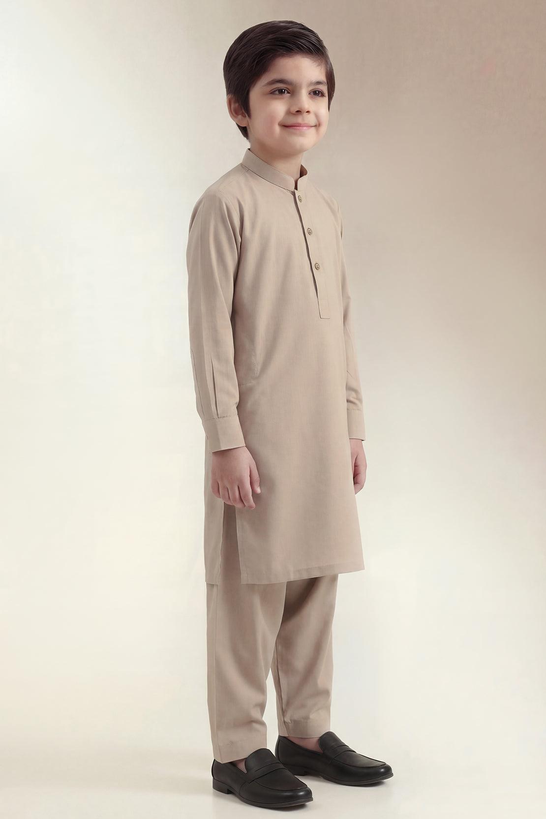 Solid Wash N Wear Stitched 2 Piece (Shirt/Trouser) For Boys