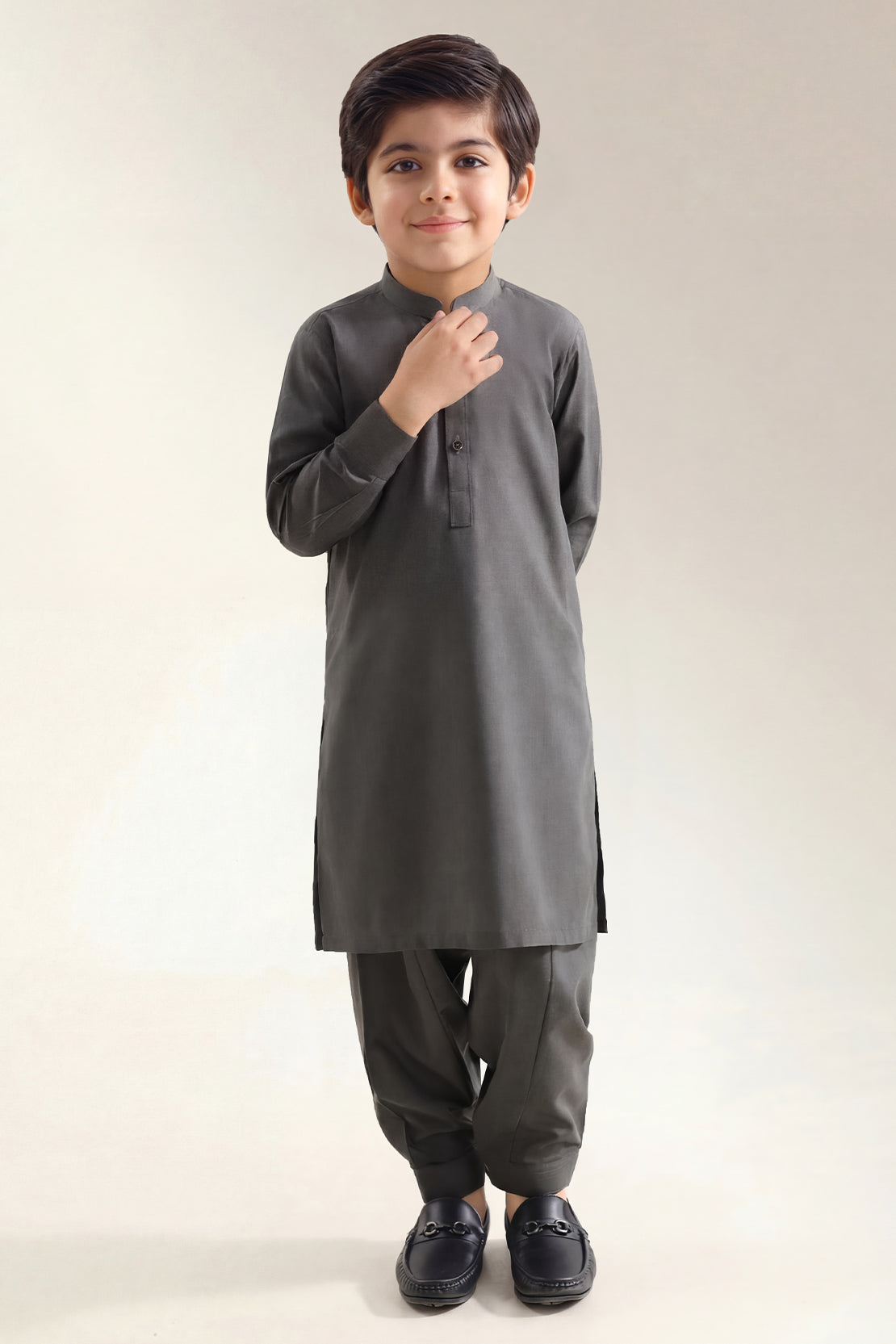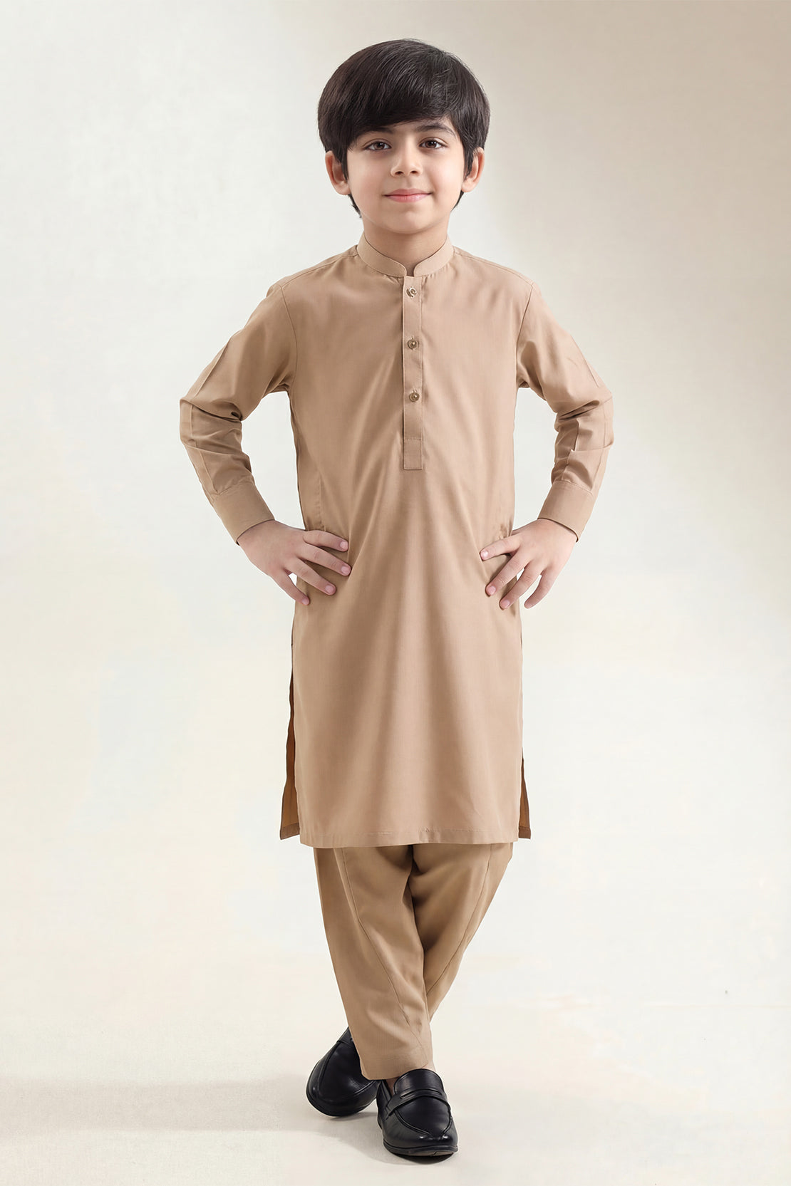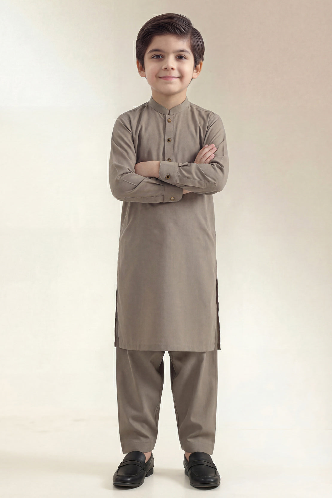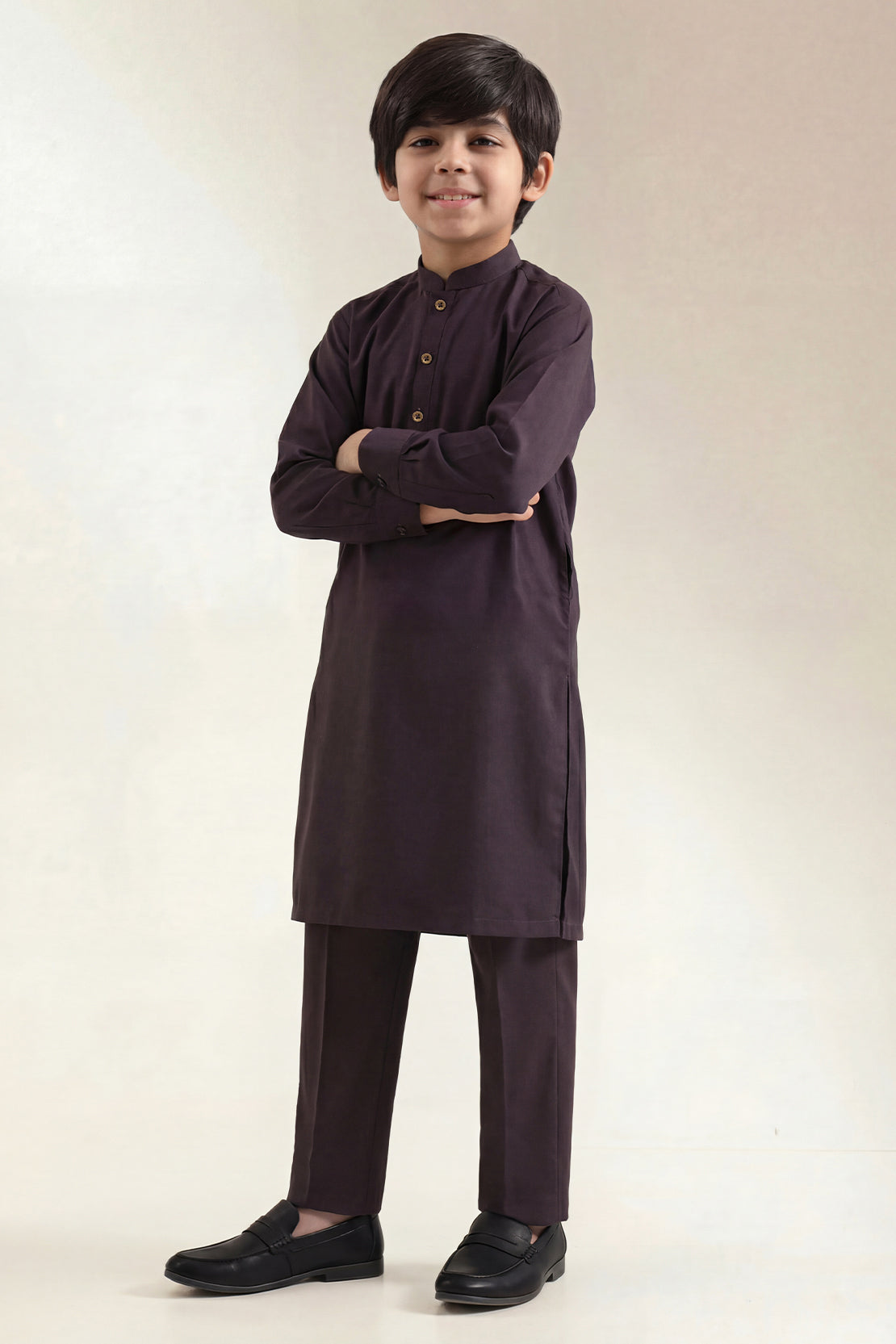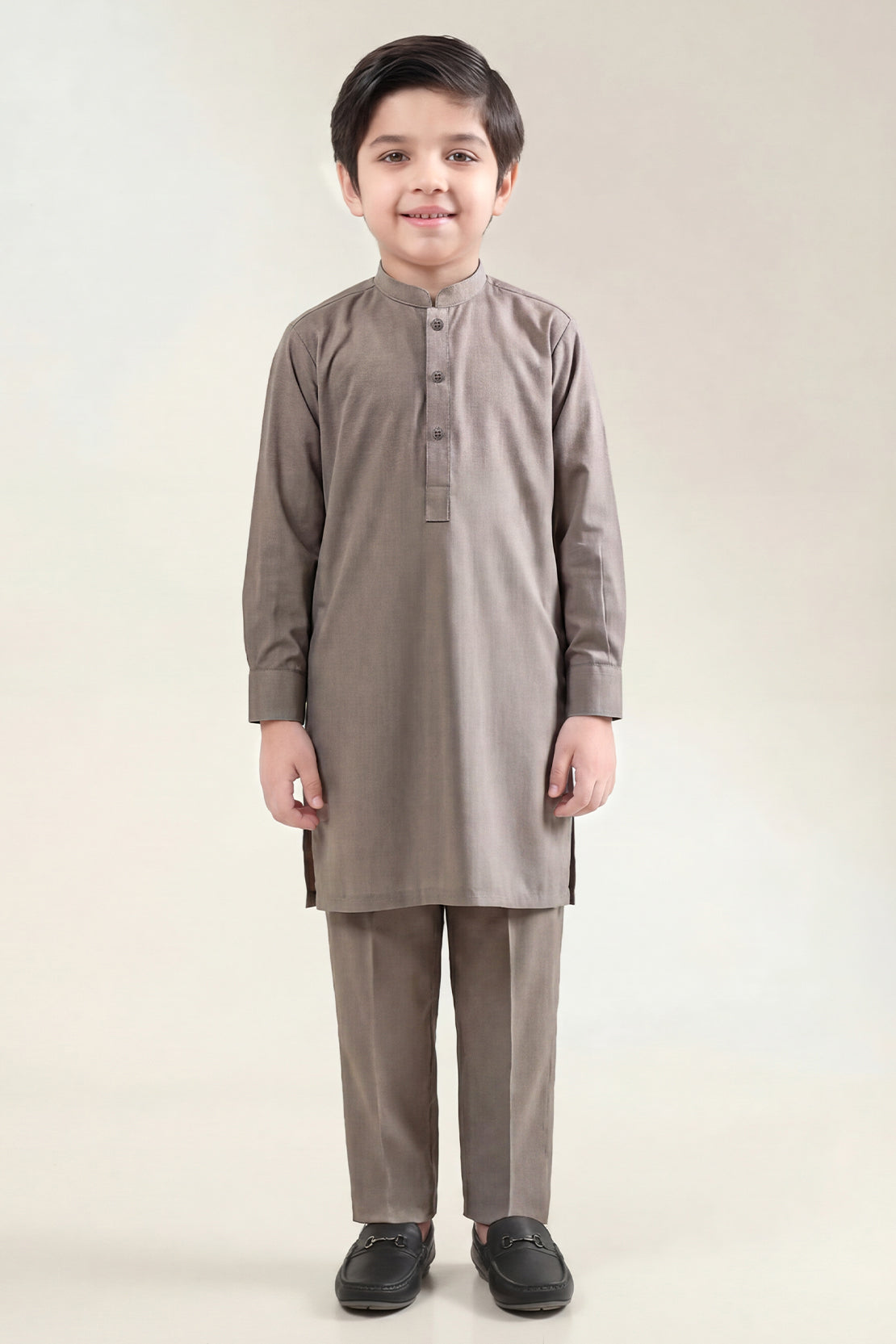 Solid Wash N Wear Stitched 2 Piece (Shirt/Trouser) For Boys