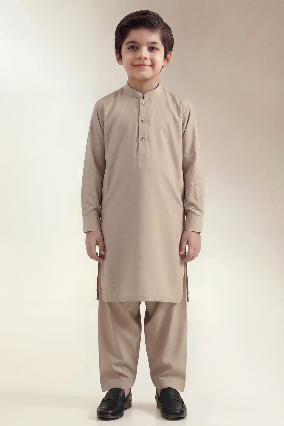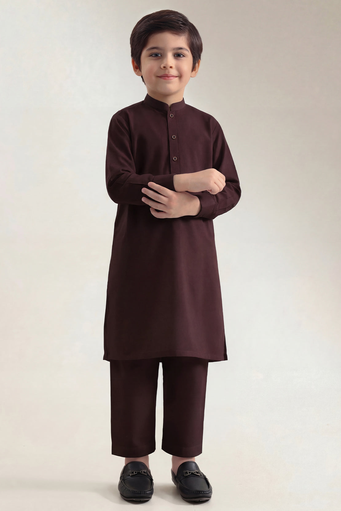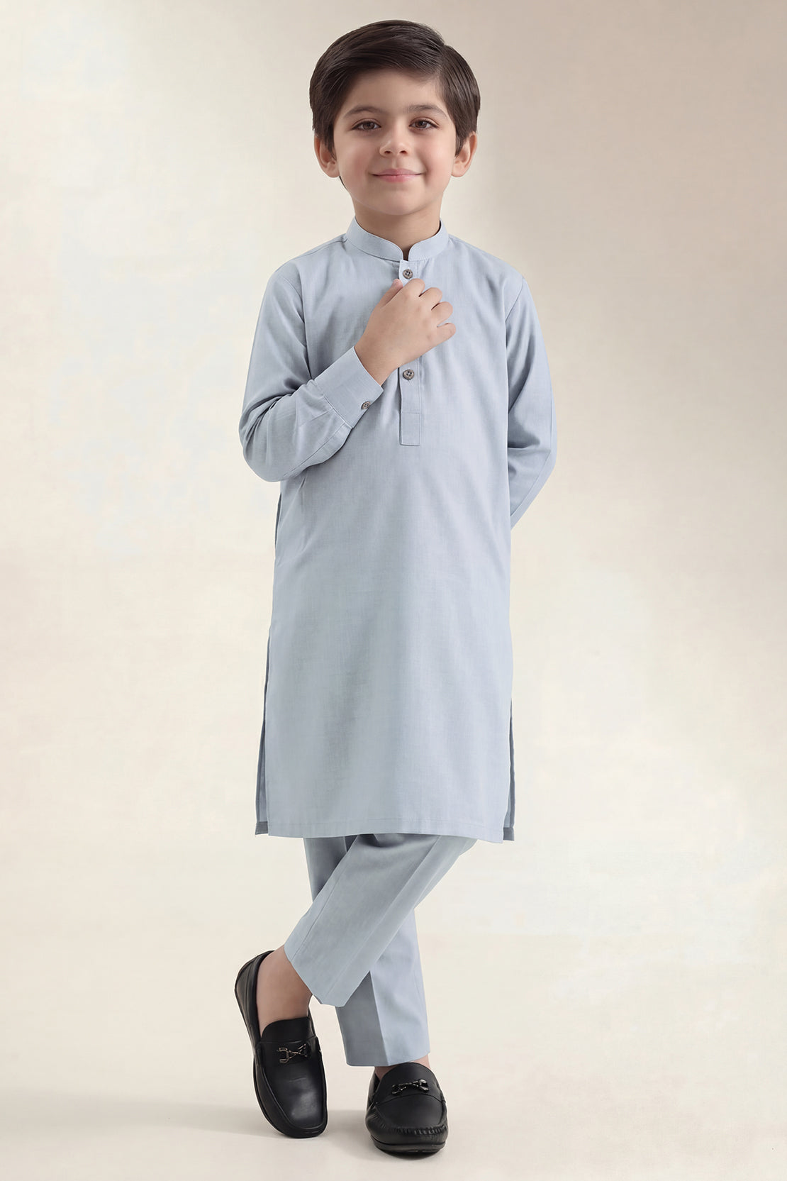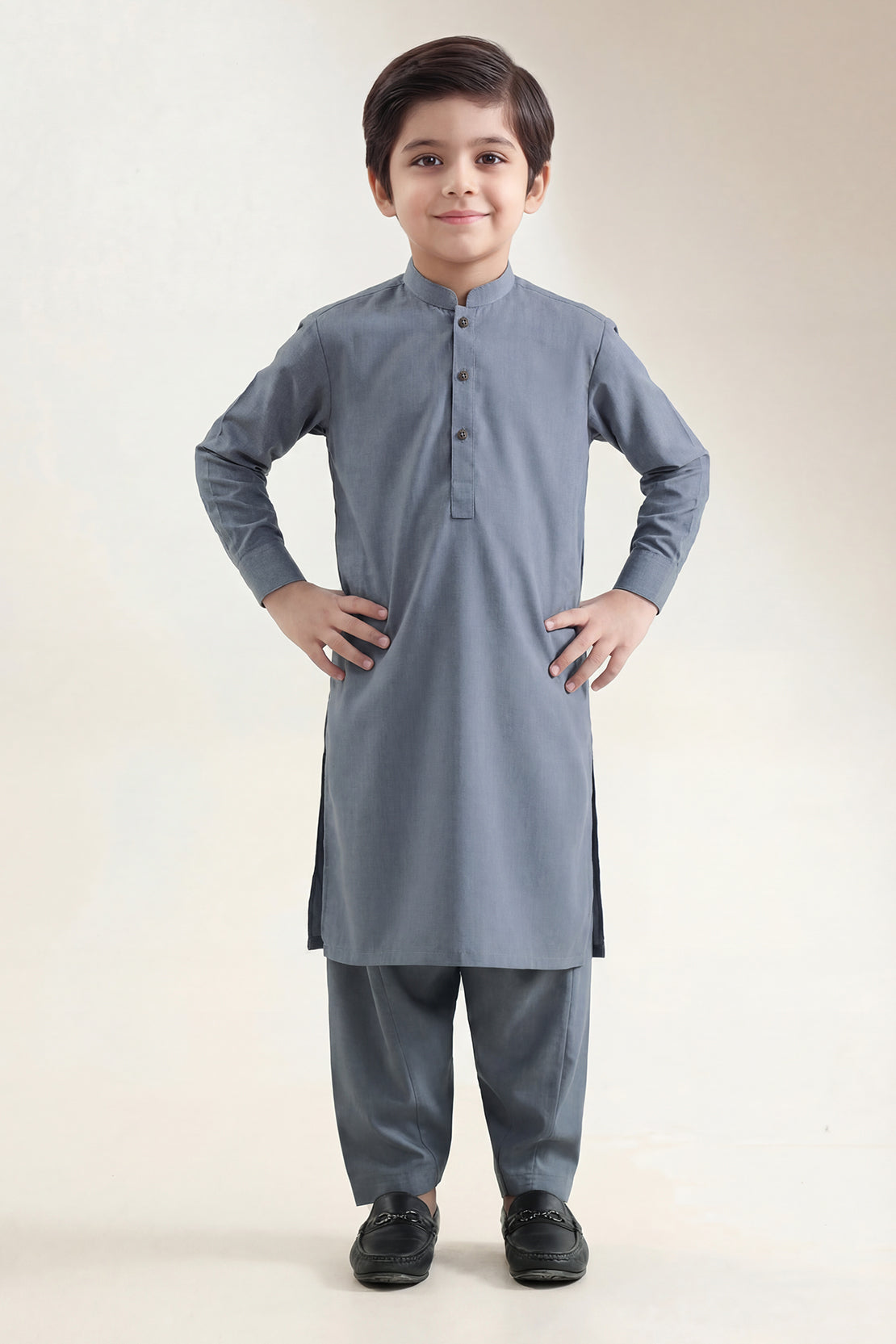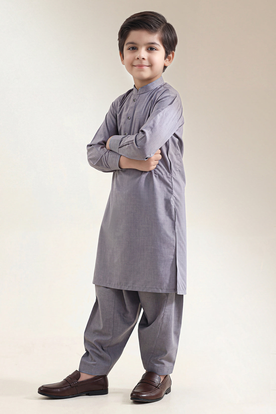 Solid Wash N Wear Stitched 2 Piece (Shirt/Trouser) For Boys