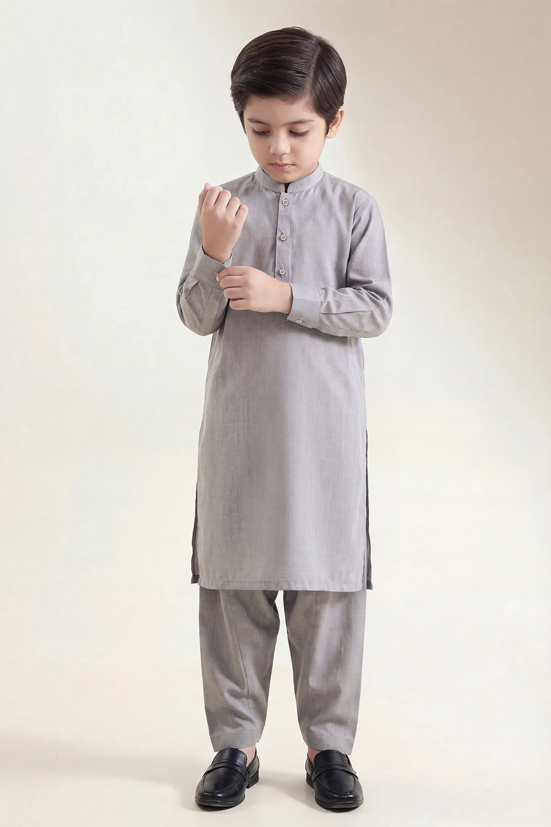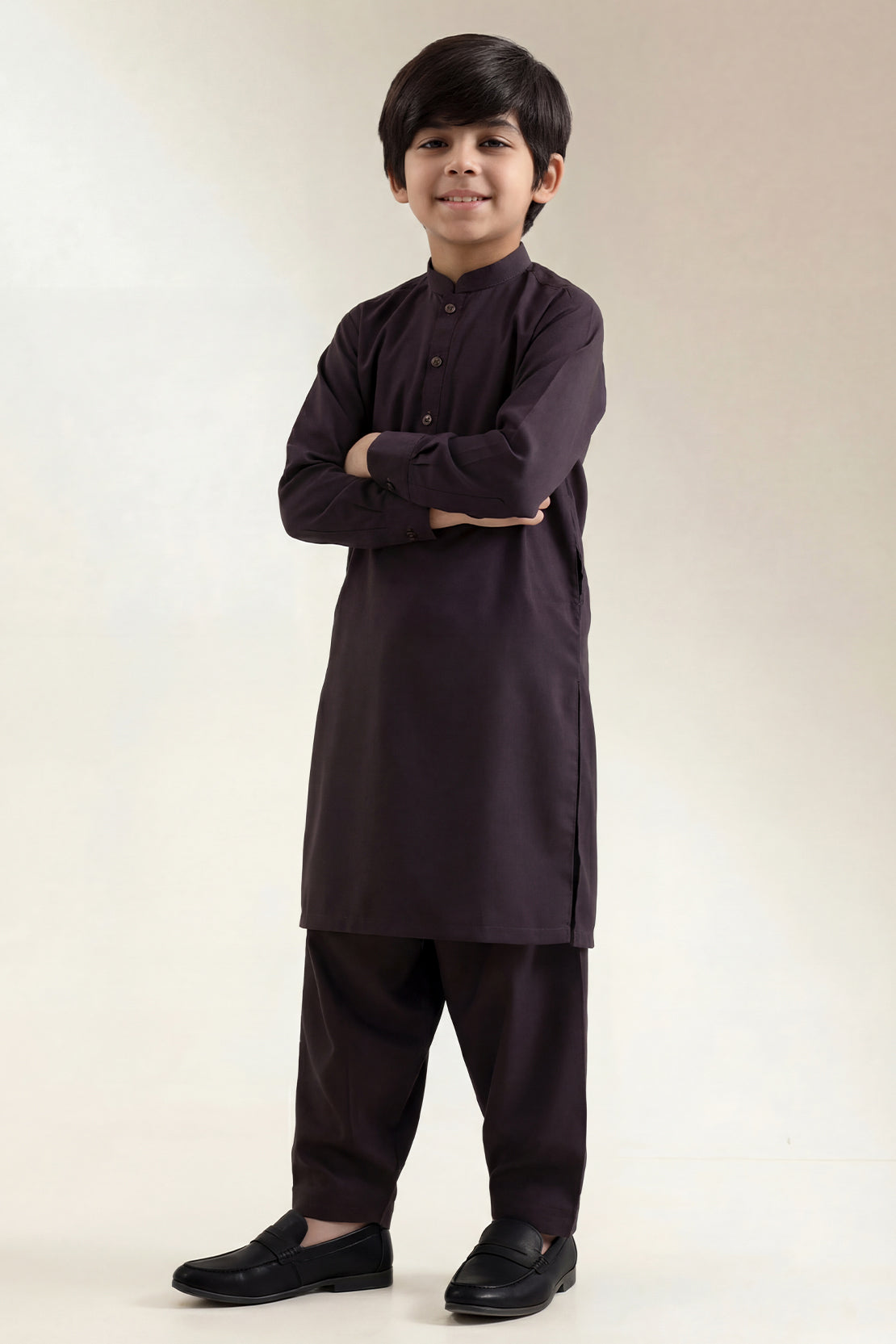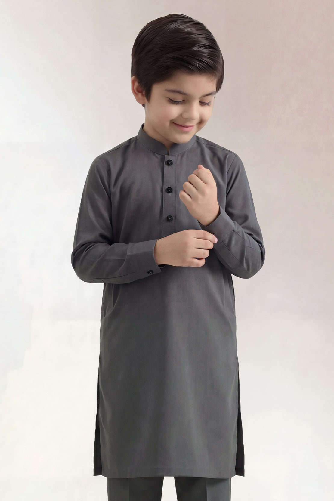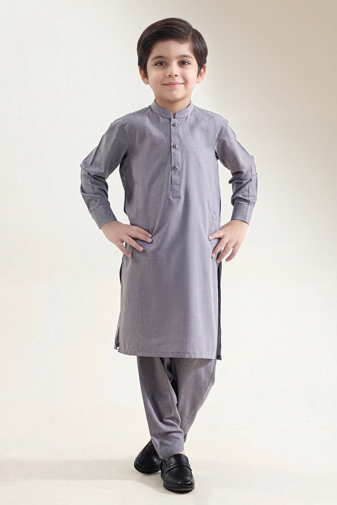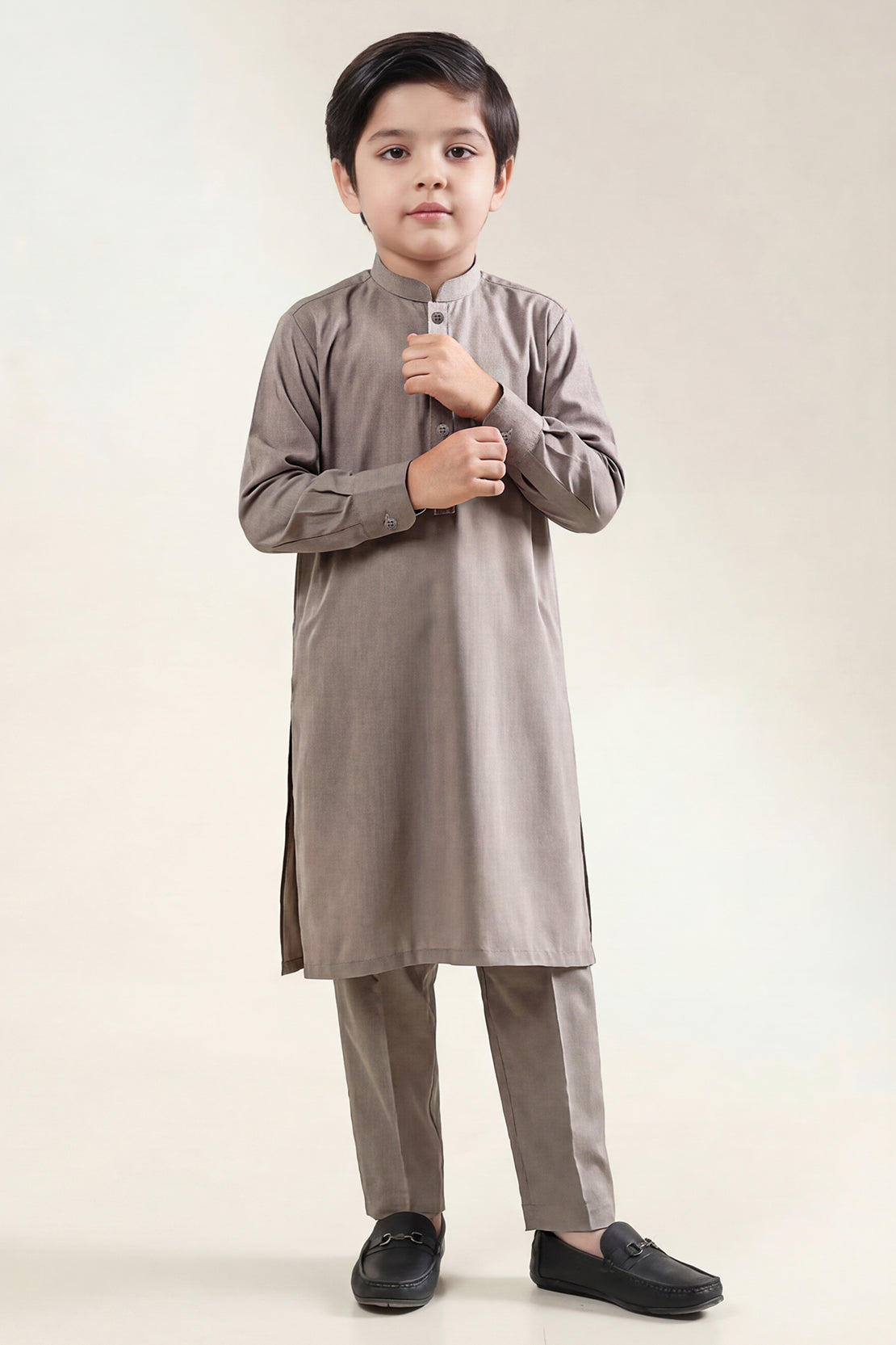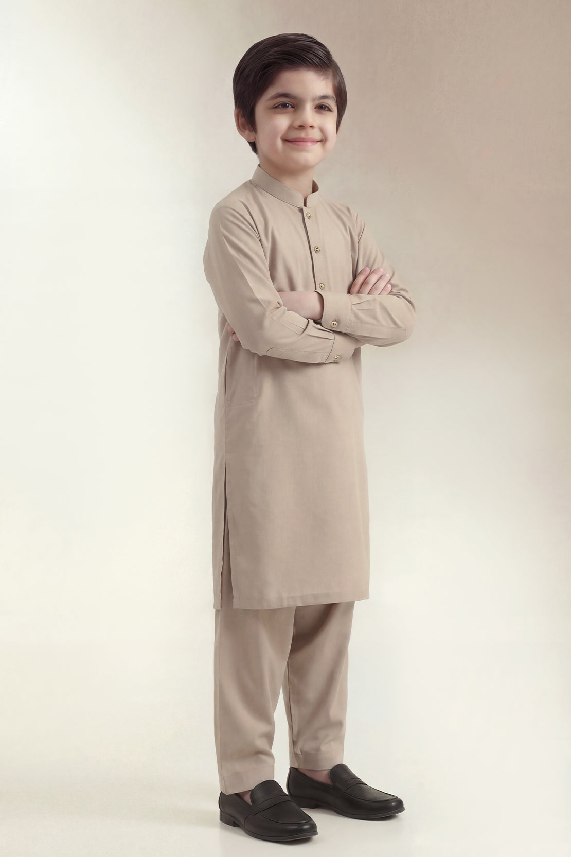 Solid Wash N Wear Stitched 2 Piece (Shirt/Trouser) For Boys