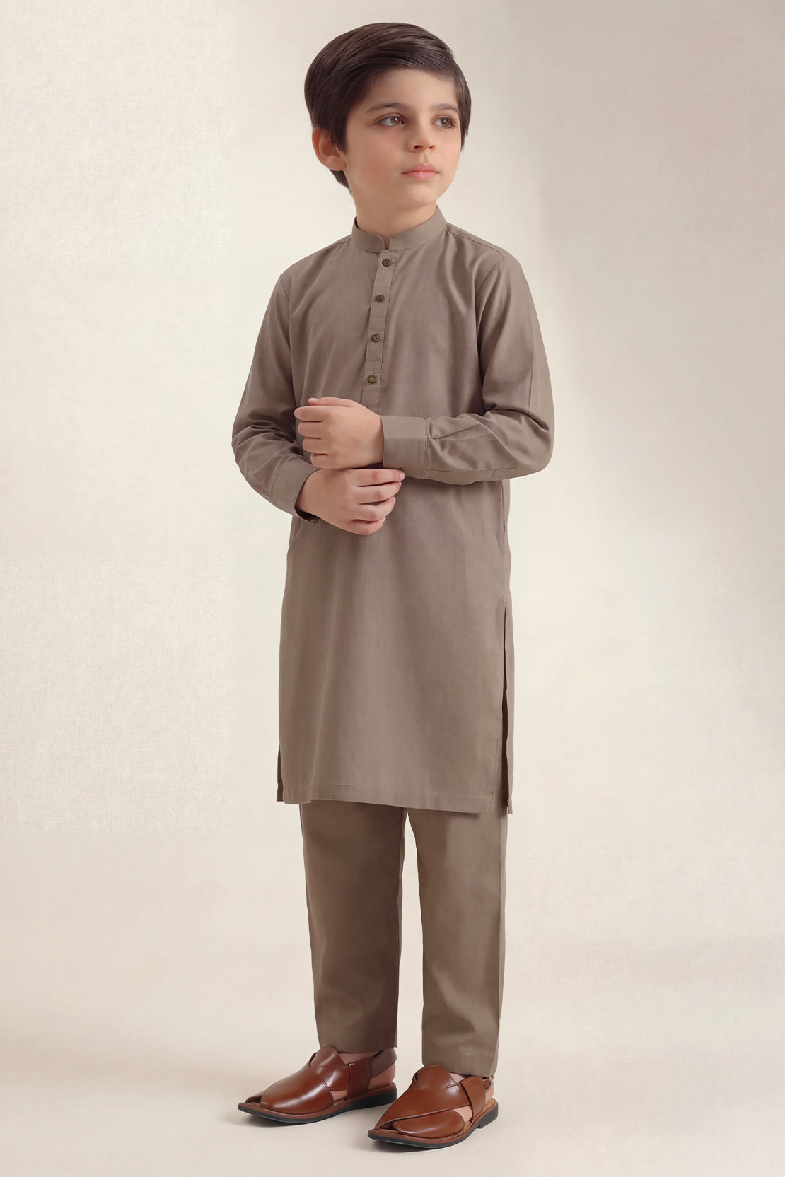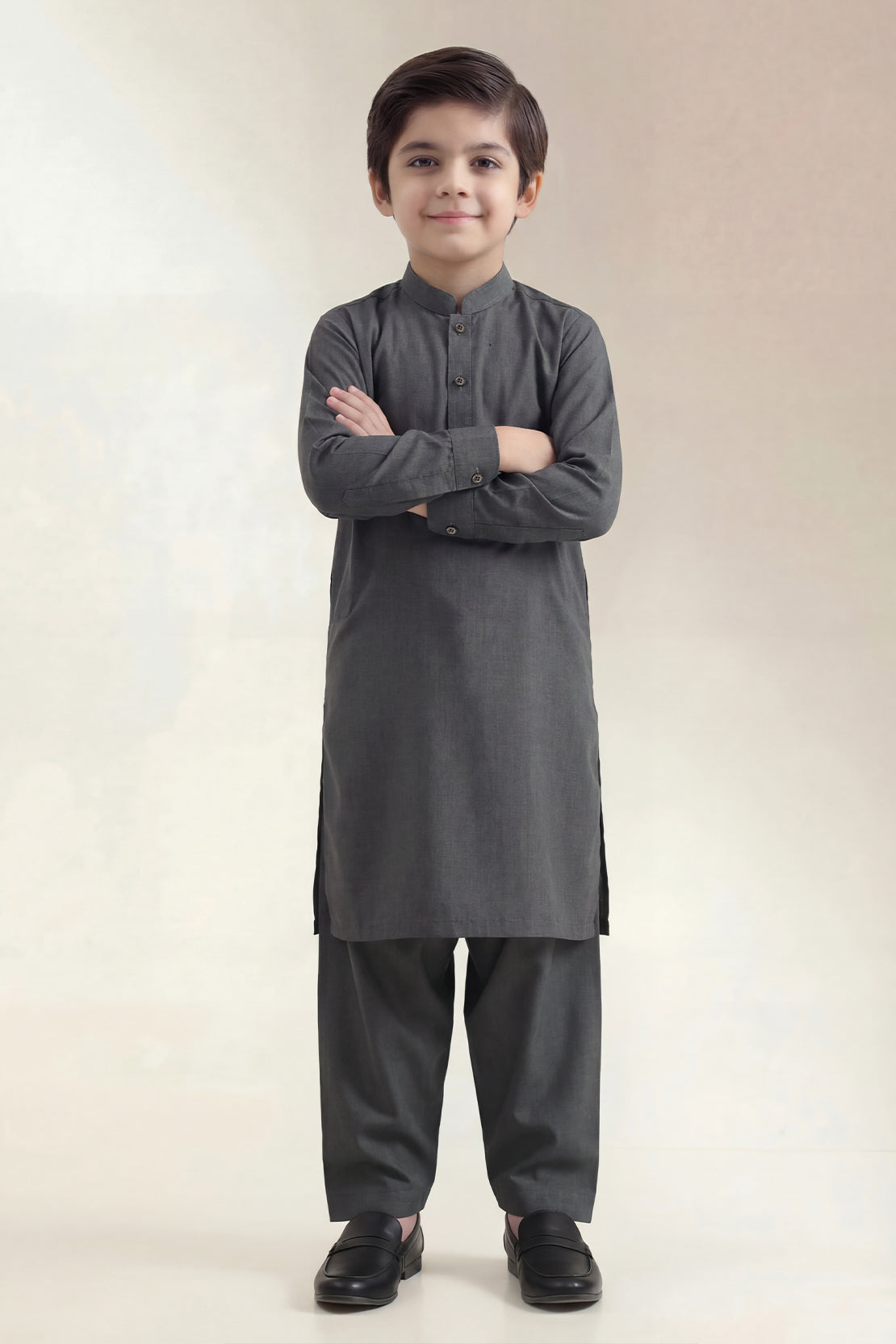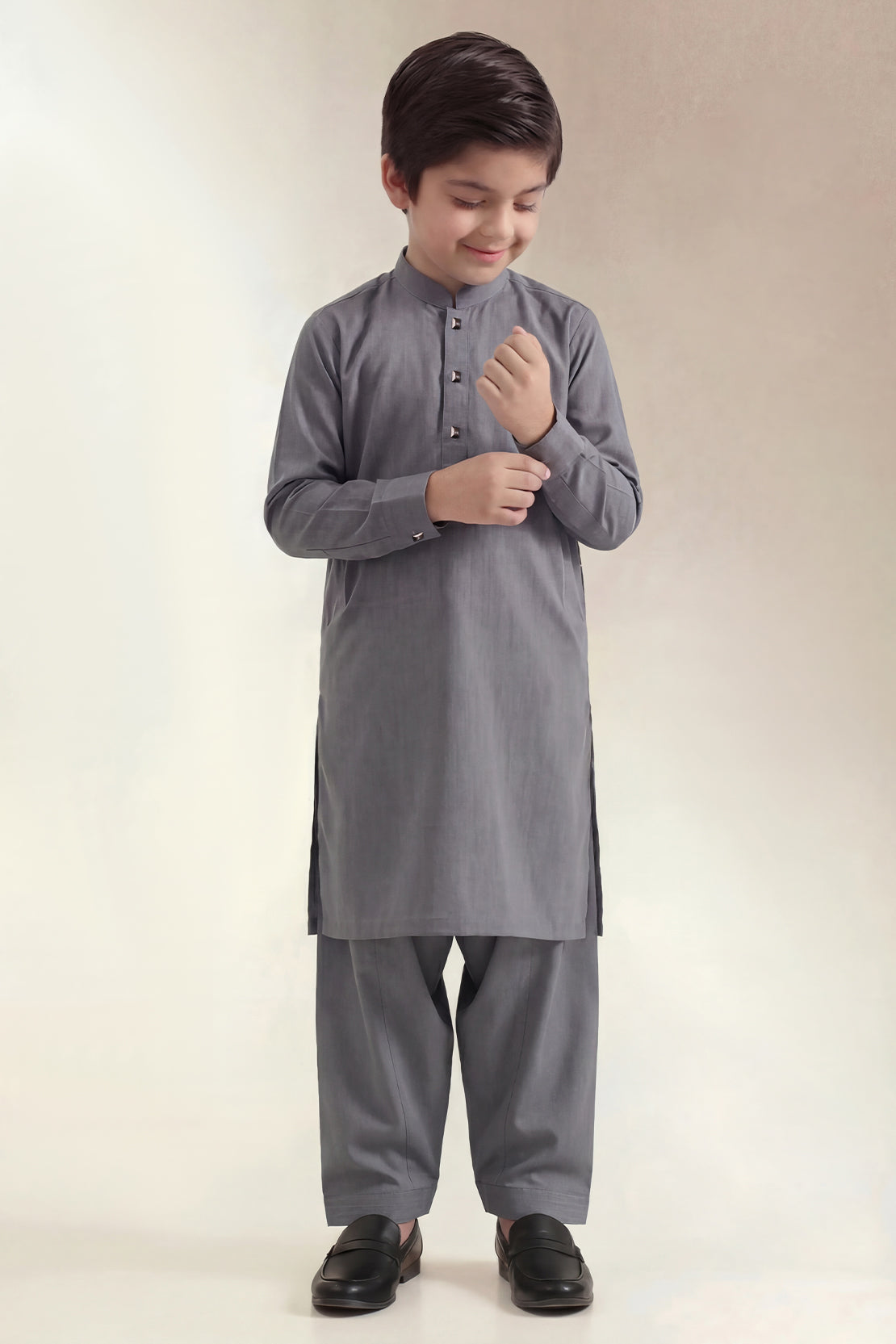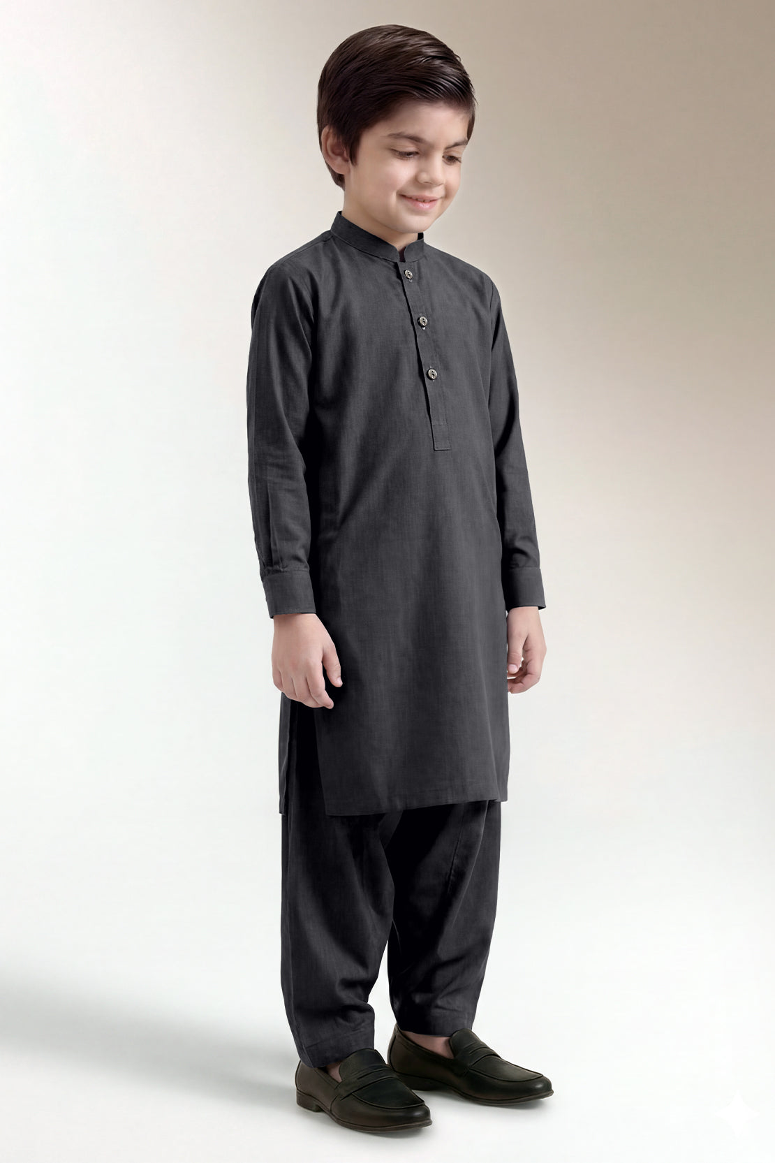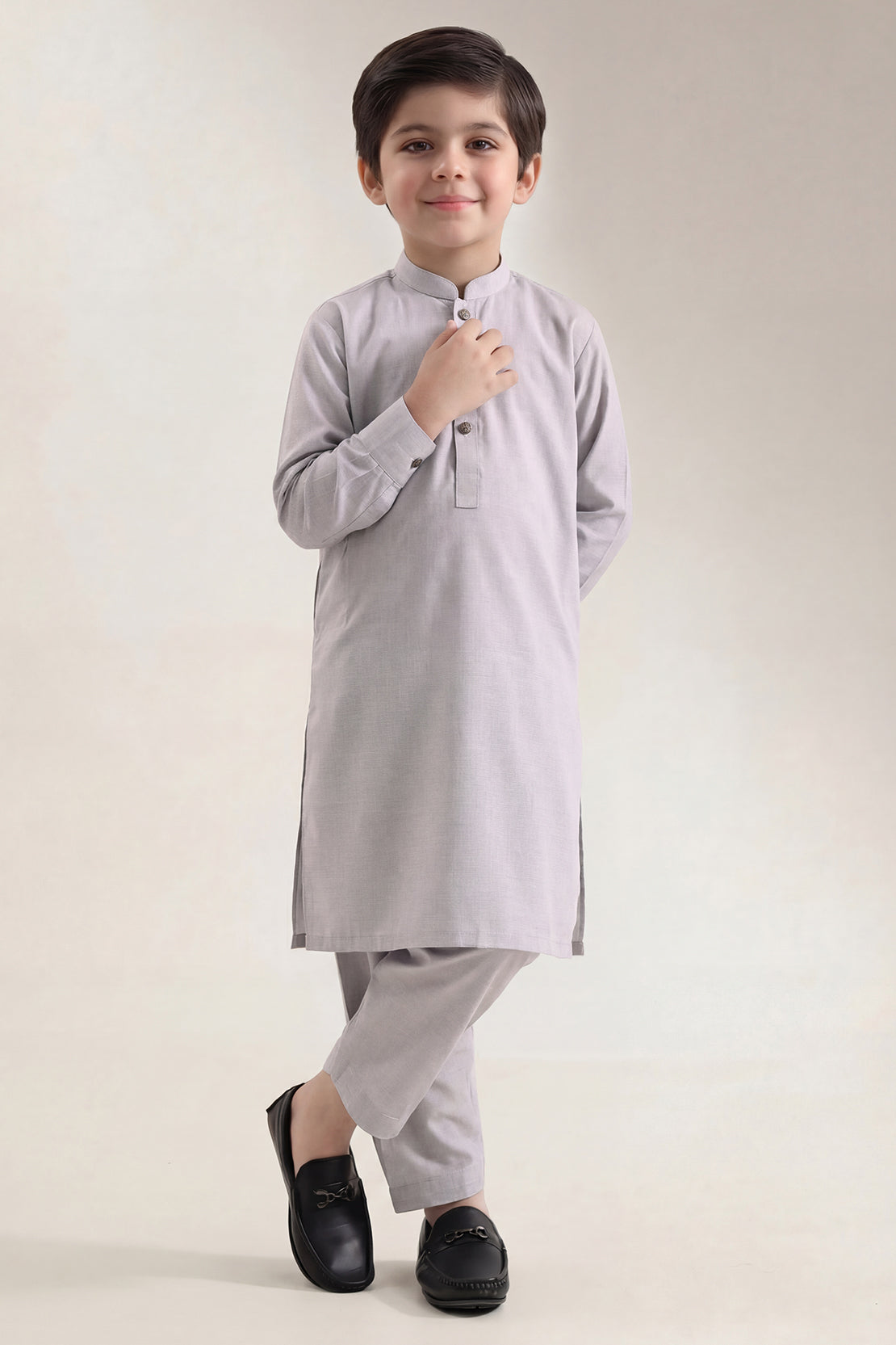 Solid Wash N Wear Stitched 2 Piece (Shirt/Trouser) For Boys
