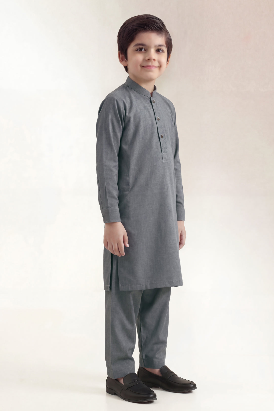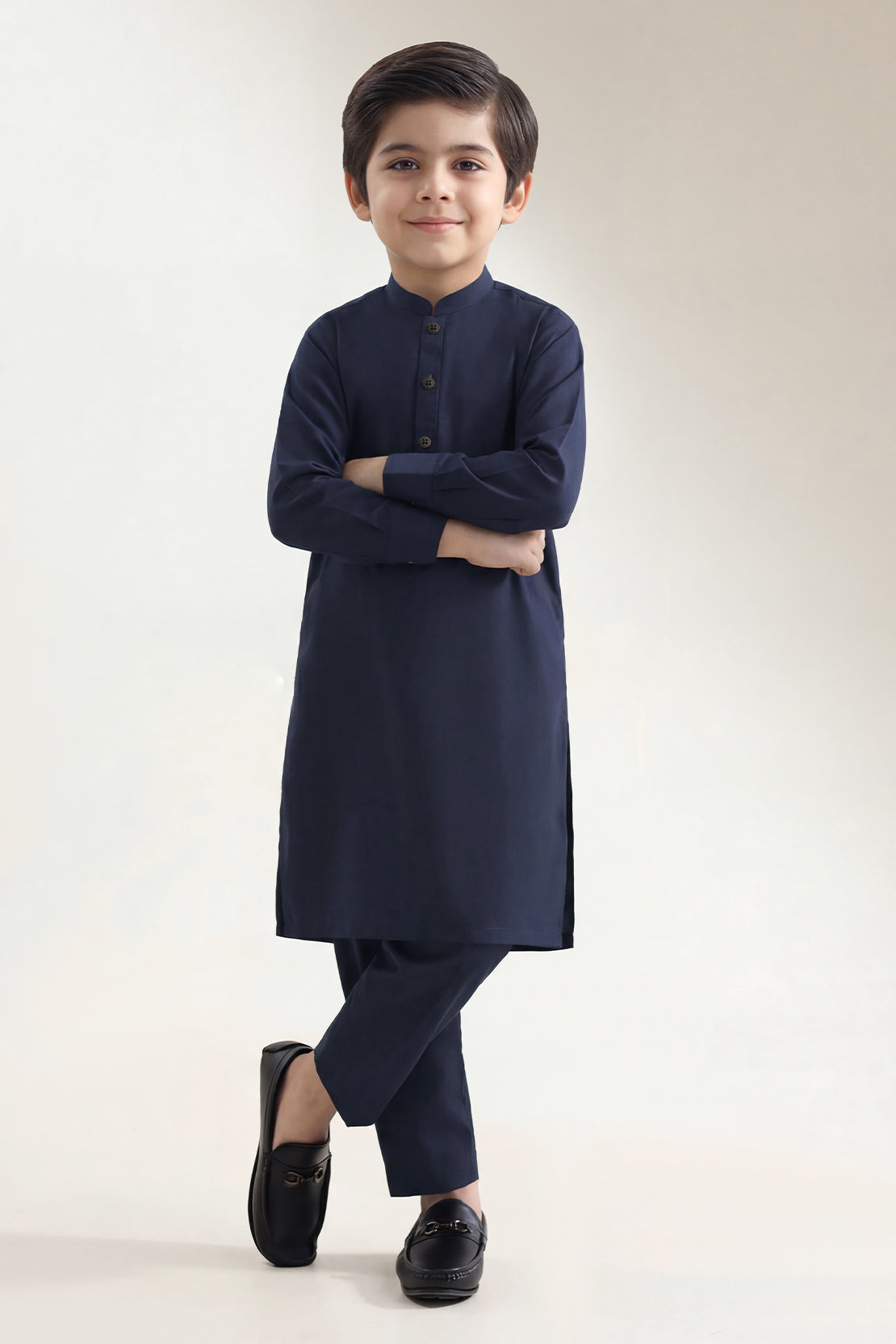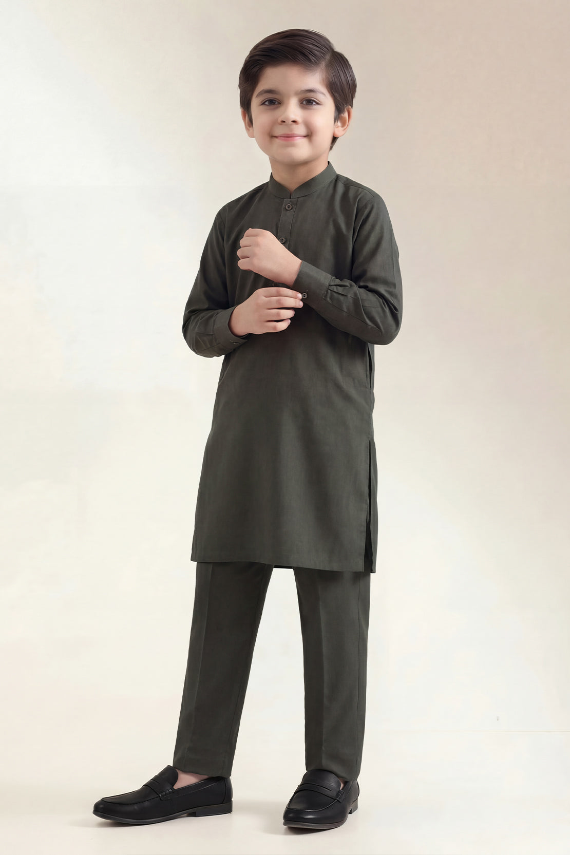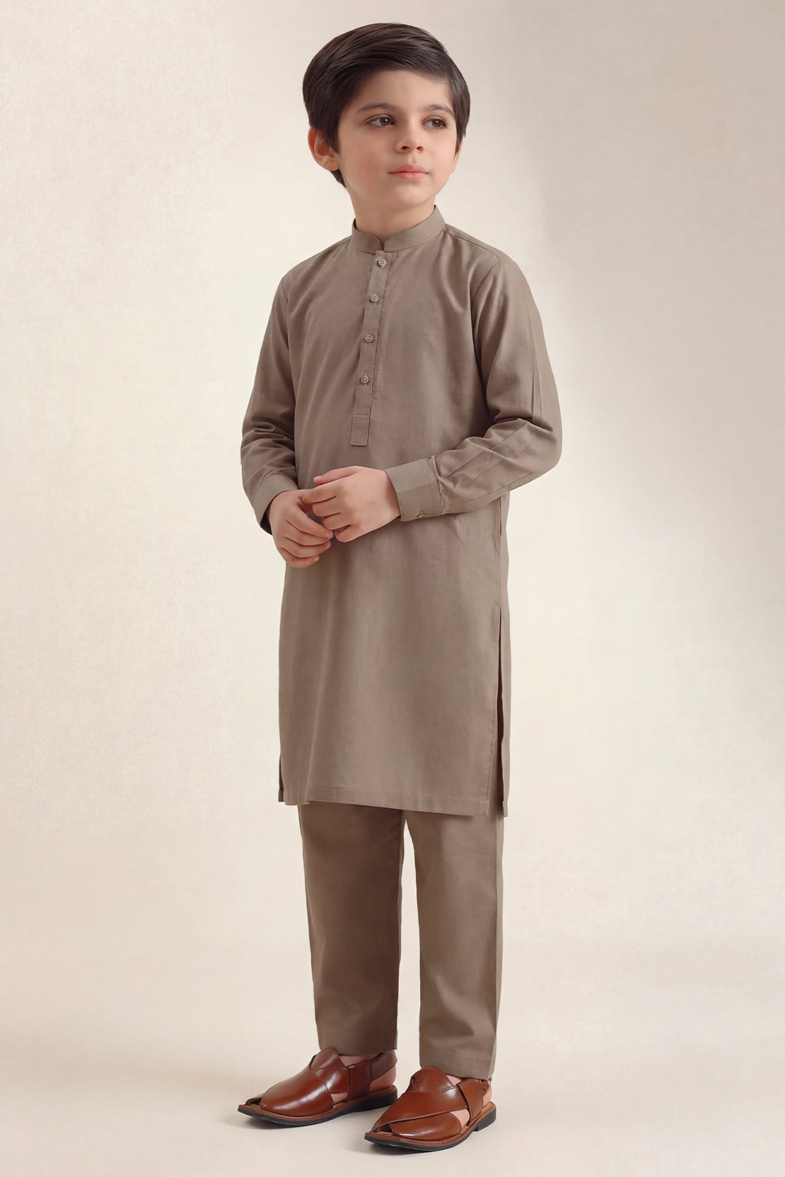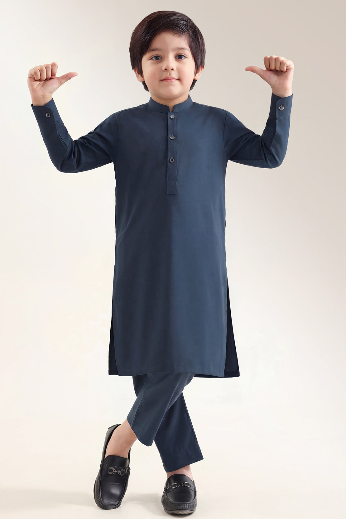 Solid Wash N Wear Stitched 2 Piece (Shirt/Trouser) For Boys