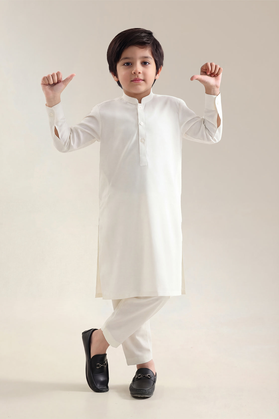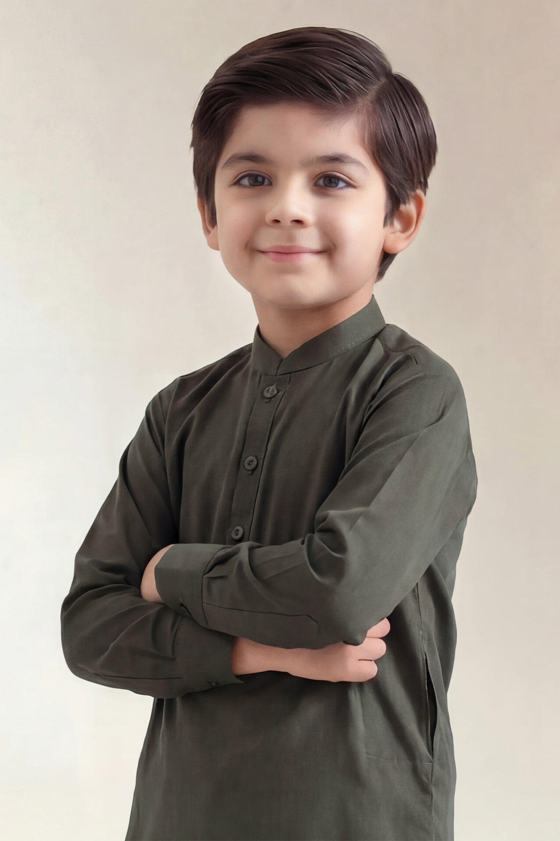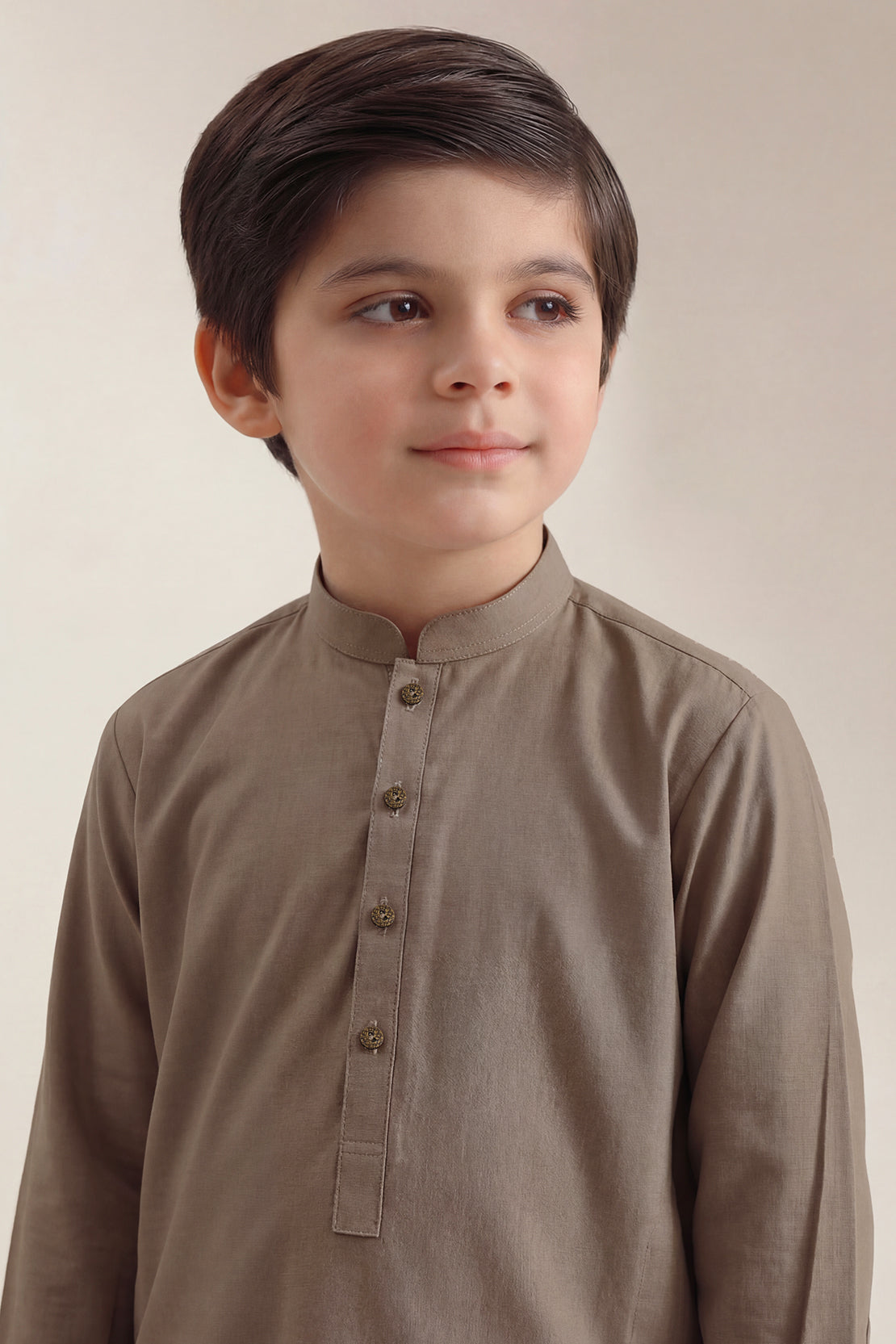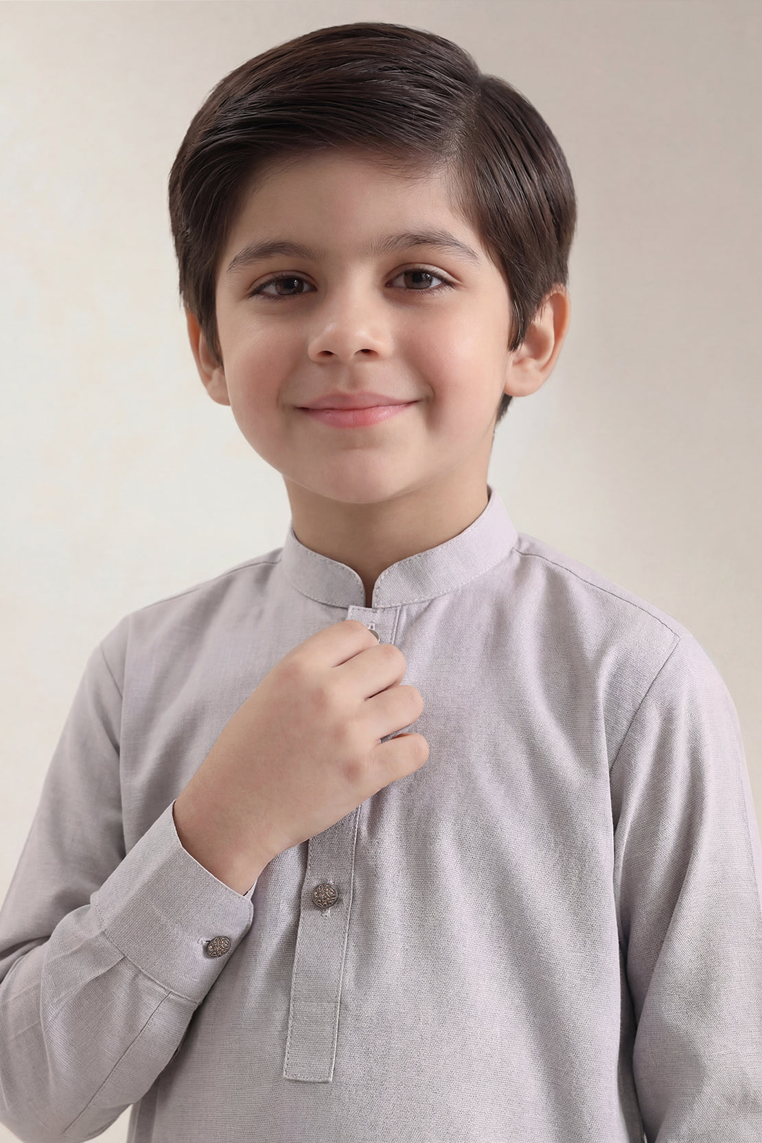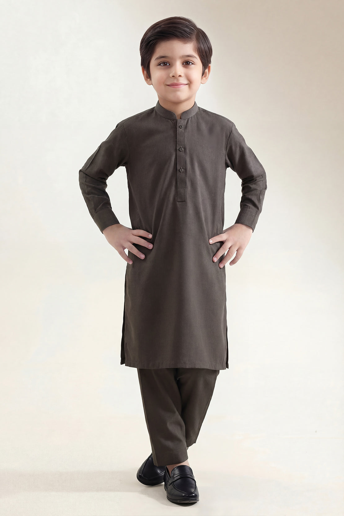 Solid Wash N Wear Stitched 2 Piece (Shirt/Trouser) For Boys