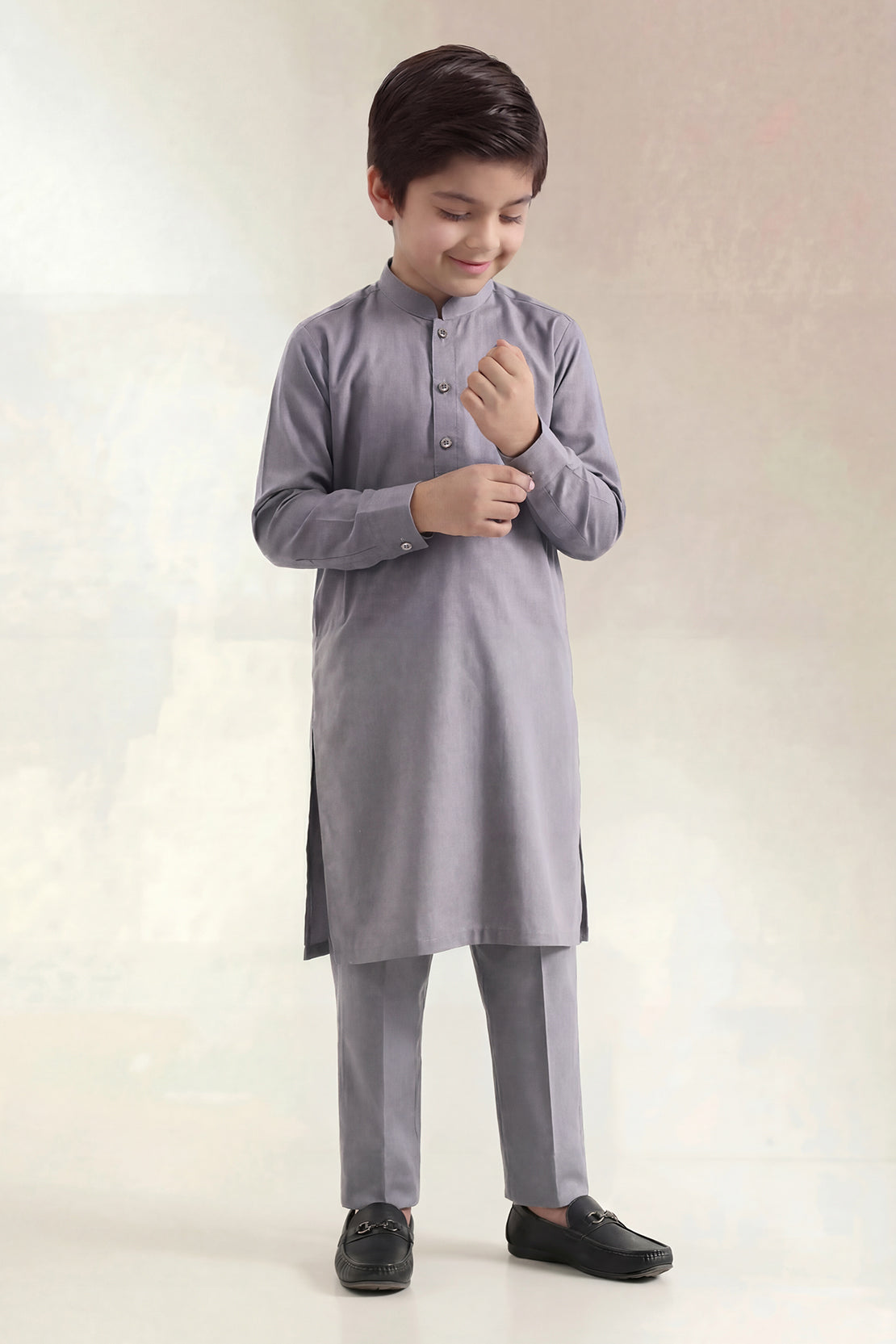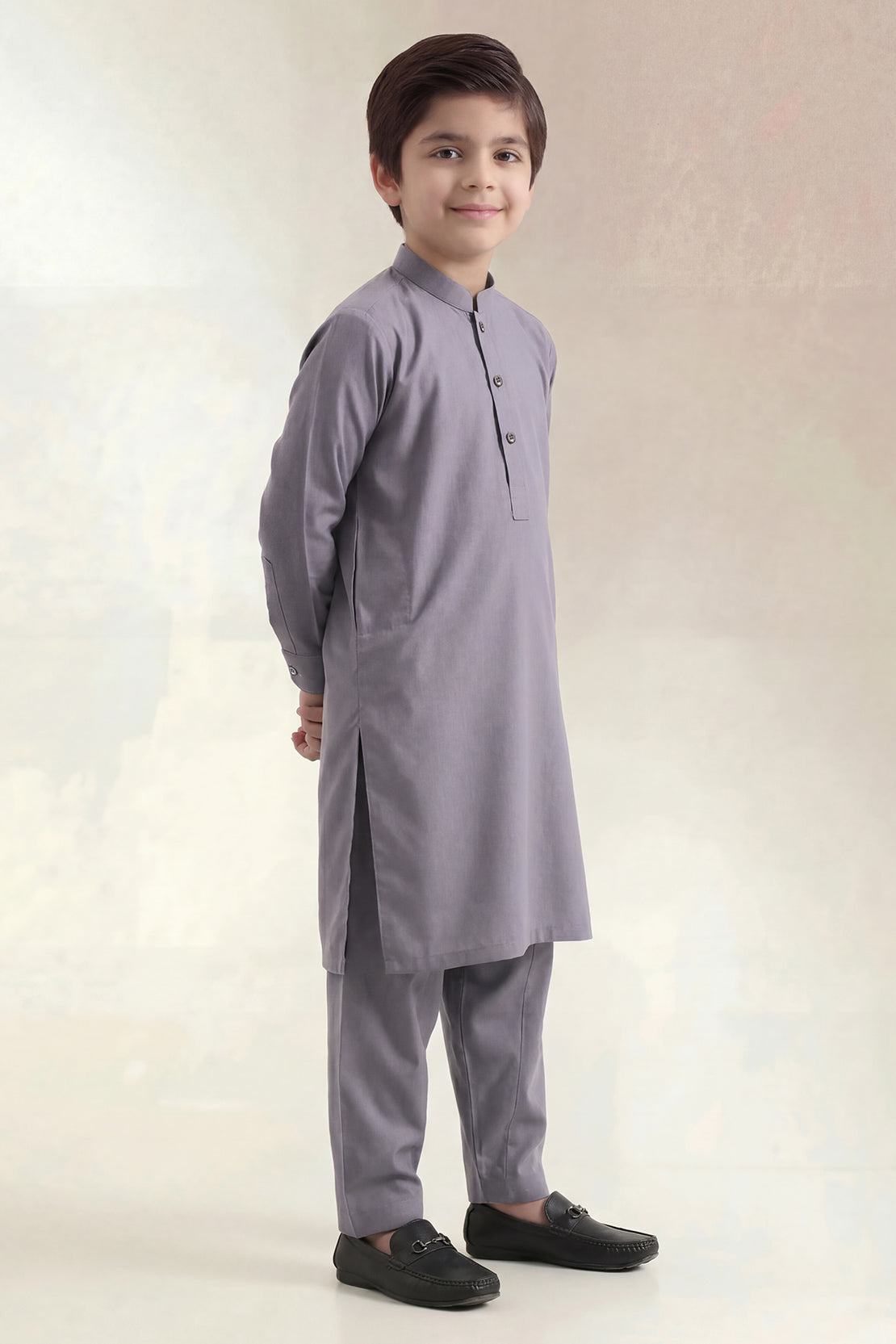 Elevate your boy’s wardrobe with SAYA’s Solid Wash N Wear 2-Piece Shirt & Trouser Set for Boys. Crafted from easy-care Wash N Wear fabric, it offers a smooth finish with dependable comfort. The neatly tailored shirt is complemented by a precisely coordinated trouser, creating a smart and well-balanced look. Lightweight, wrinkle-resistant, and ready-to-wear, this ensemble blends practicality with refined style—ideal for family gatherings, festive occasions, or polished everyday wear.