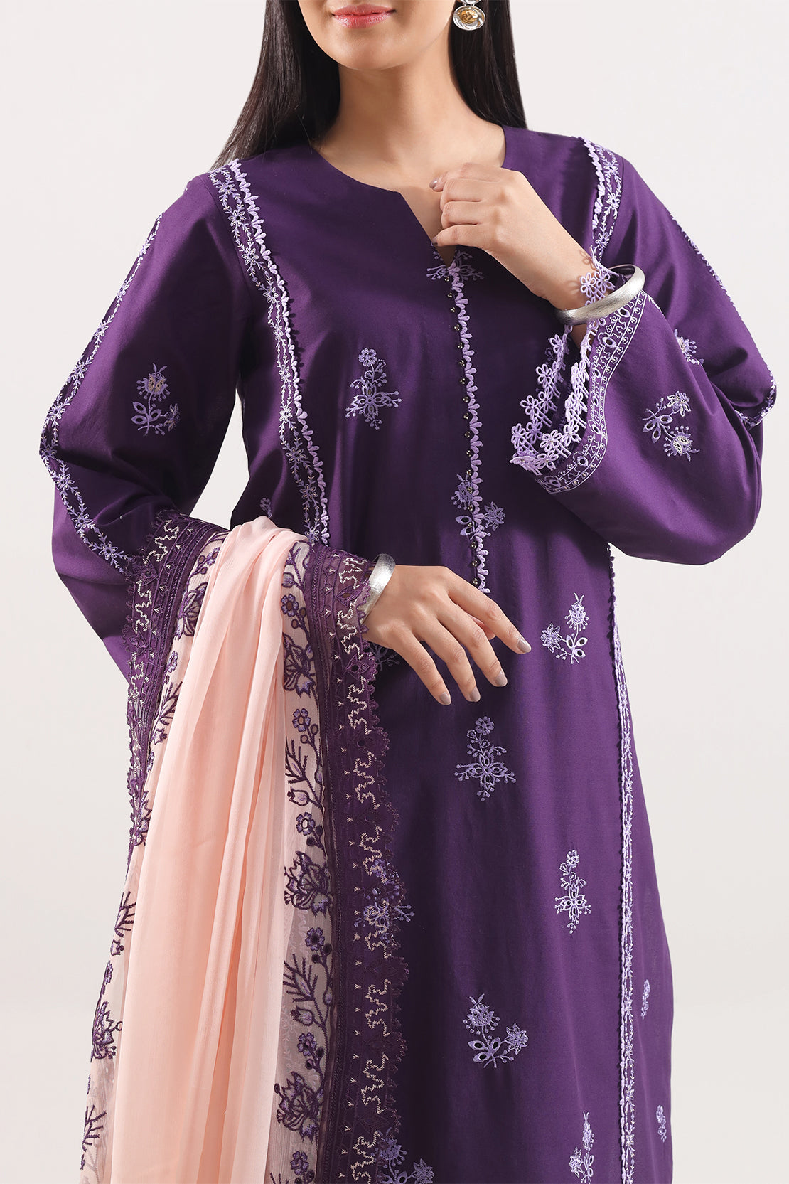 Elevate Your Style With The Unstitched Solid Embroidered Cambric 3-Piece Set From SAYA. Crafted From Premium Cambric Fabric — A Lightweight, Fine-Weave Cotton Known For Its Smooth Finish And Subtle Structure This Ensemble Includes A Broad Shirt Panel Adorned With Delicate Embroidery, A Matching Dupatta, And A Dyed Trouser Piece. Designed For Custom Tailoring, It Brings Together Fabric Quality, Elegant Embroidered Detail, Utility And Sophisticated Simplicity — Perfect For Daytime Events, Smart Casual Settings Or Tailored Stylish Looks.