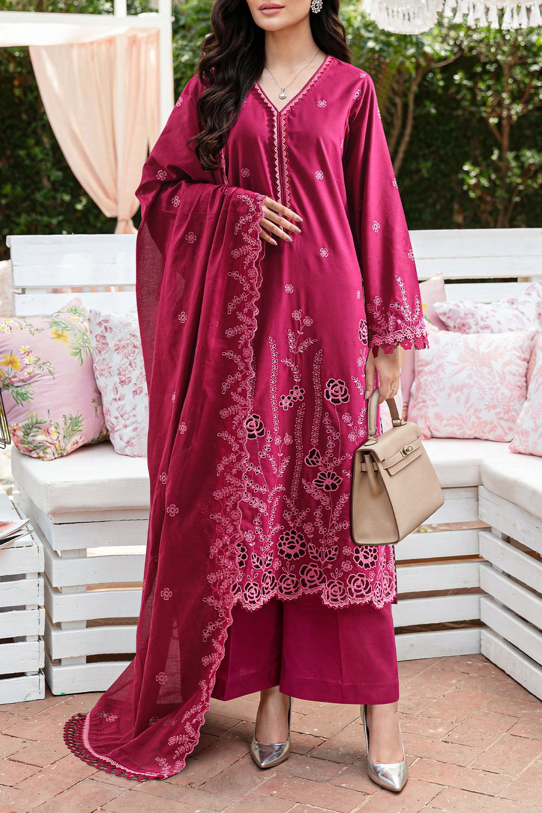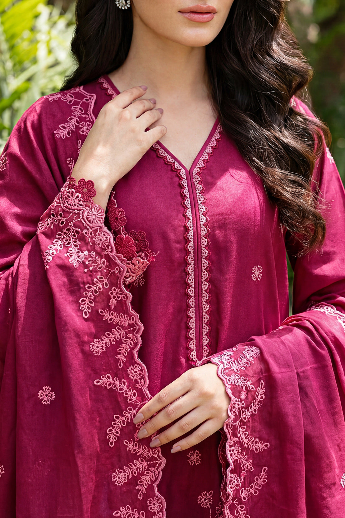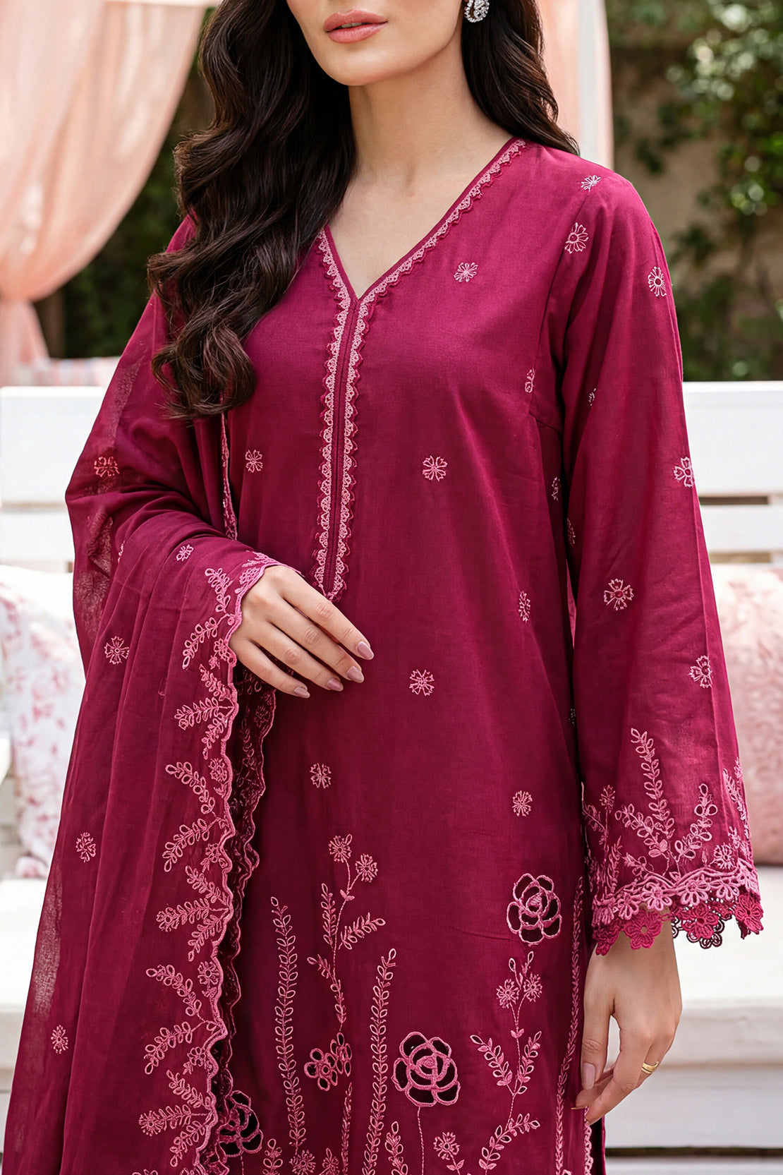 Elevate Your Style With The Unstitched Solid Embroidered Cambric 3-Piece Set From SAYA. Crafted From Cambric Fabric — A Lightweight, Fine-Weave Cotton Known For Its Smooth Finish And Subtle Structure This Ensemble Includes A Broad Shirt Panel Adorned With Delicate Embroidery, A Matching Dupatta, And A Dyed Trouser Piece. Designed For Custom Tailoring, It Brings Together Fabric Quality, Elegant Embroidered Detail, Utility And Sophisticated Simplicity — Perfect For Daytime Events, Smart Casual Settings Or Tailored Stylish Looks.