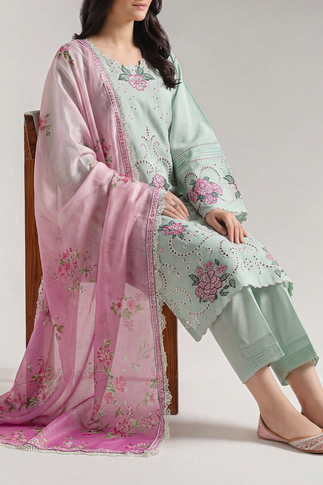 Indulge In Timeless Artistry With The SAYA Unstitched Solid Embroidered Cambric Trio. This Premium Fabric Is A Fine, Structured Cambric Exquisitely Embellished With Delicate, Intricate Embroideries That Showcase Heirloom Craftsmanship. Designed To Be Tailored Into An Ensemble For Formal Daytime Weddings, Upscale Luncheons, And Legacy Events, It Offers A Pristine Foundation For Refined, Artisanal Elegance.