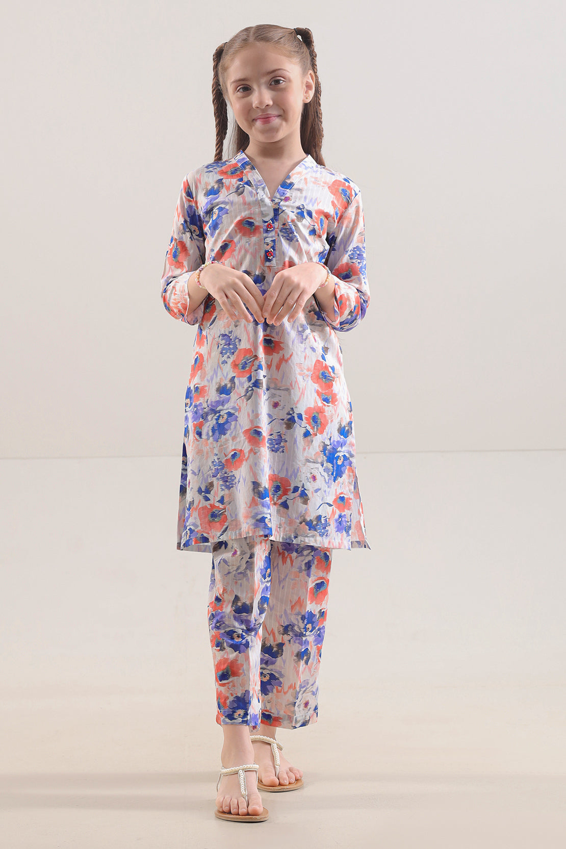 Printed Lawn Stitched 2-Piece For Kids By SAYA Features Ultra-Soft Lawn Fabric In A Pristine White Base Accented With Delightful Prints Across A Ready-To-Wear Shirt And Matching Trouser. The Featherlight, Breathable Material Ensures All-Day Comfort, While The Structured Stitching Offers Durability And Style. Ideal For Playdates, Casual Family Outings, Or Festive Moments—Effortlessly Blending Youthful Charm With Elegant Practicality.