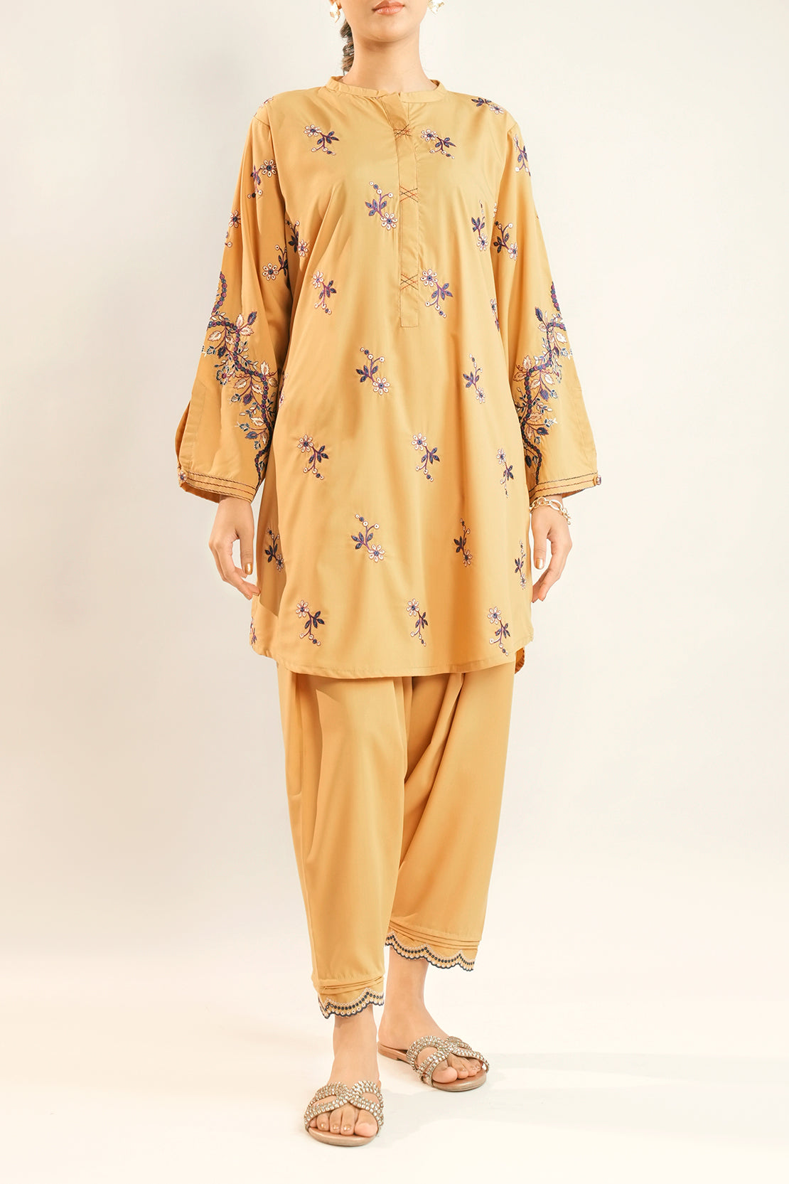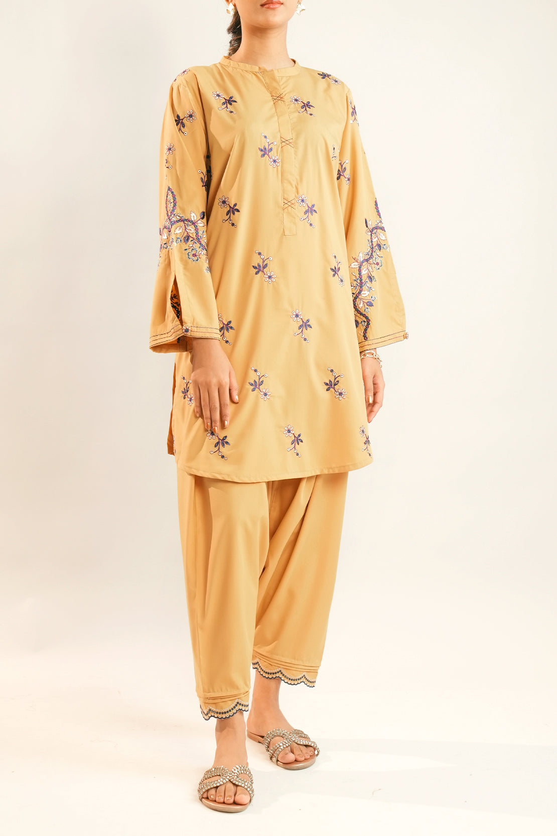 Solid Embroidered Wash n Wear Stitched 2 Piece (Shirt/Trouser)