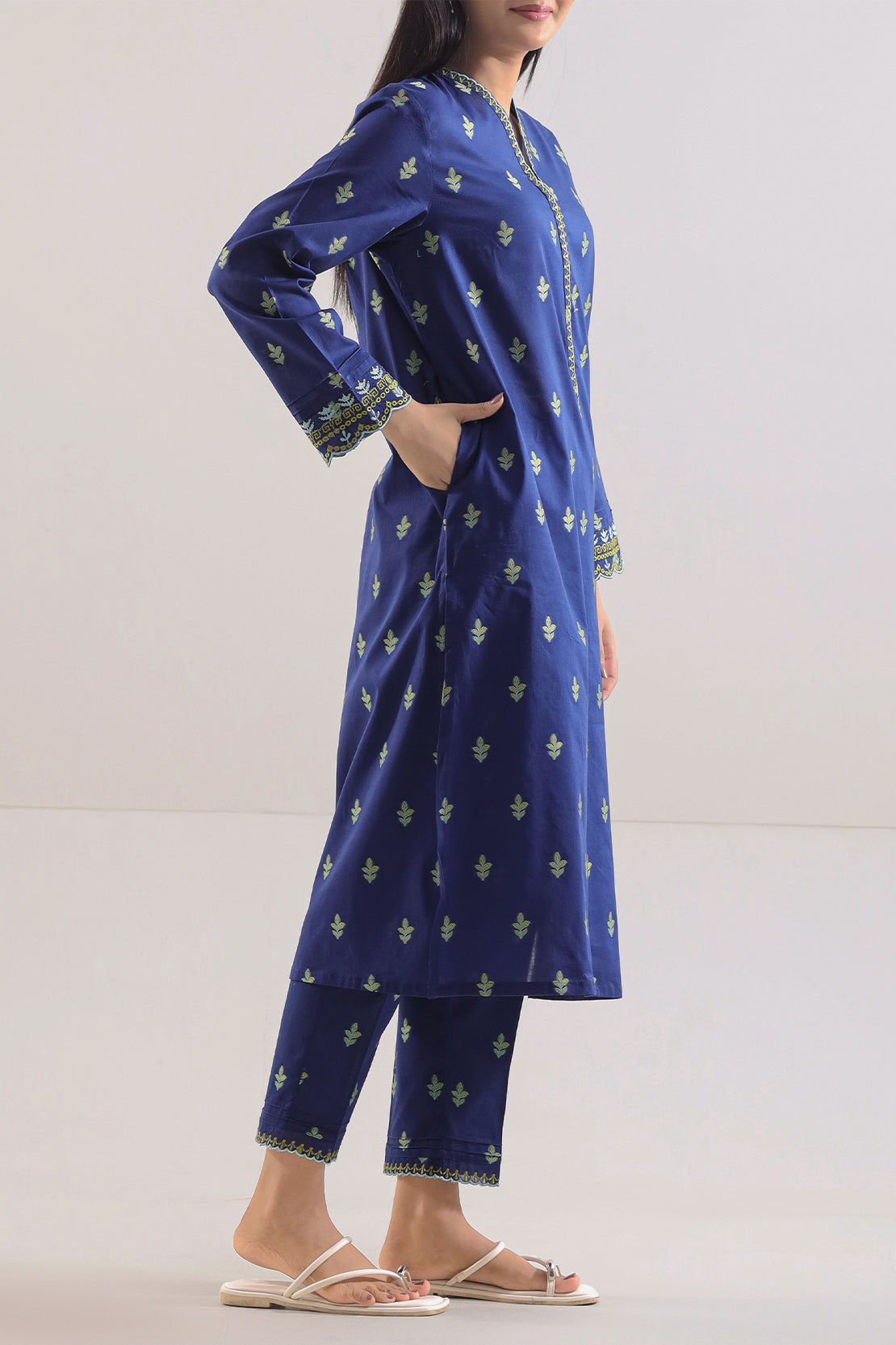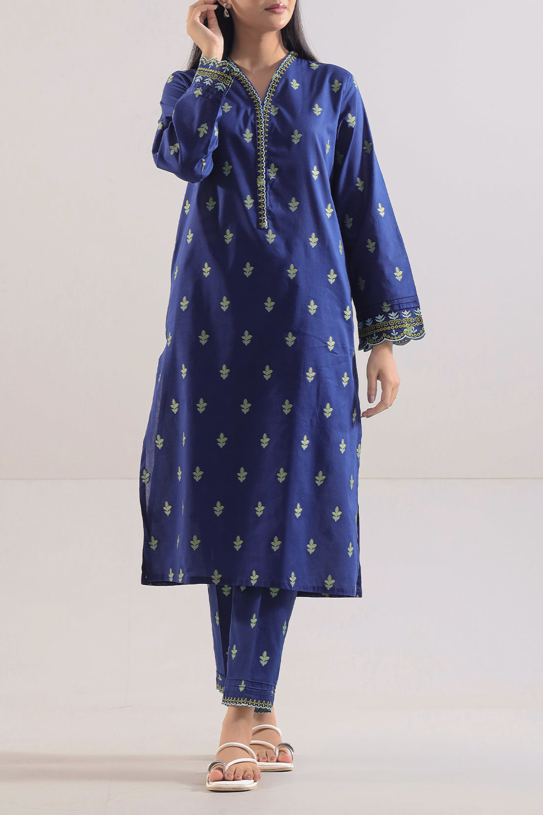 Embroidered Cotton Jacquard Two-Piece From SAYA Features A Rich Navy Blue Shade With Delicate Jacquard Weave. Shirt Is Gracefully Embroidered And Stitched For A Comfortable Fit, Paired With A Neatly Tailored Trouser. Breathable And Durable Fabric Makes It Ideal For Semi-Formal Gatherings, Festive Occasions, And Stylish Daywear.