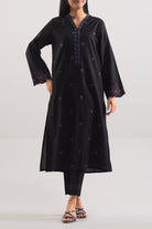 Black Solid Embroidered Cotton Two-Piece From SAYA Includes A Ready-To-Wear Shirt And Trouser In Premium Cotton Fabric. Shirt Features Subtle Embroidery Detail On A Solid Black Base With Clean Tailoring And Classic Collar. Trouser Matches With Sleek Stitching And Comfortable Fit. Ideal For Evening Outings, Formal Events Or When You Want A Polished Look With Minimal Fuss.