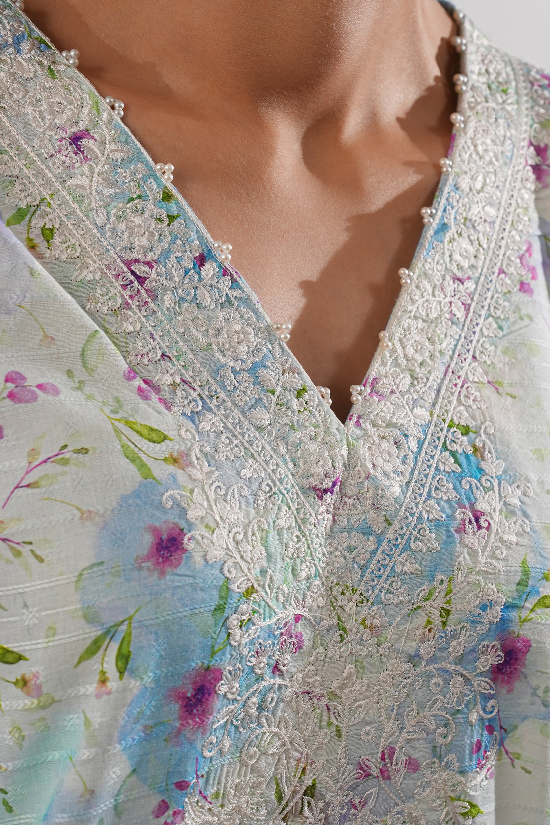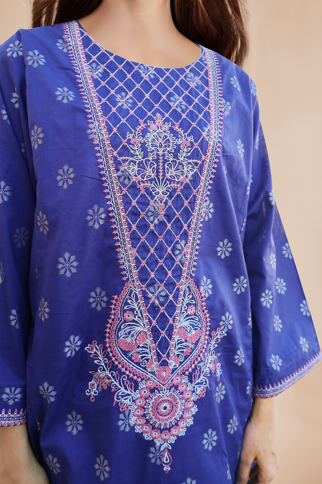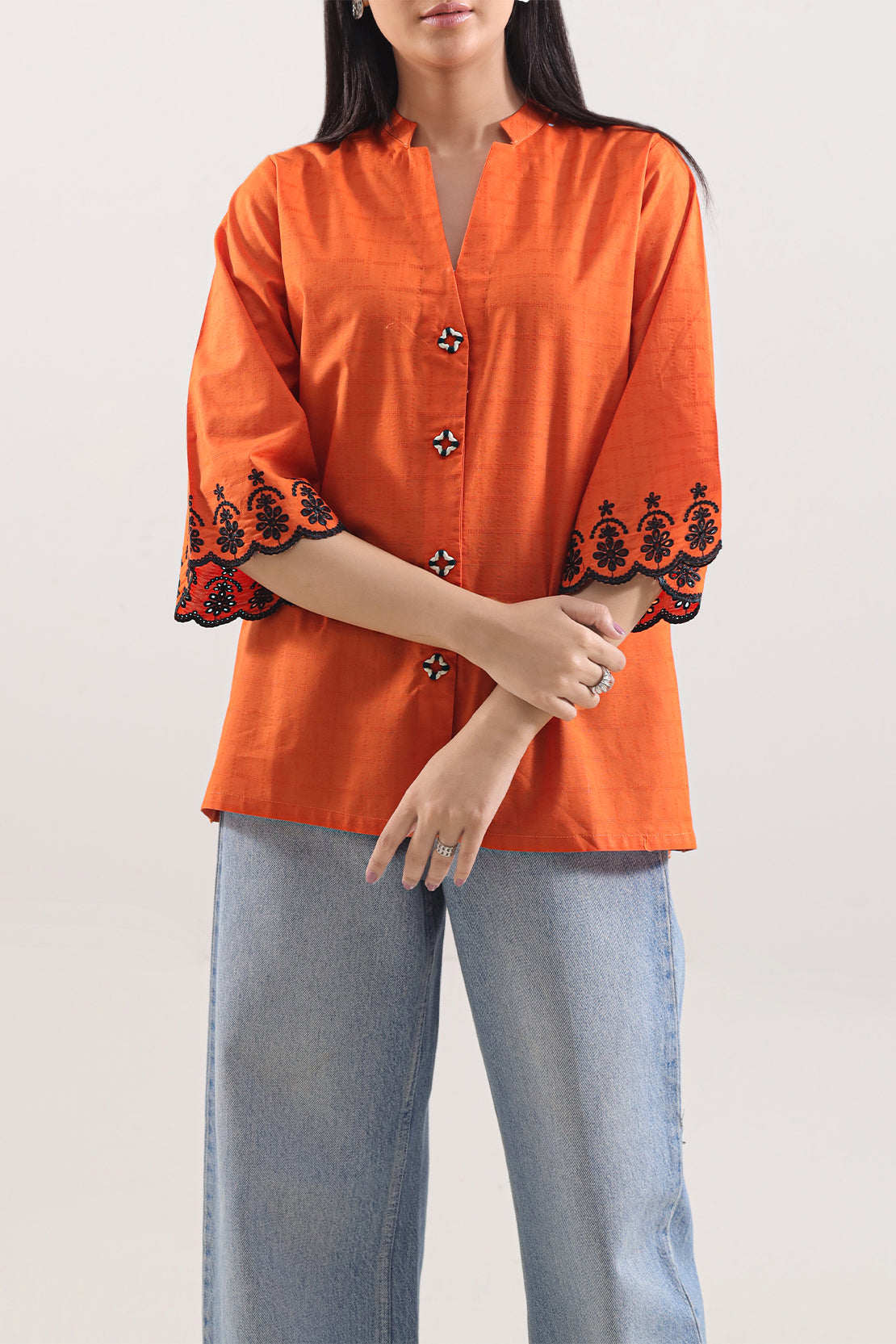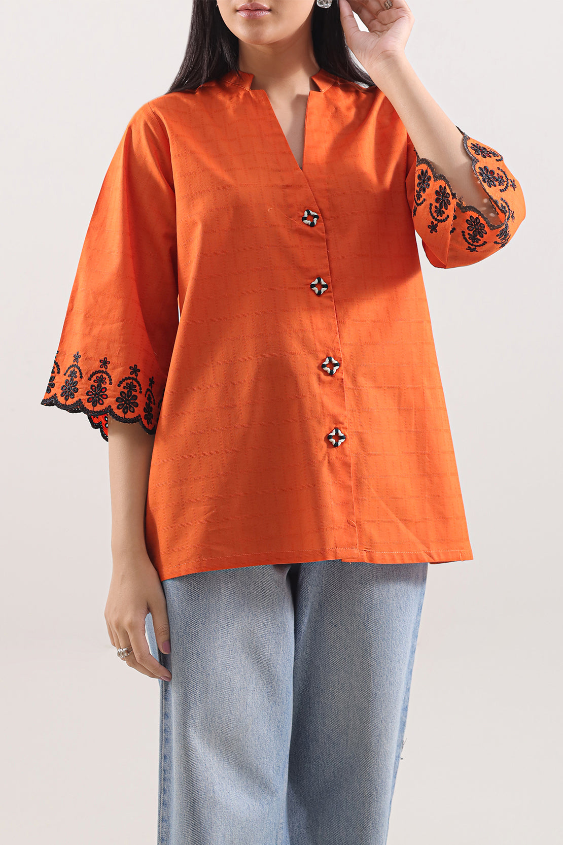 Embroidered Cotton Jacquard Stitched Fusion Tops