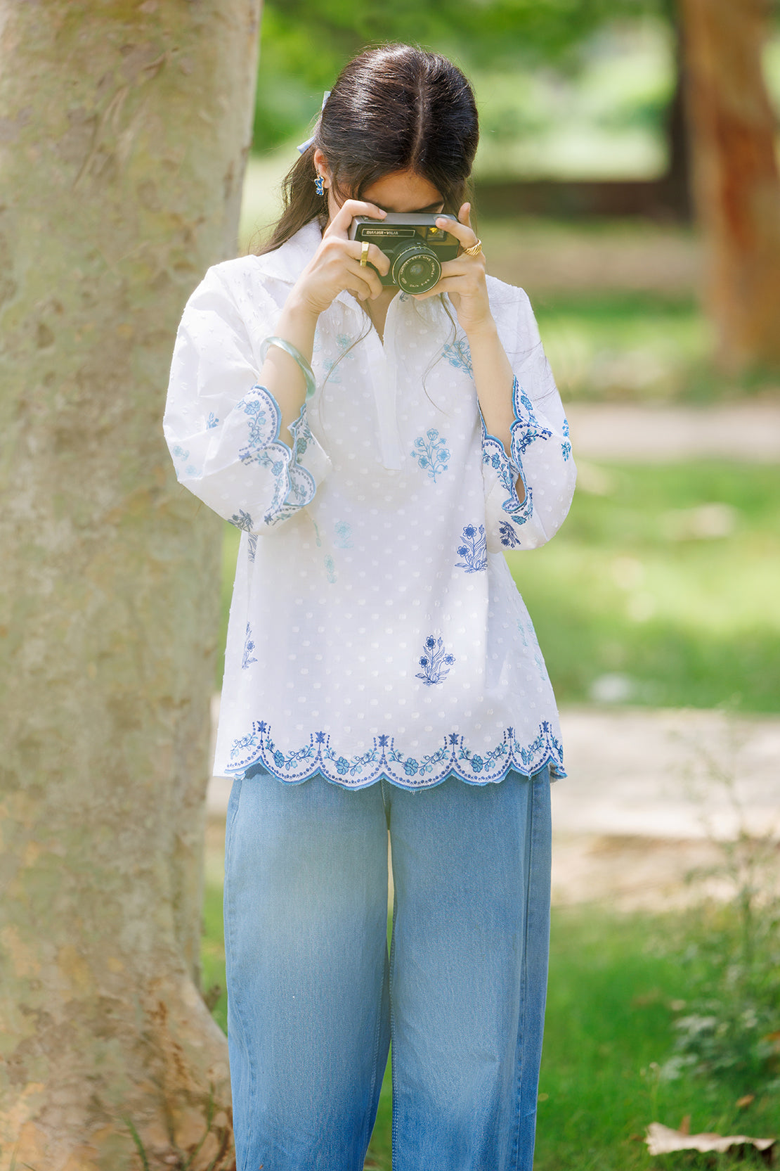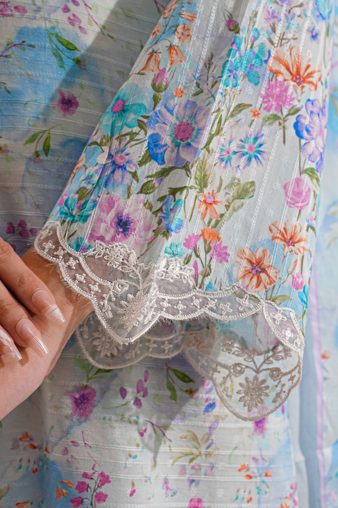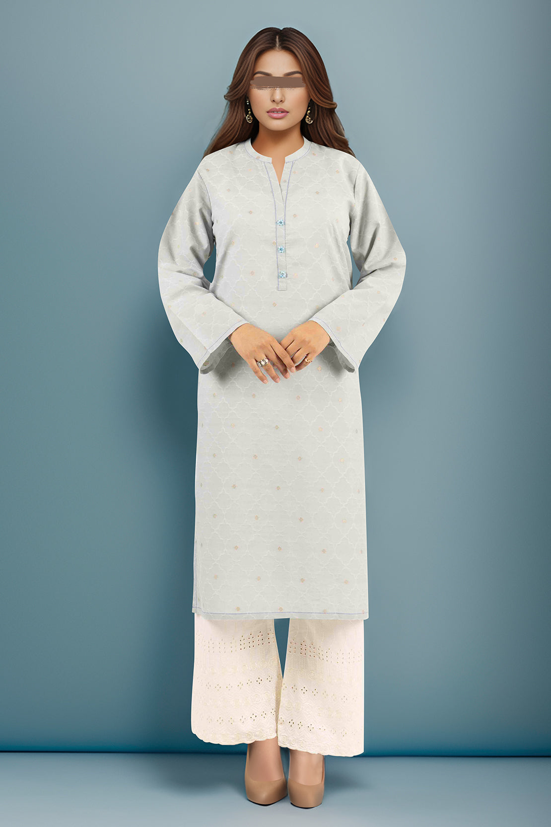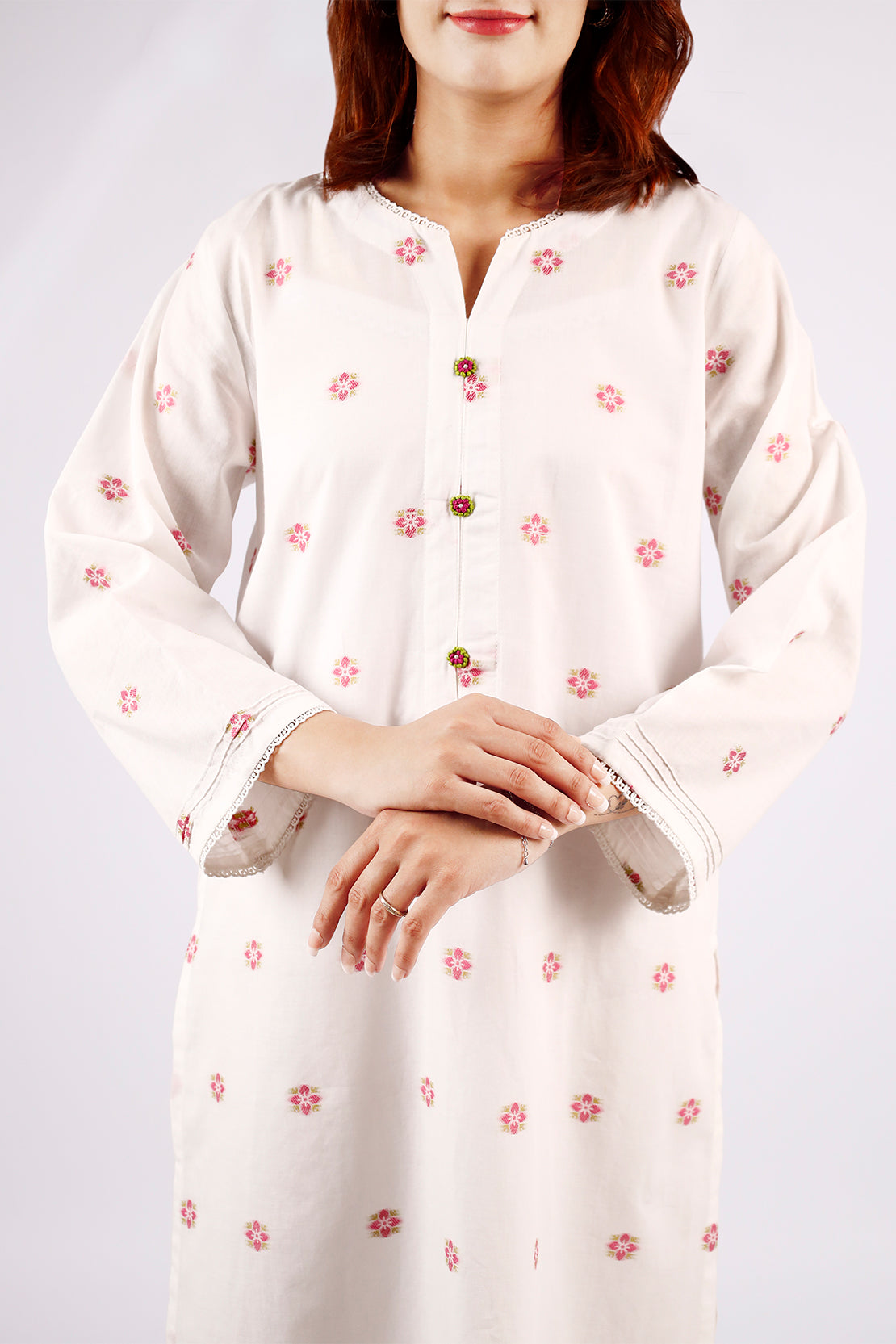 Embroidered Cotton Jacquard Stitched Fusion Tops
