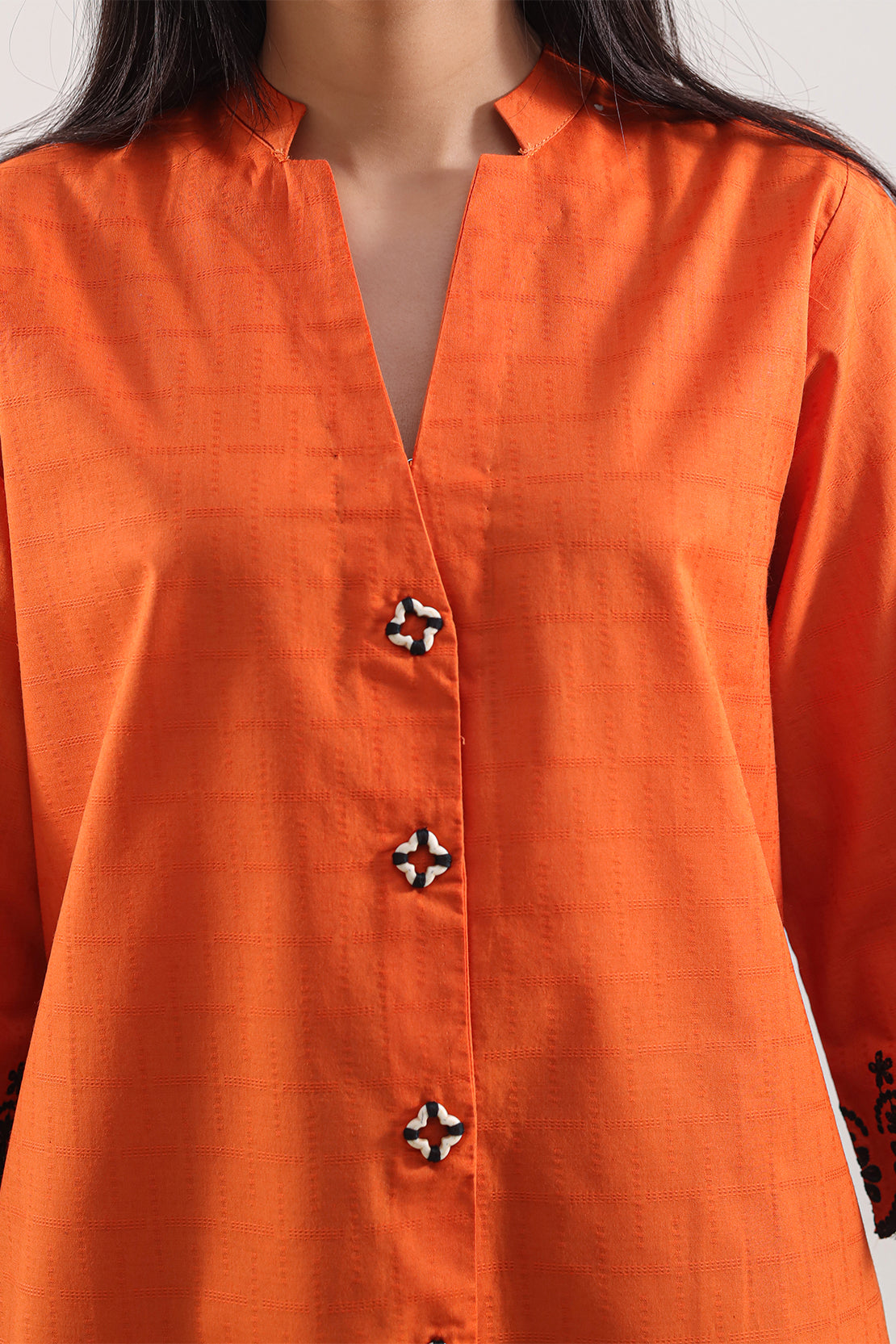 Solid Embroidery Viscose Slub Stitched Shirt
