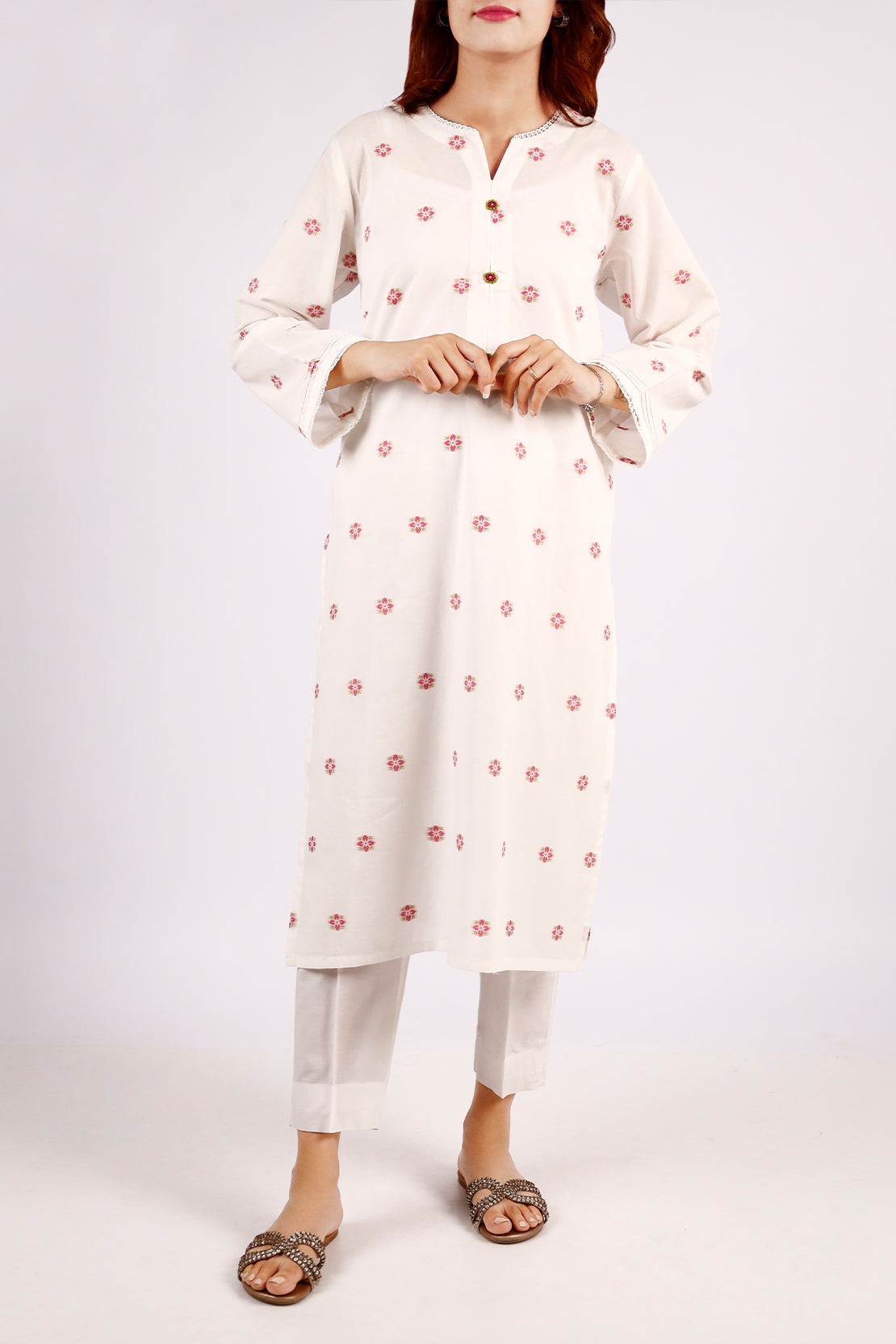 Printed Embroidered Cotton Jacquard Stitched Shirt