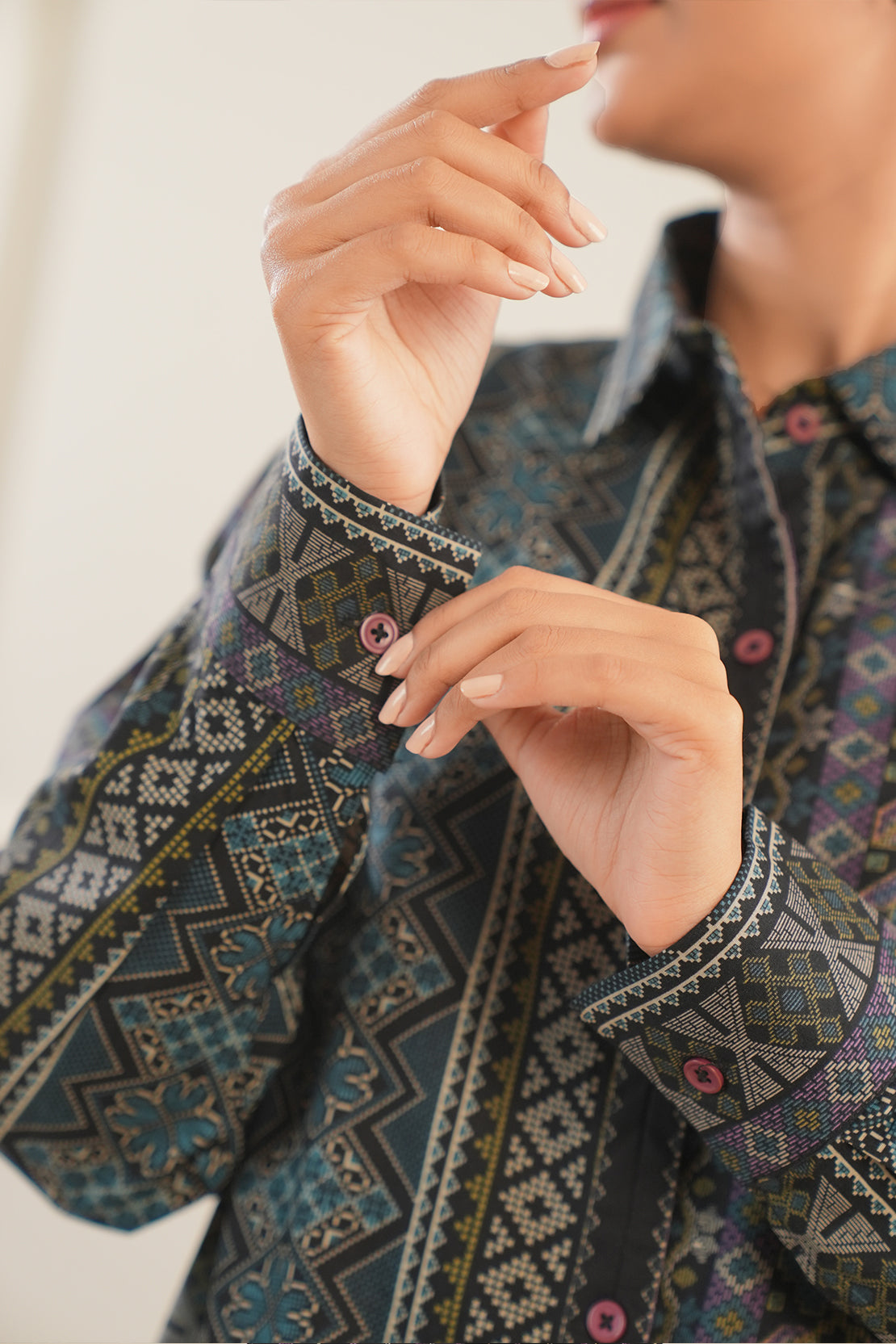 Printed Cambric Stitched Shirt