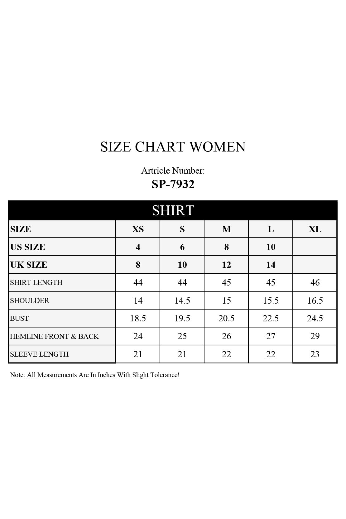 | Shirt Length | 0.5 | 44 | 44 | 45 | 45 | 46 |