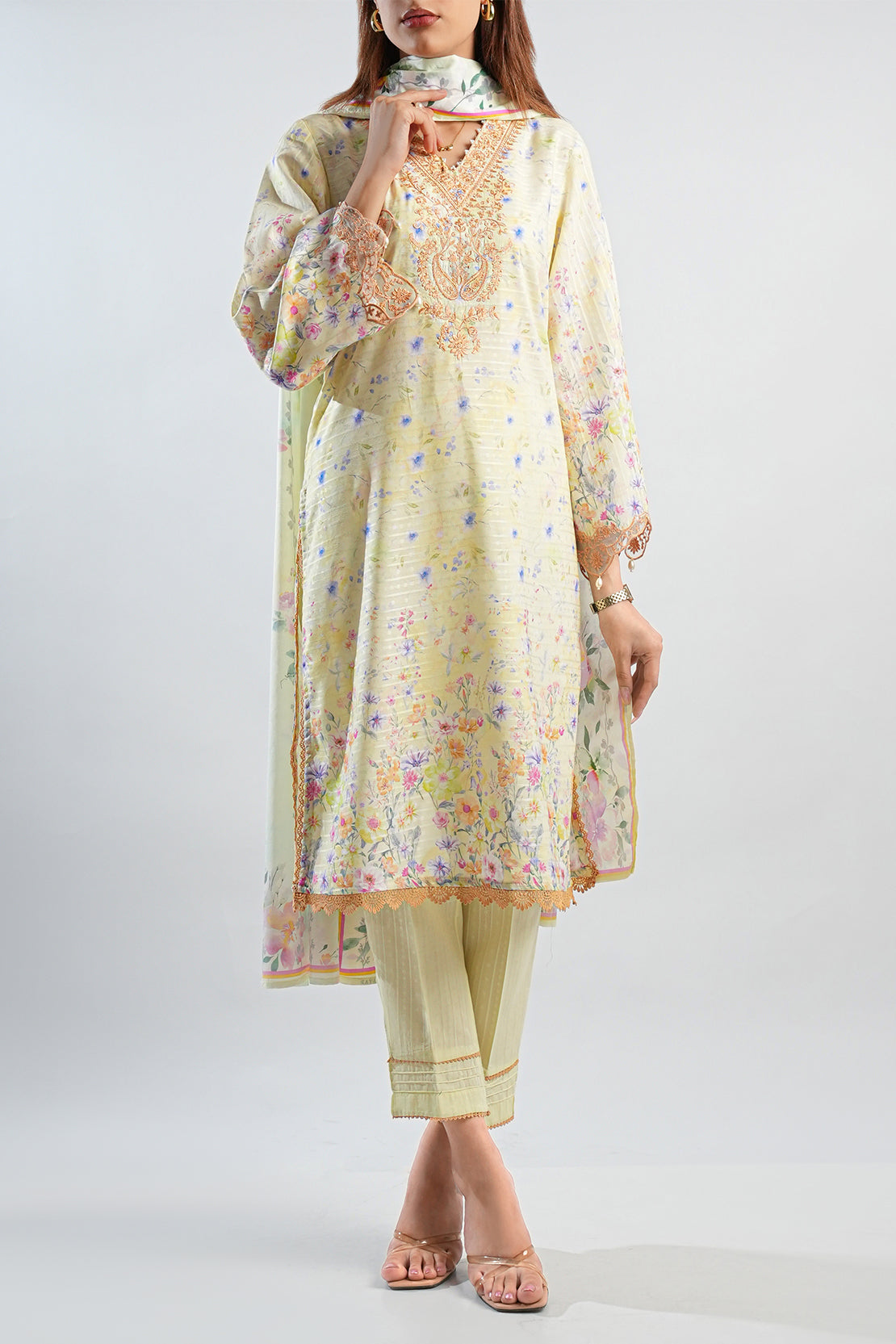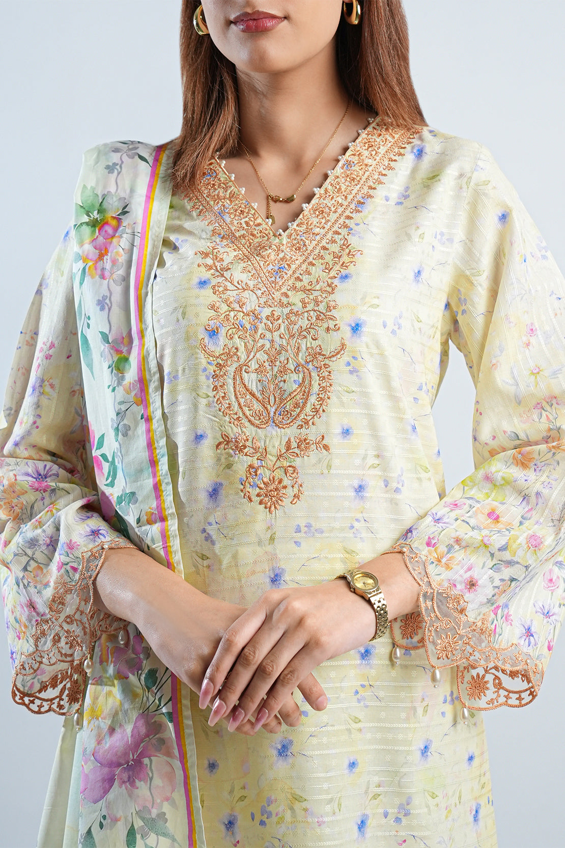 Printed Embroidered Cotton Jacquard Stitched Shirt