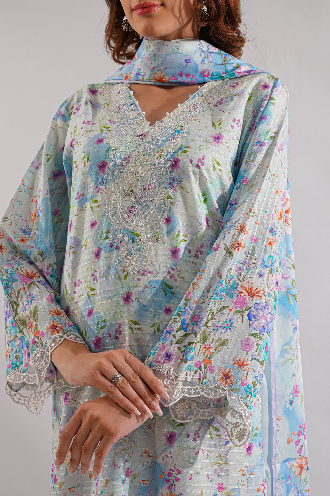 Upgrade your wardrobe with this printed and embroidered stitched Shirt set from Saya.pk. Made from premium cotton jacquard, the outfit includes a beautifully textured shirt perfect for casual elegance and graceful everyday wear.