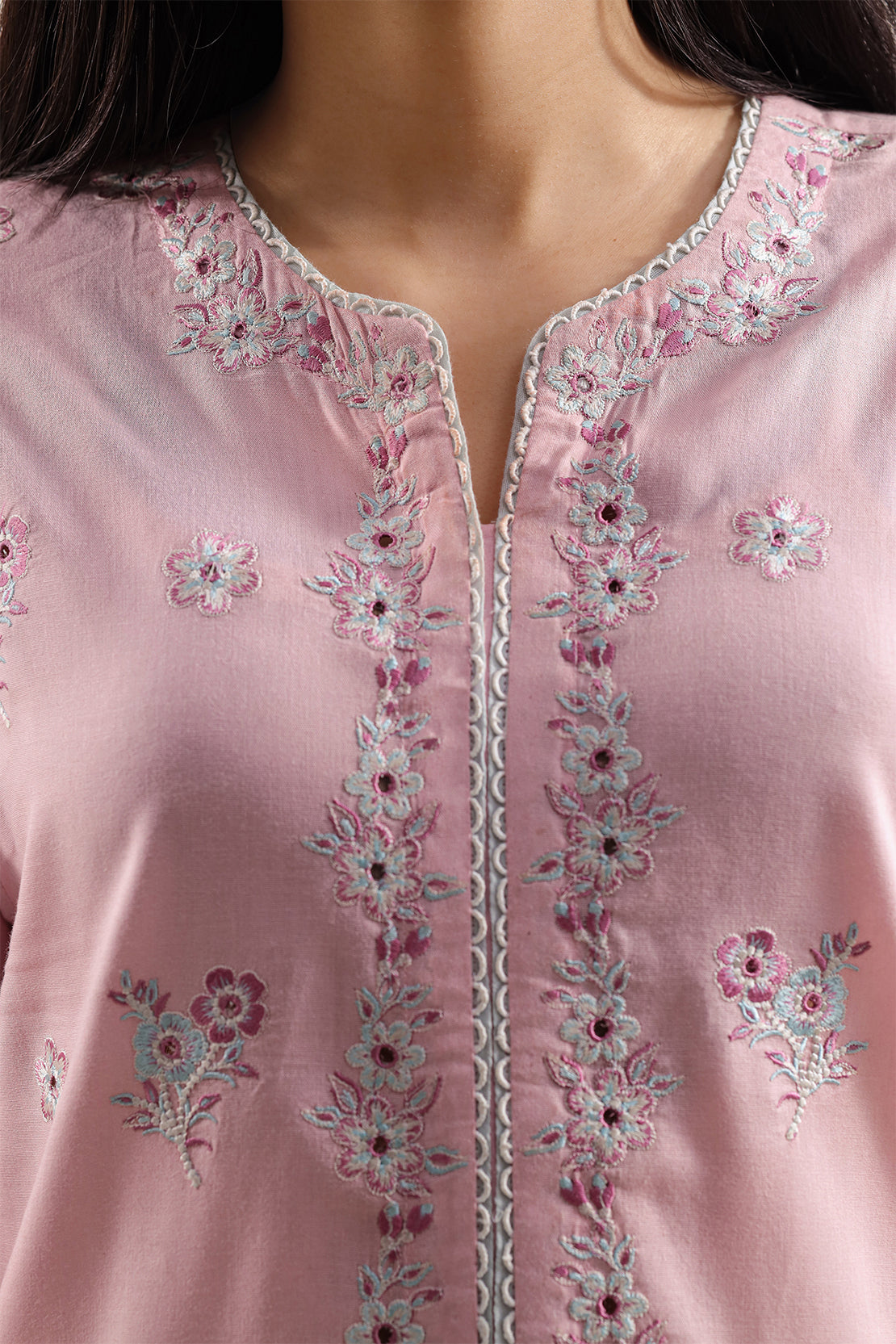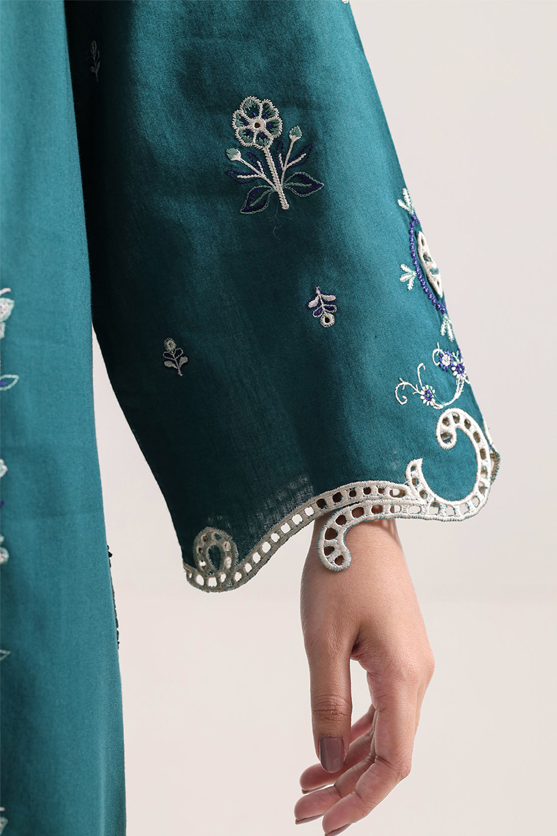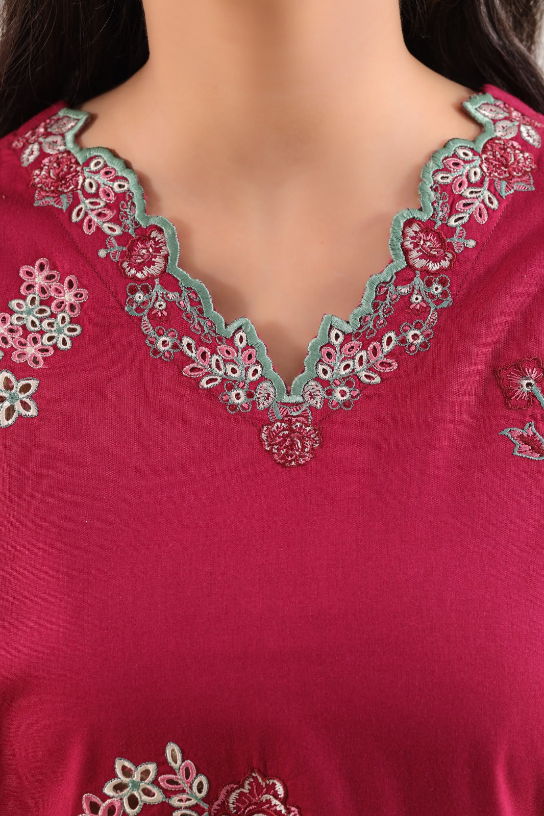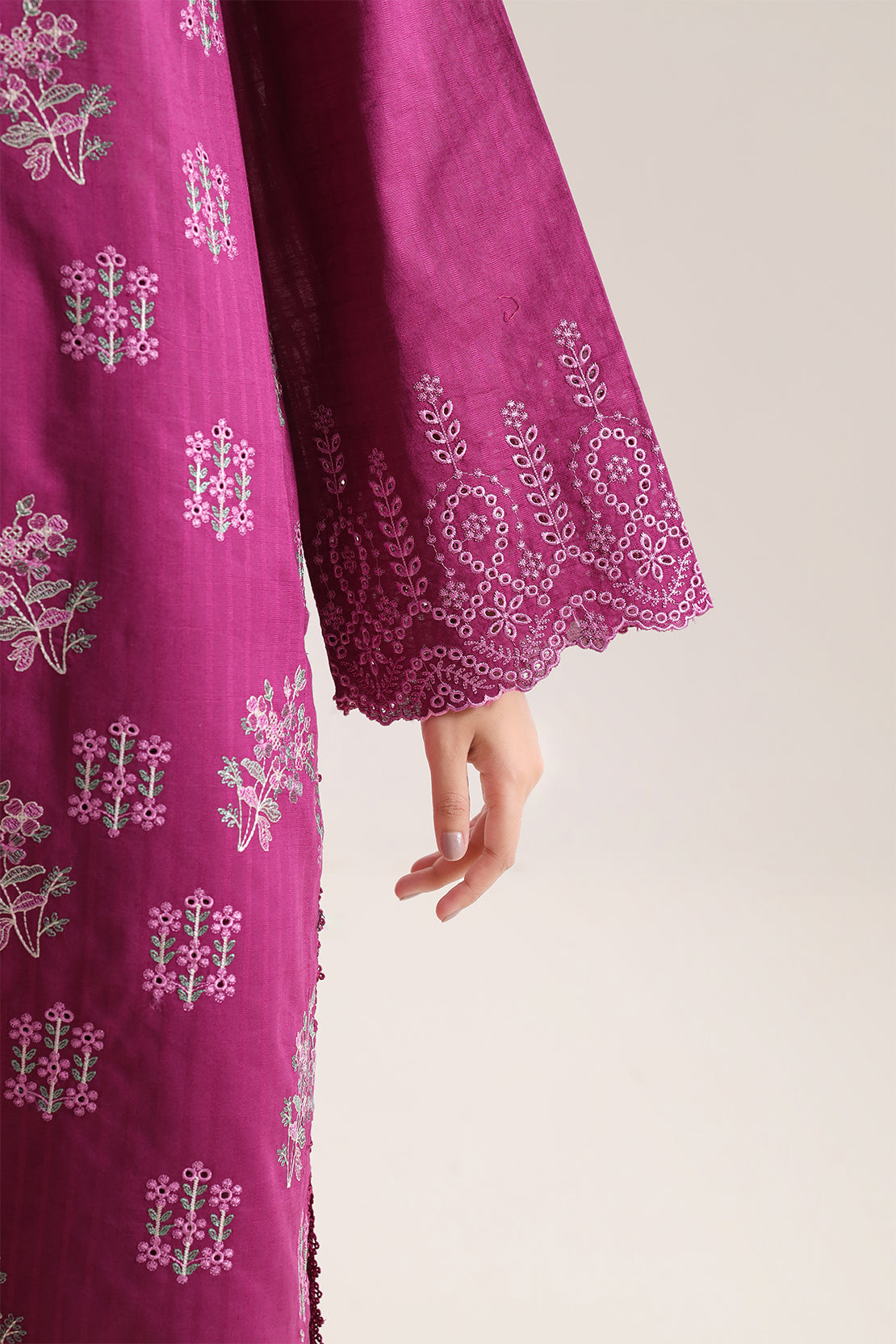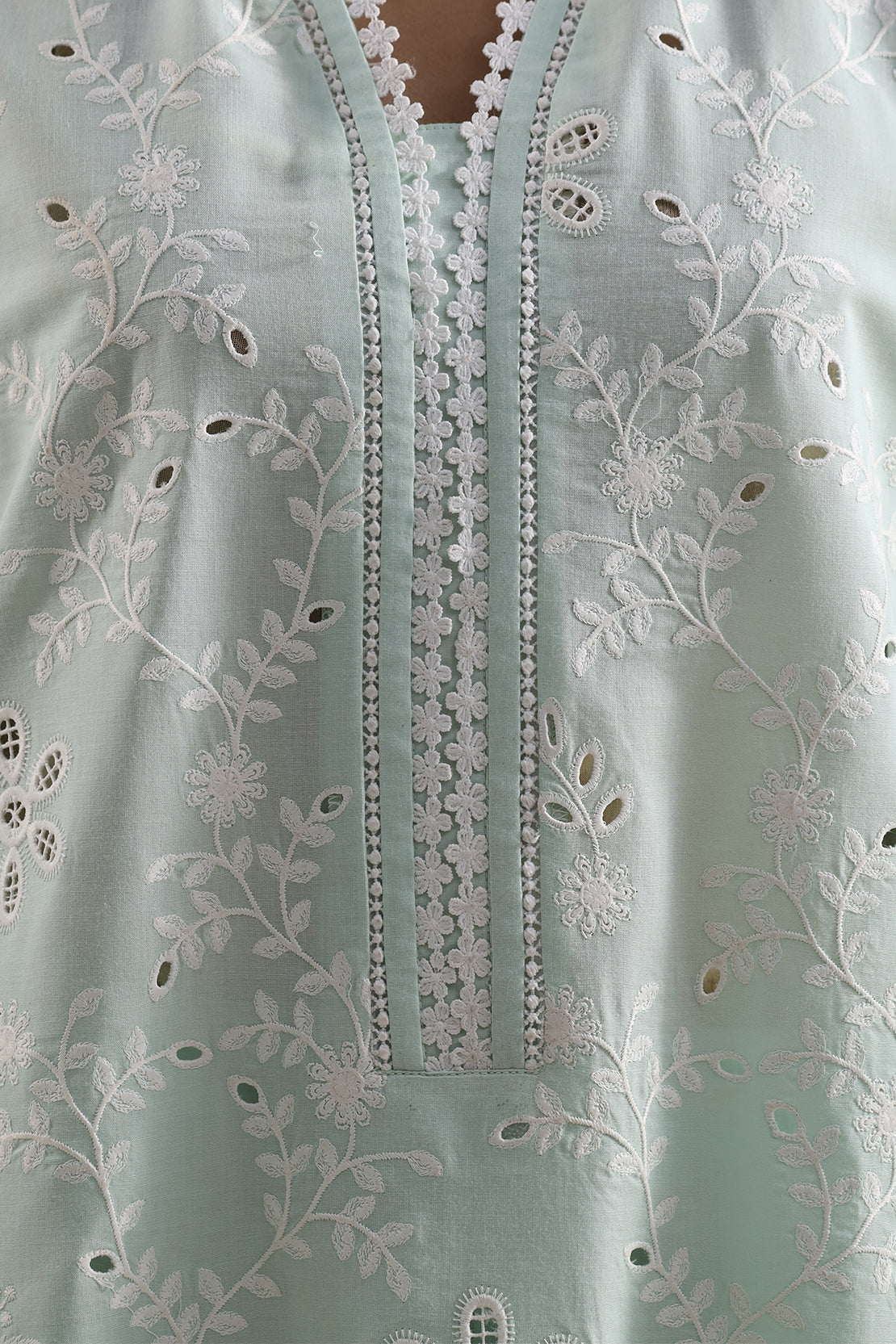Solid Embroidered Cambric Stitched 3 Piece