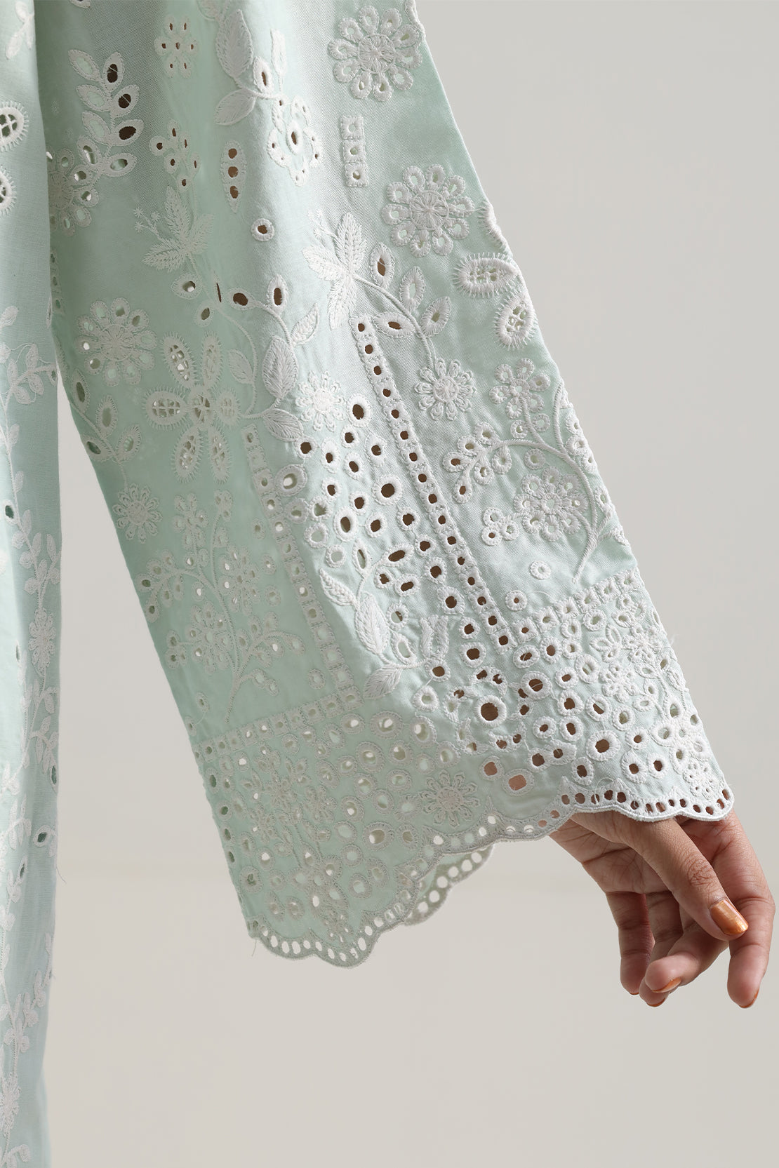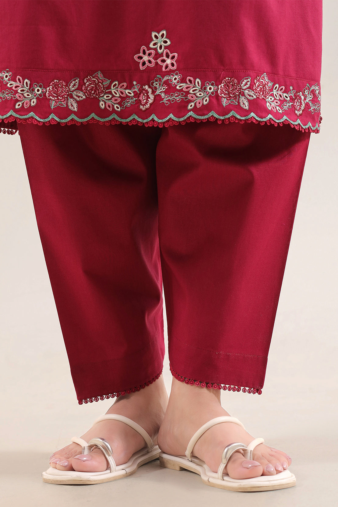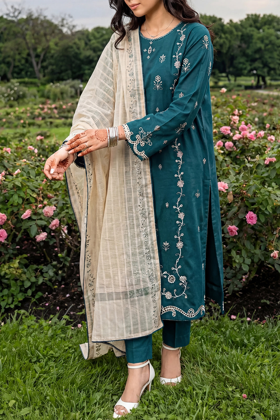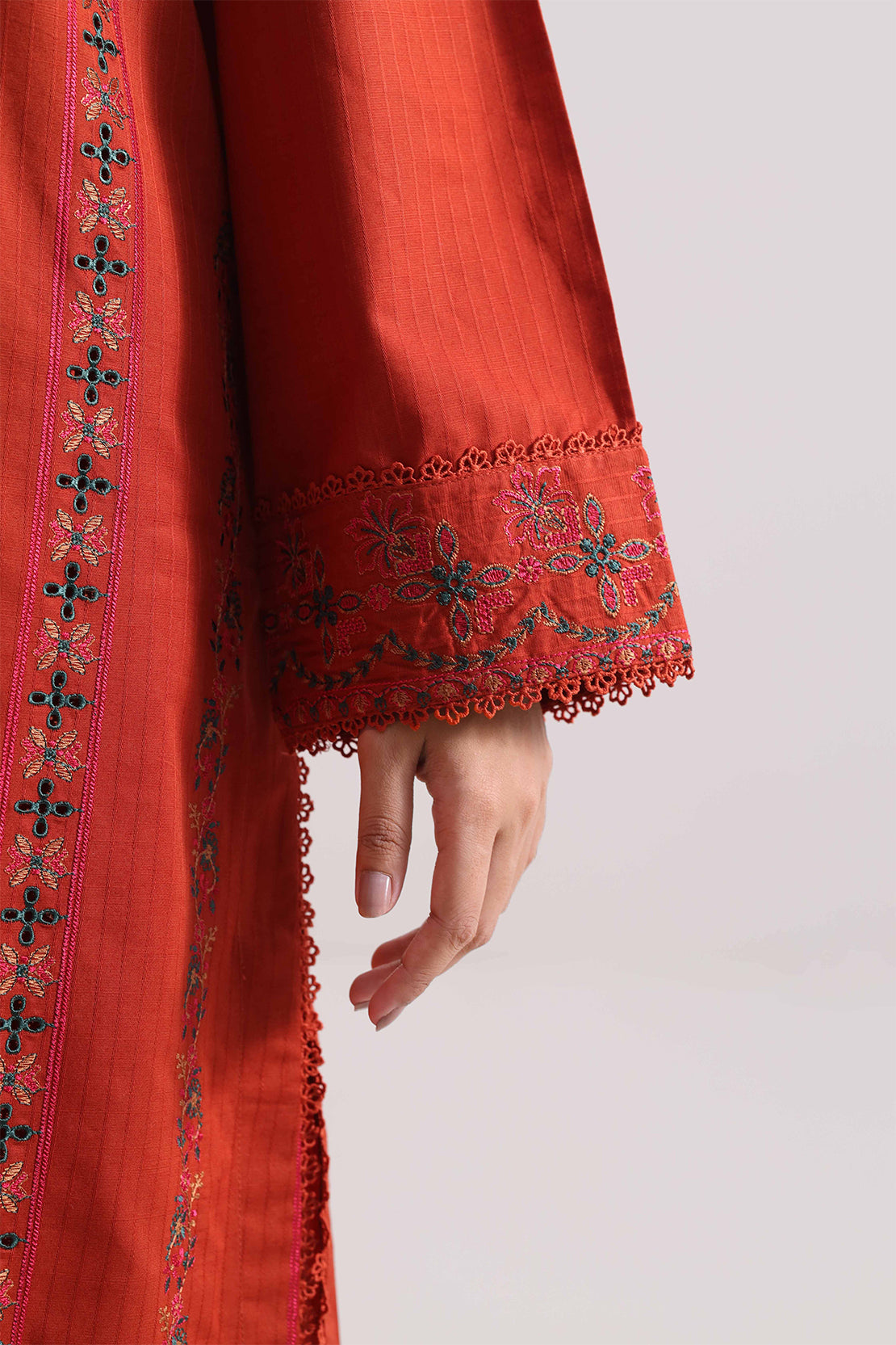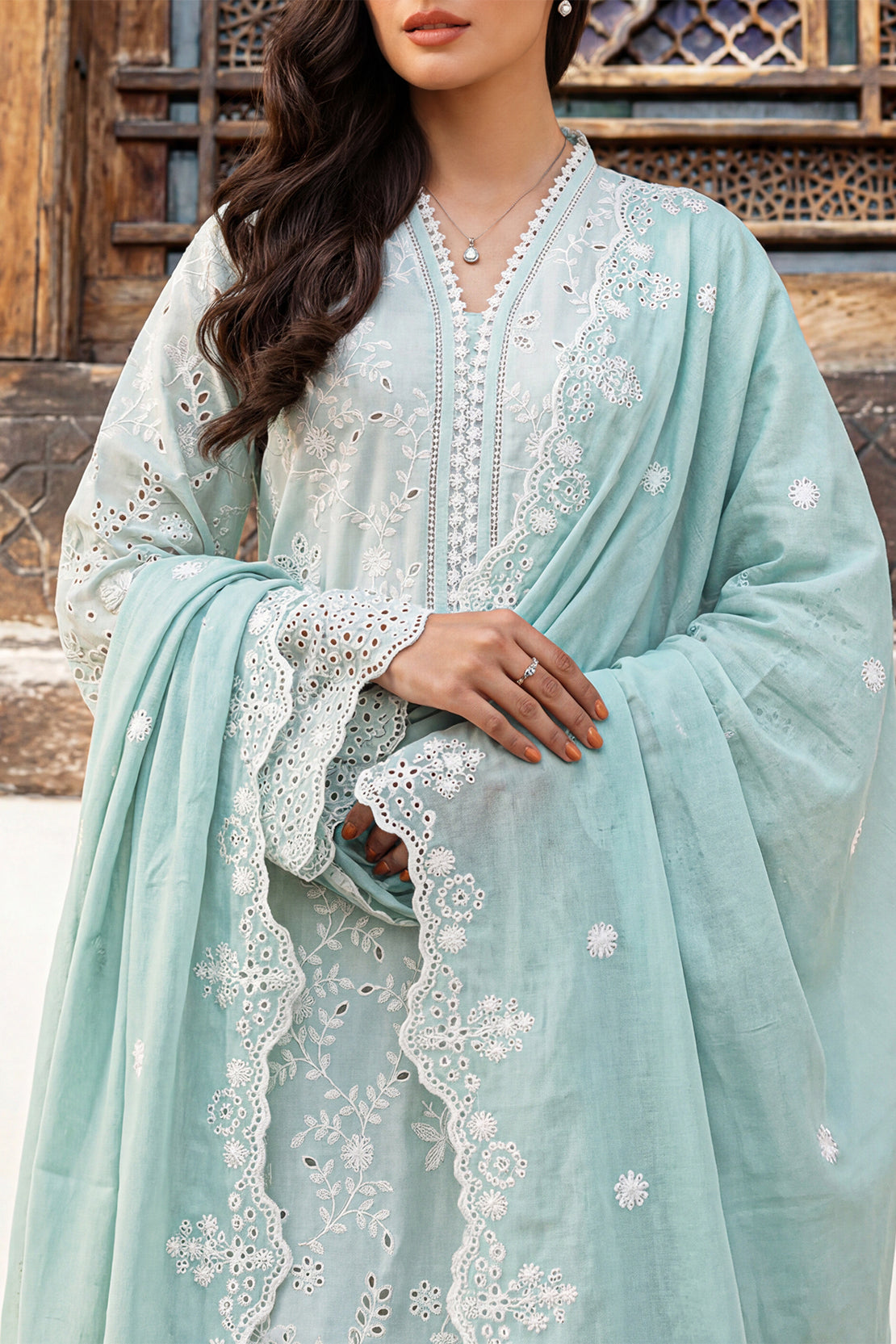 Solid Embroidered Cambric Stitched 3 Piece