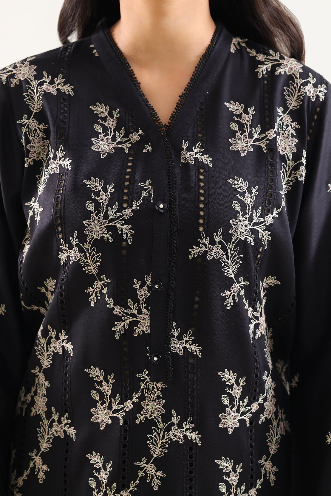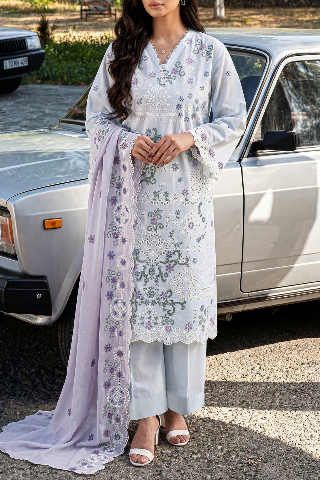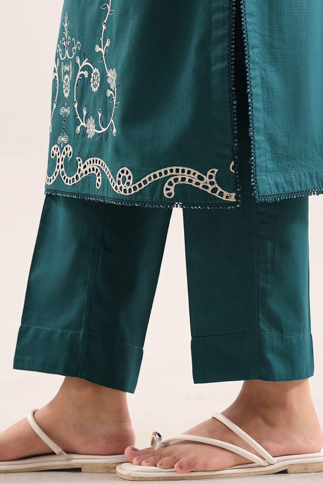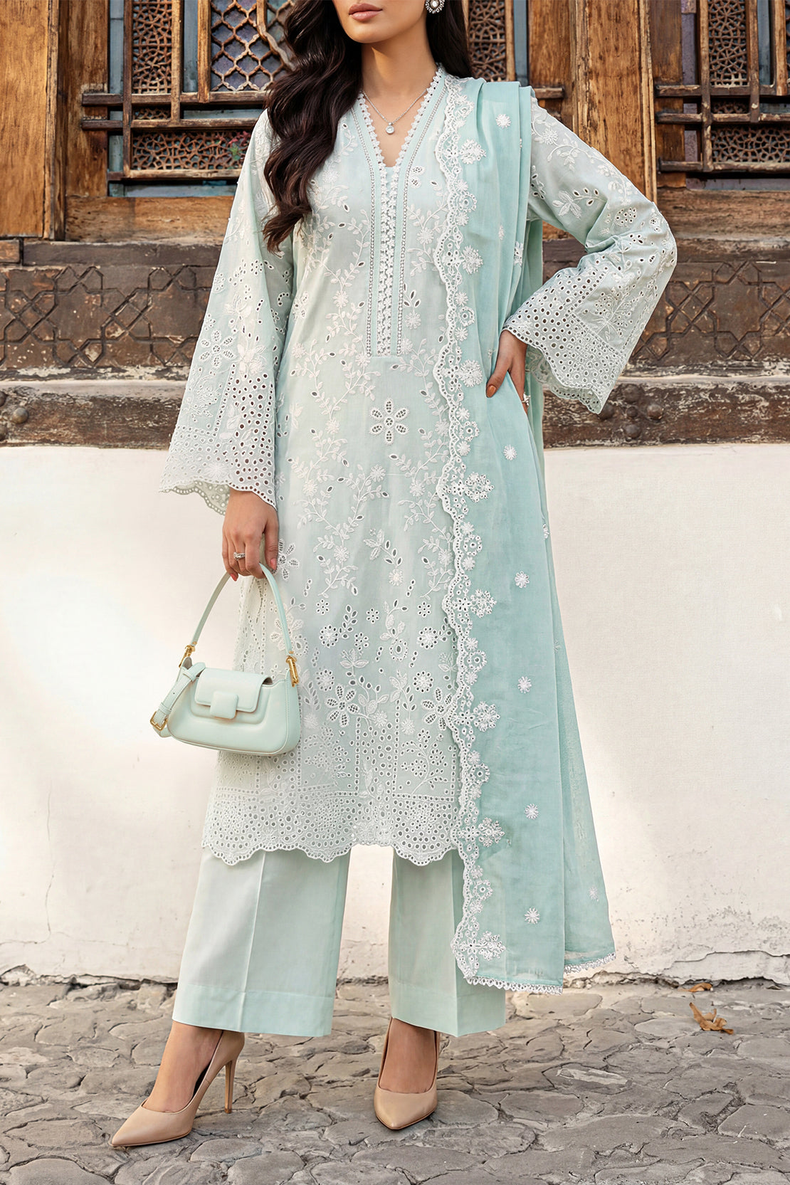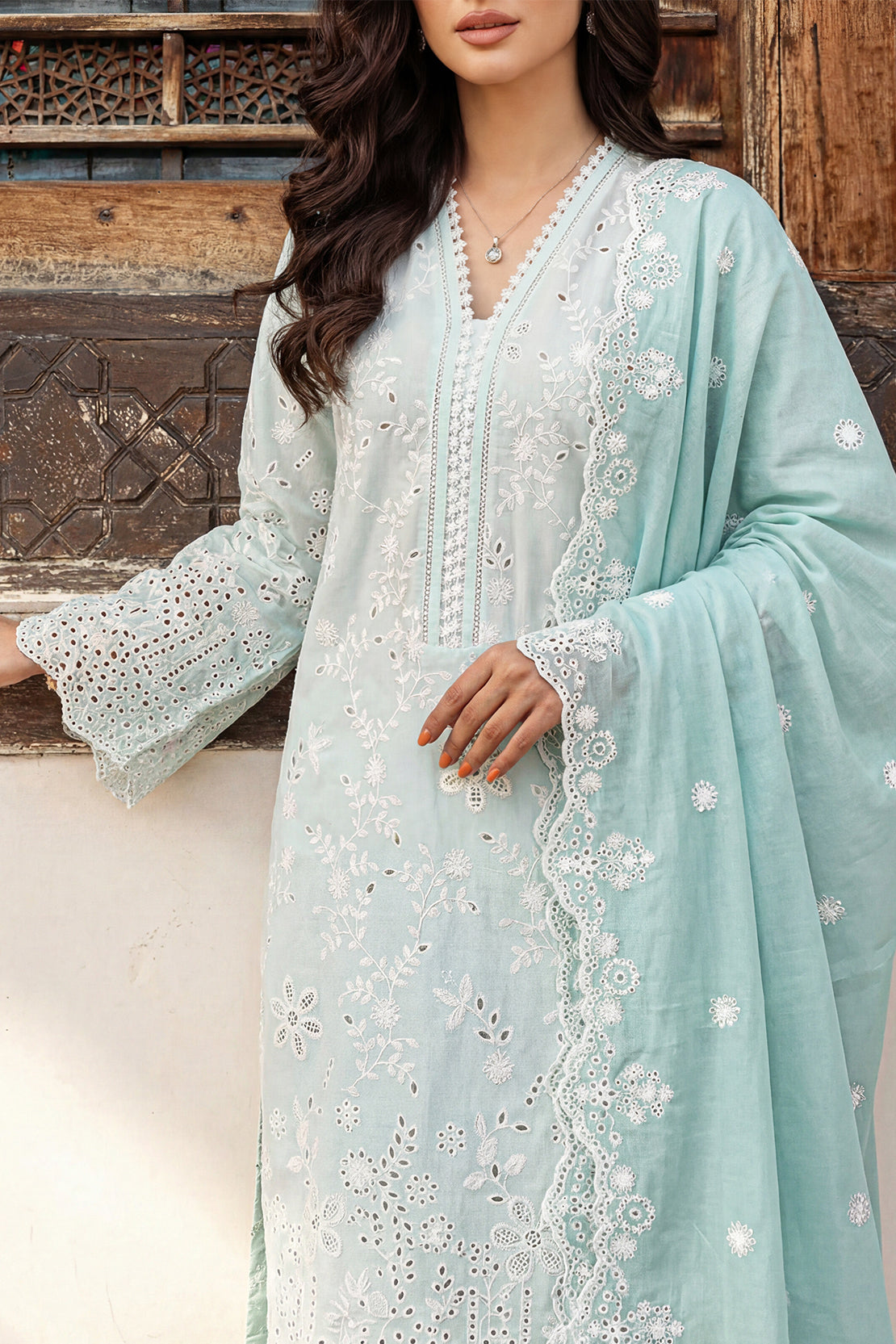 Solid Embroidered Cambric Stitched 3 Piece
