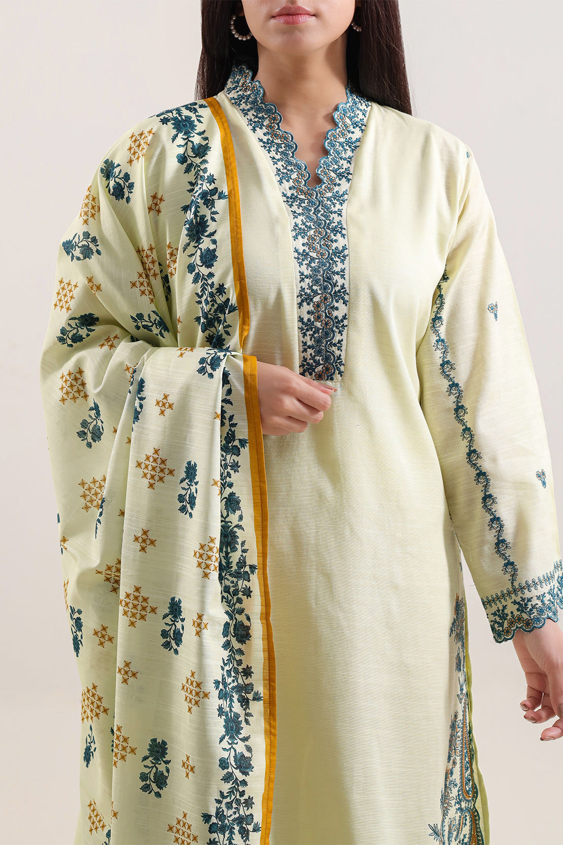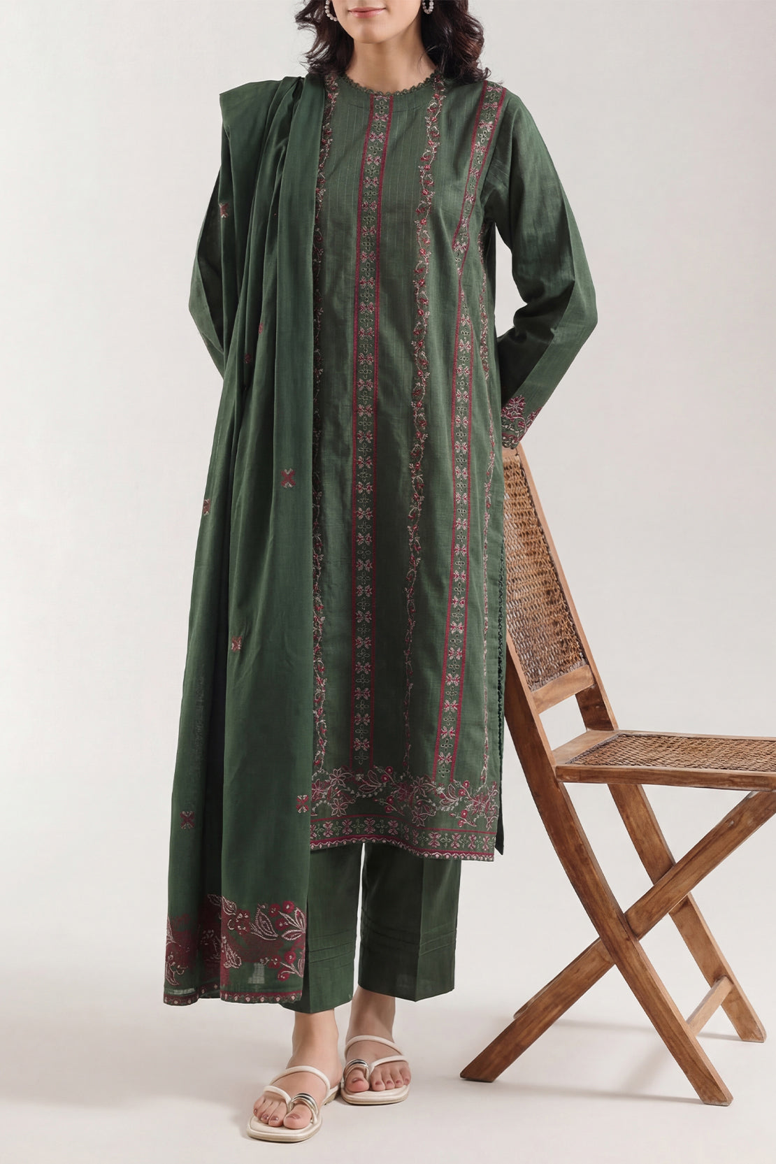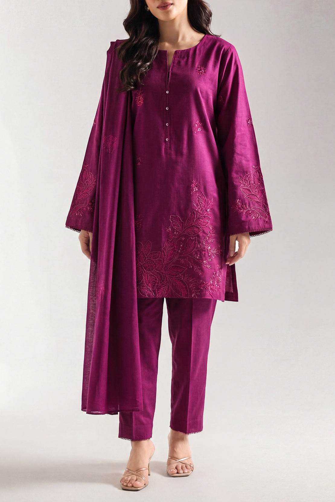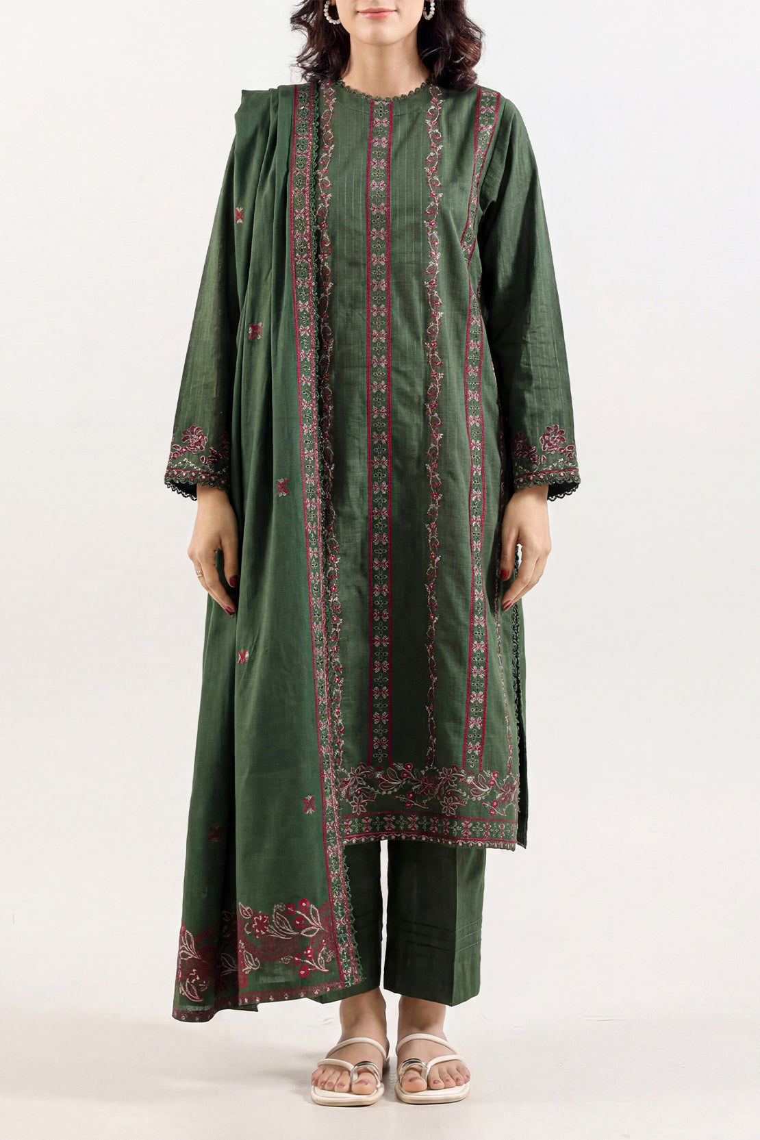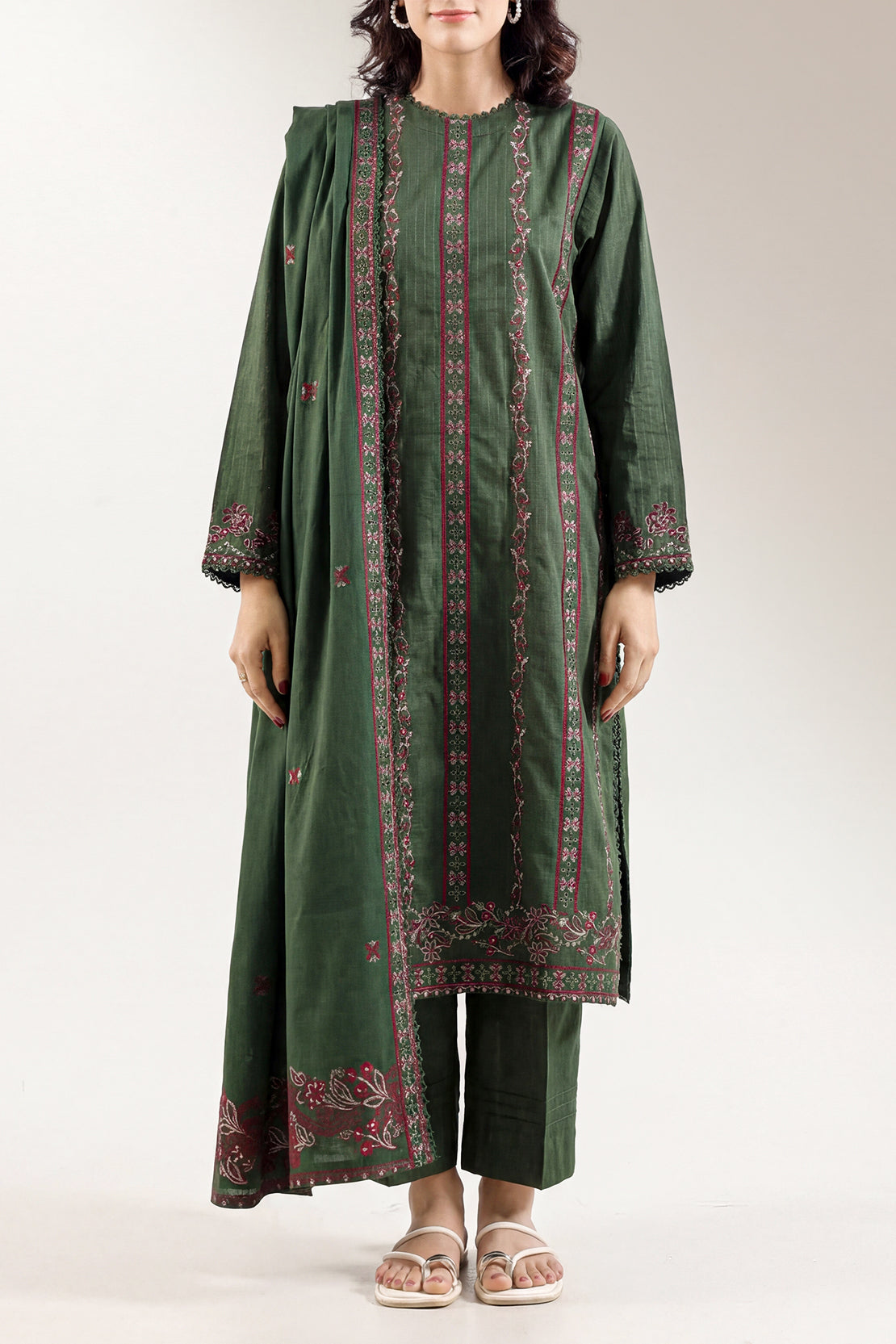 Solid Embroidered Cotton Stitched 3 Piece
