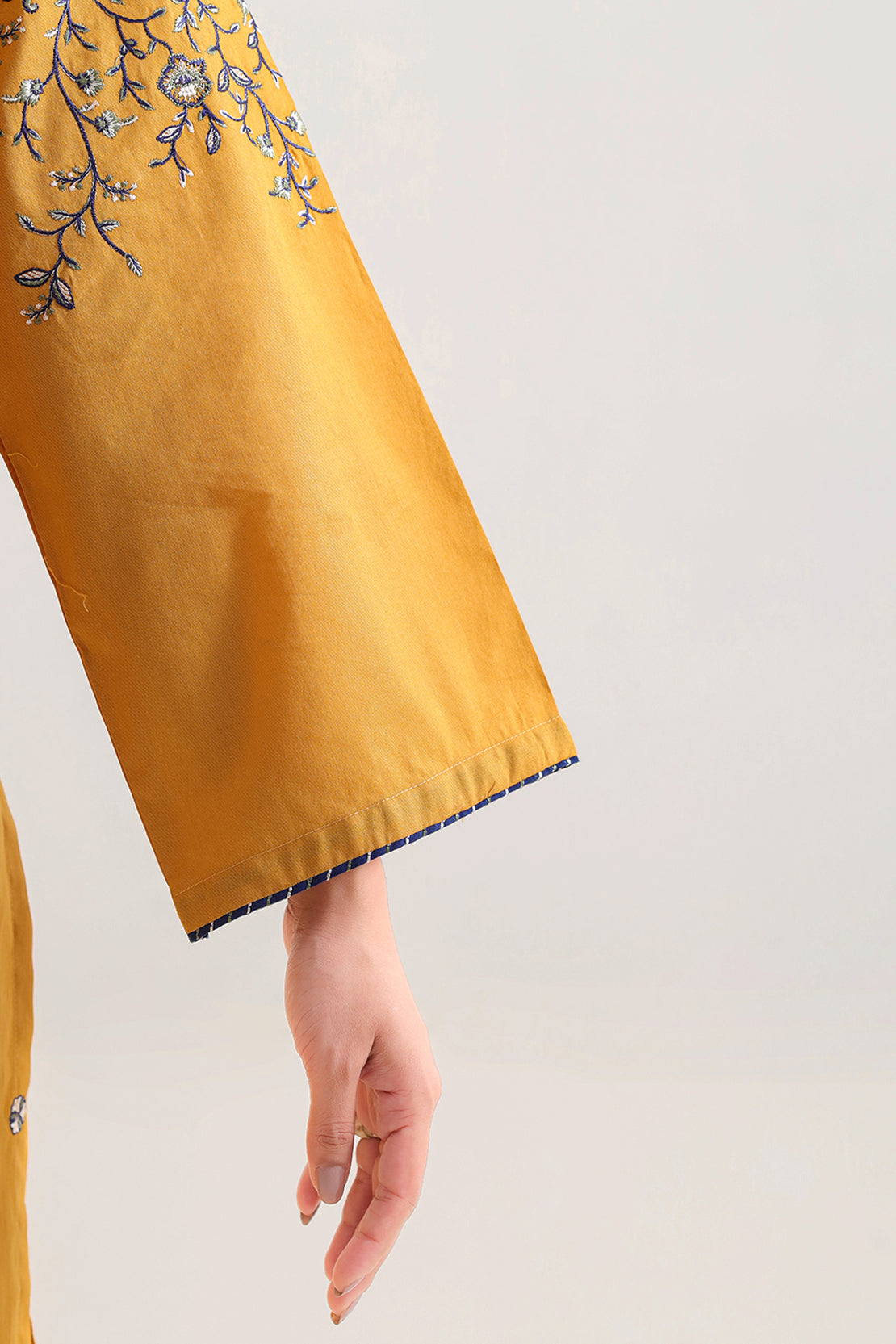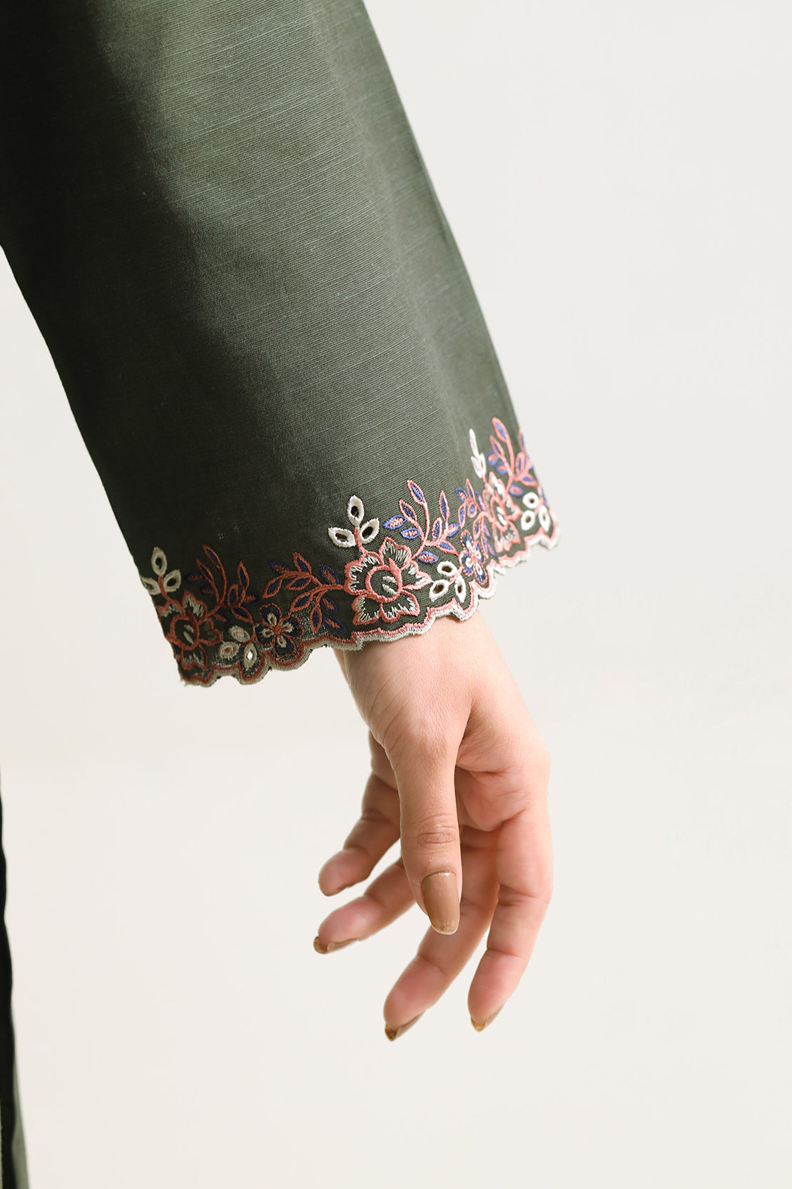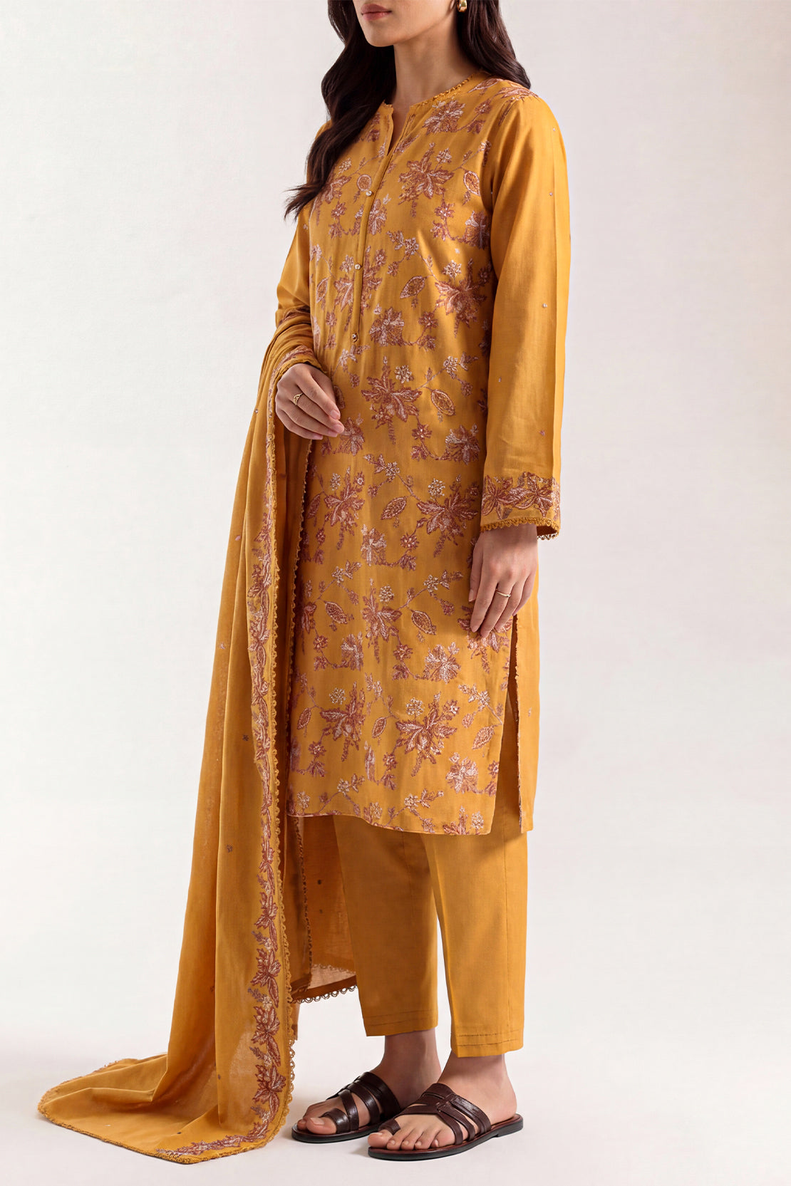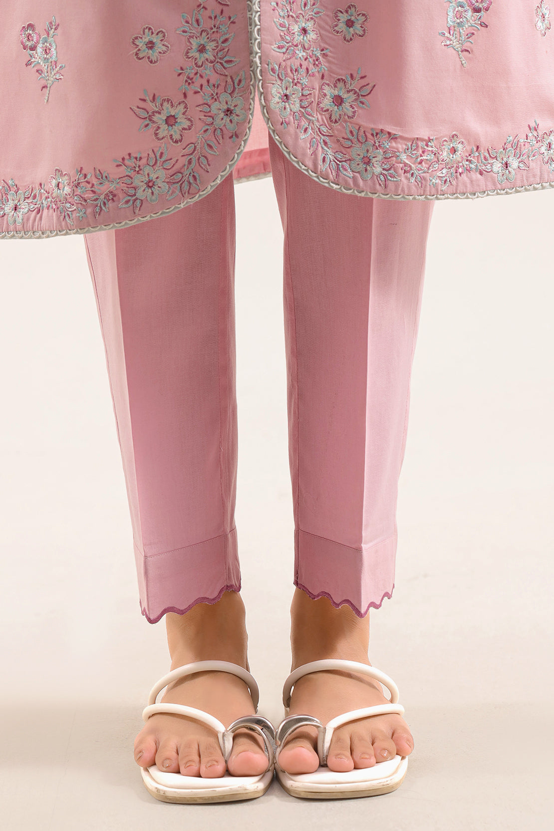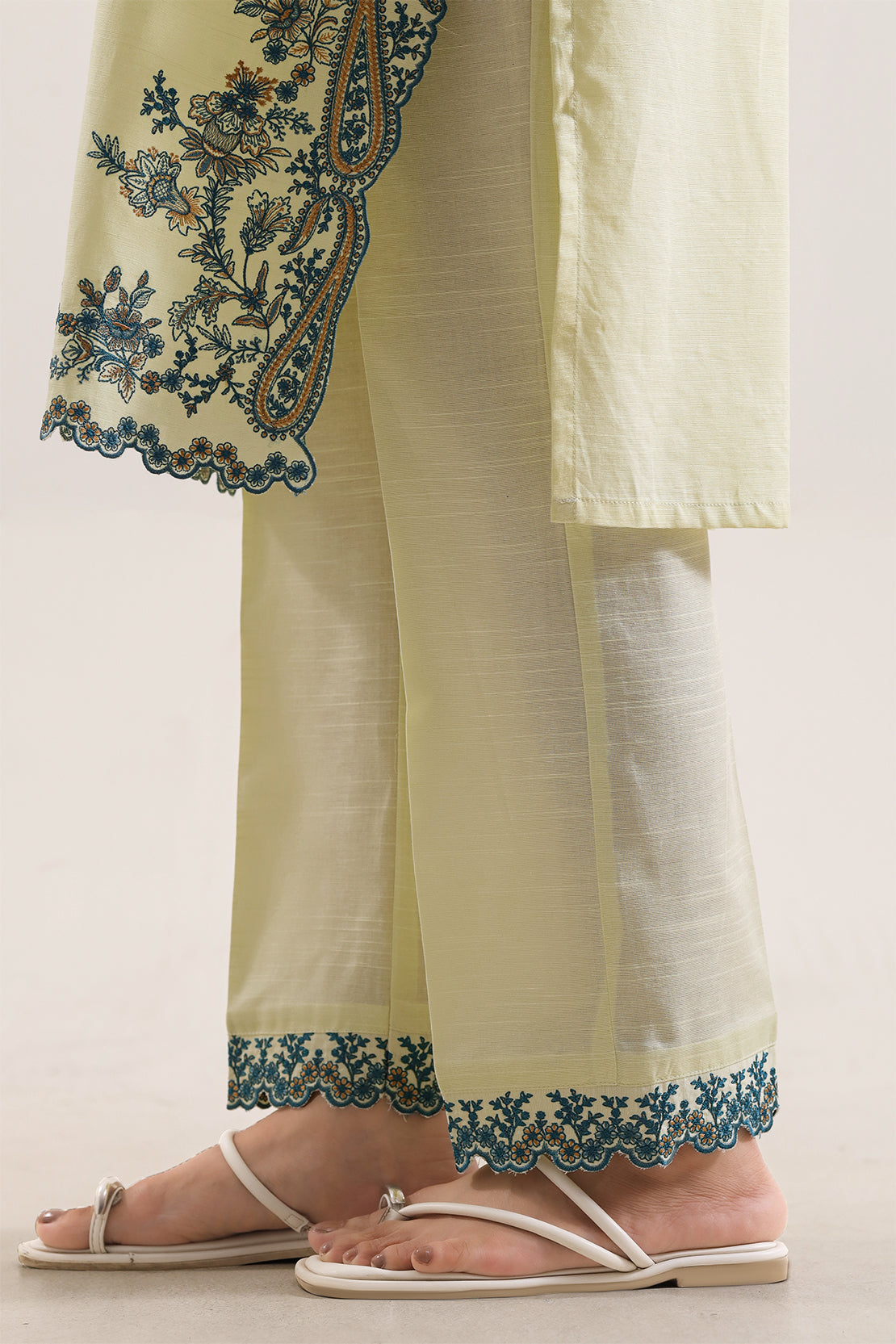 Solid Embroidered Cotton Stitched 3 Piece