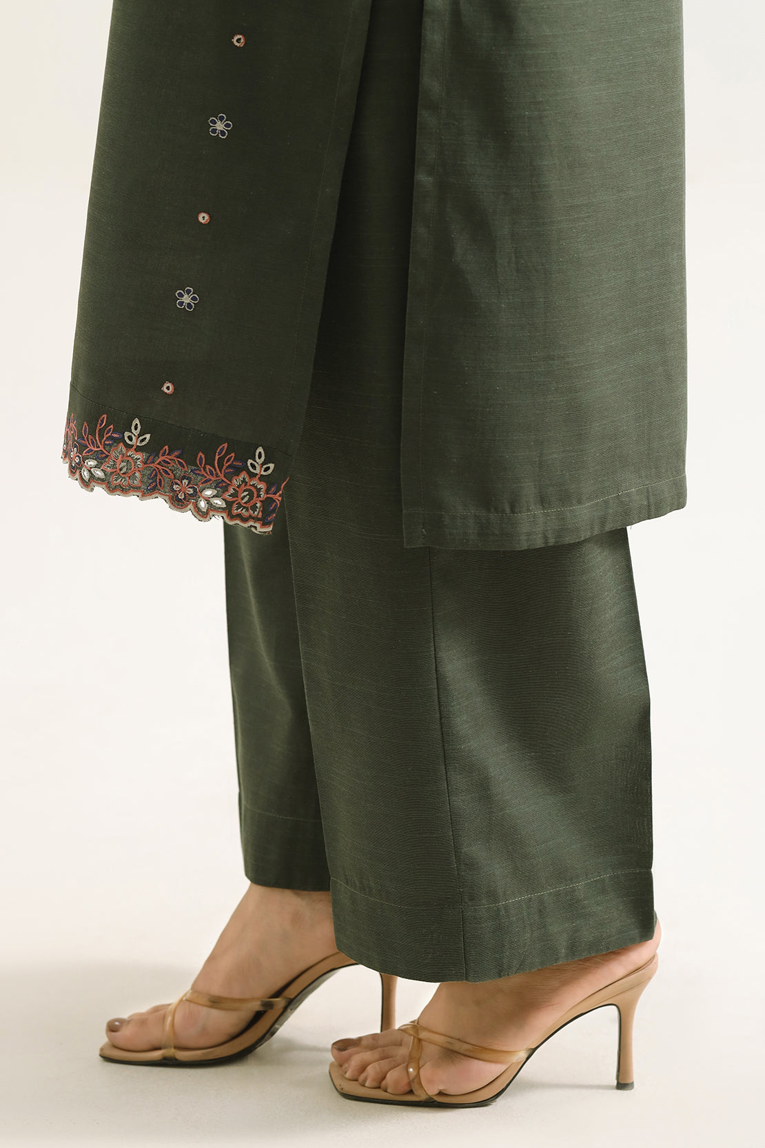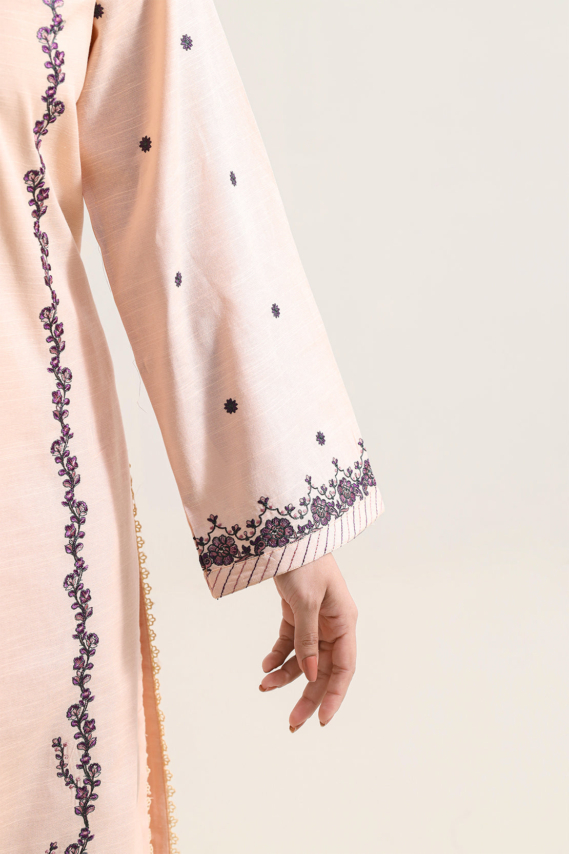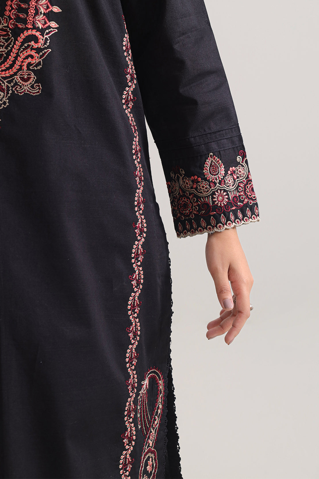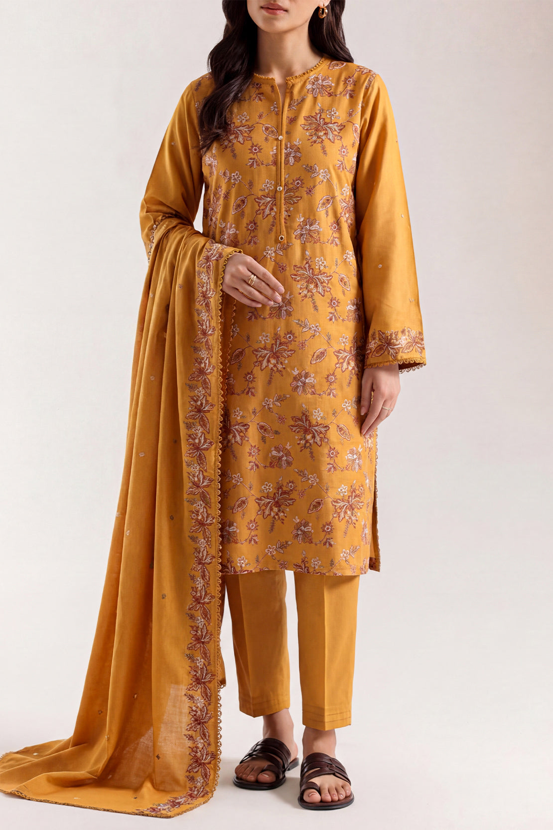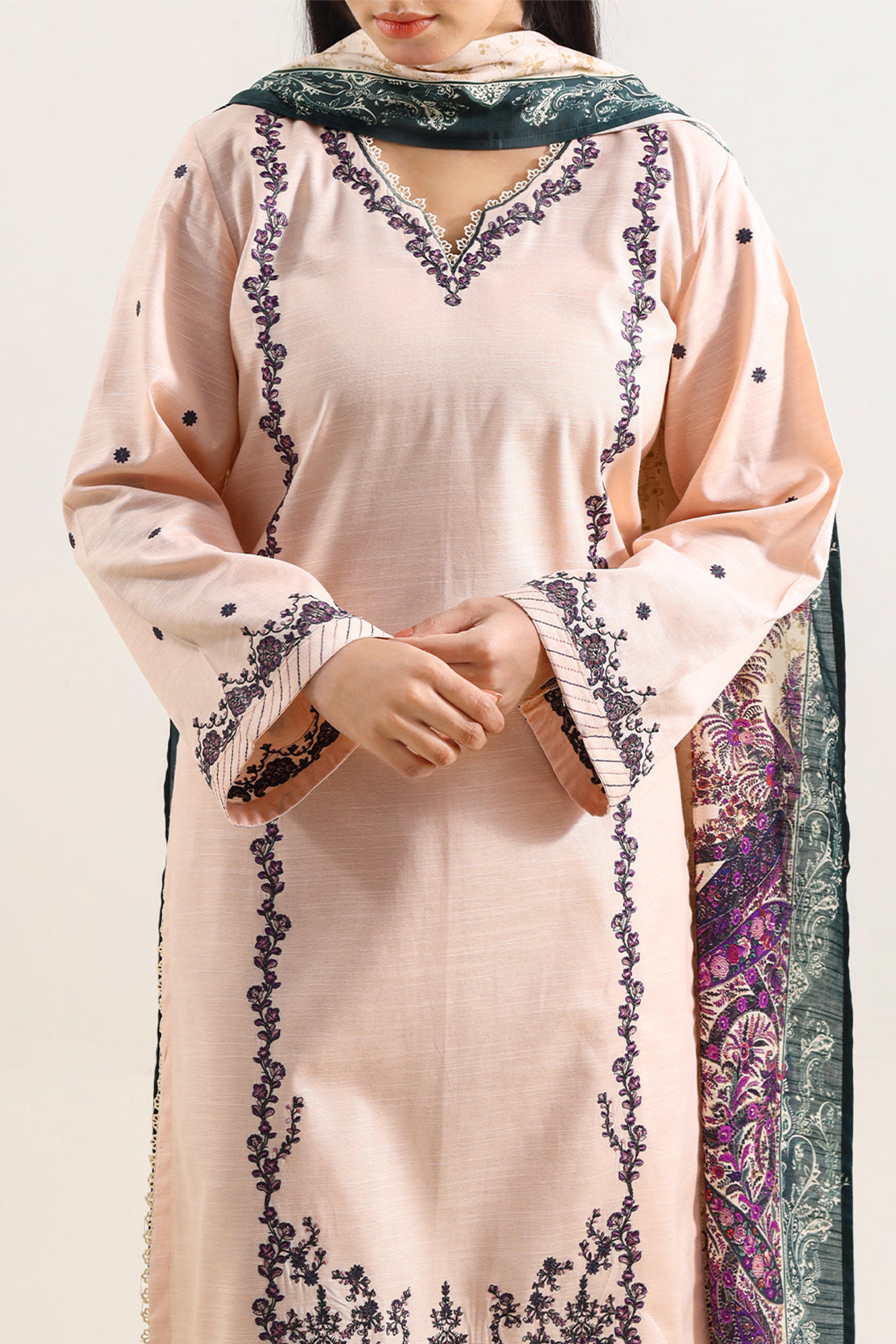 Solid Embroidered Karandi Stitched 3 Piece