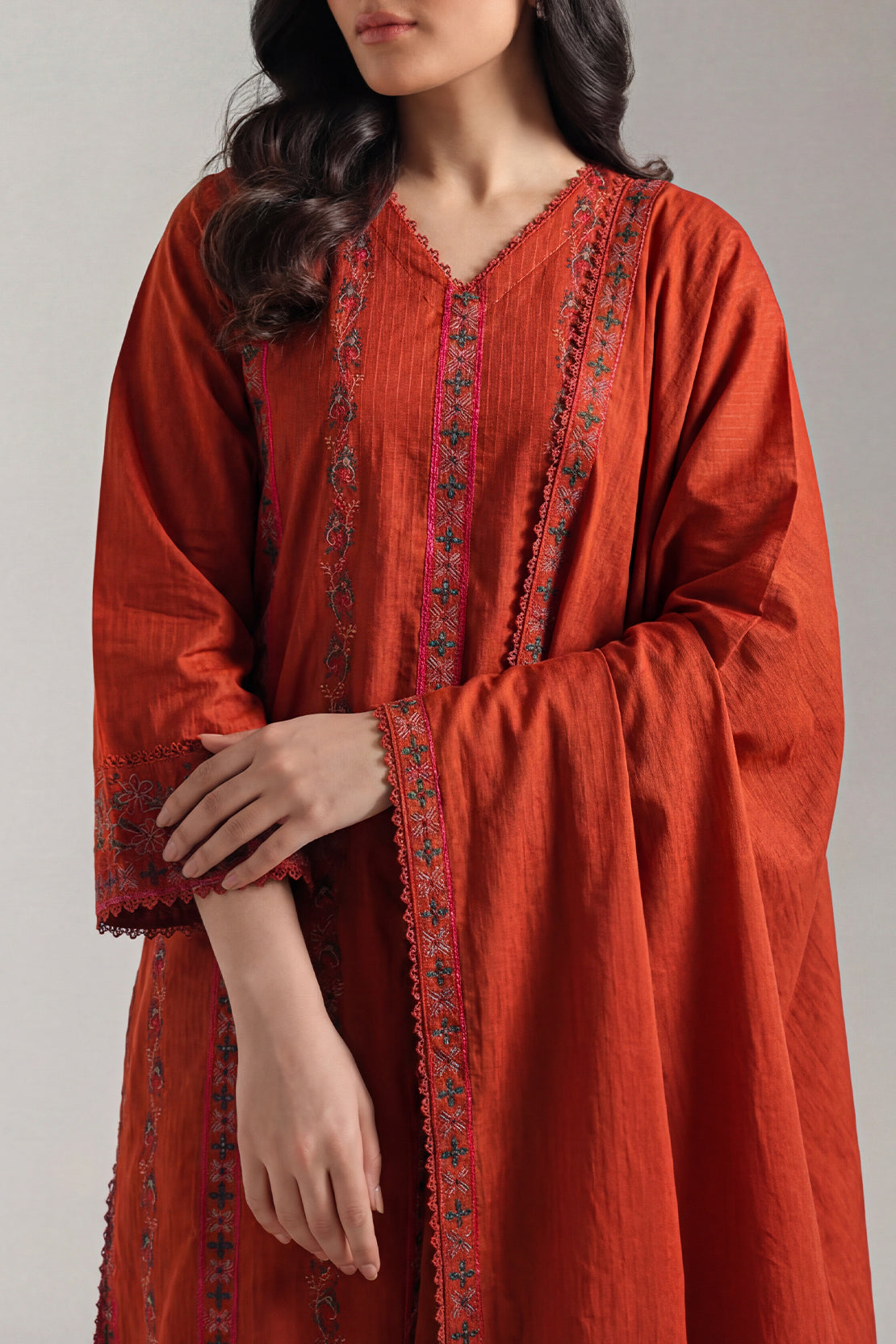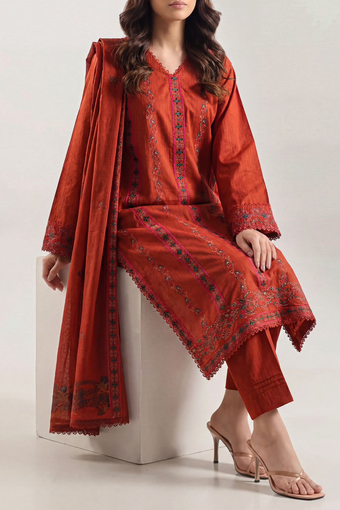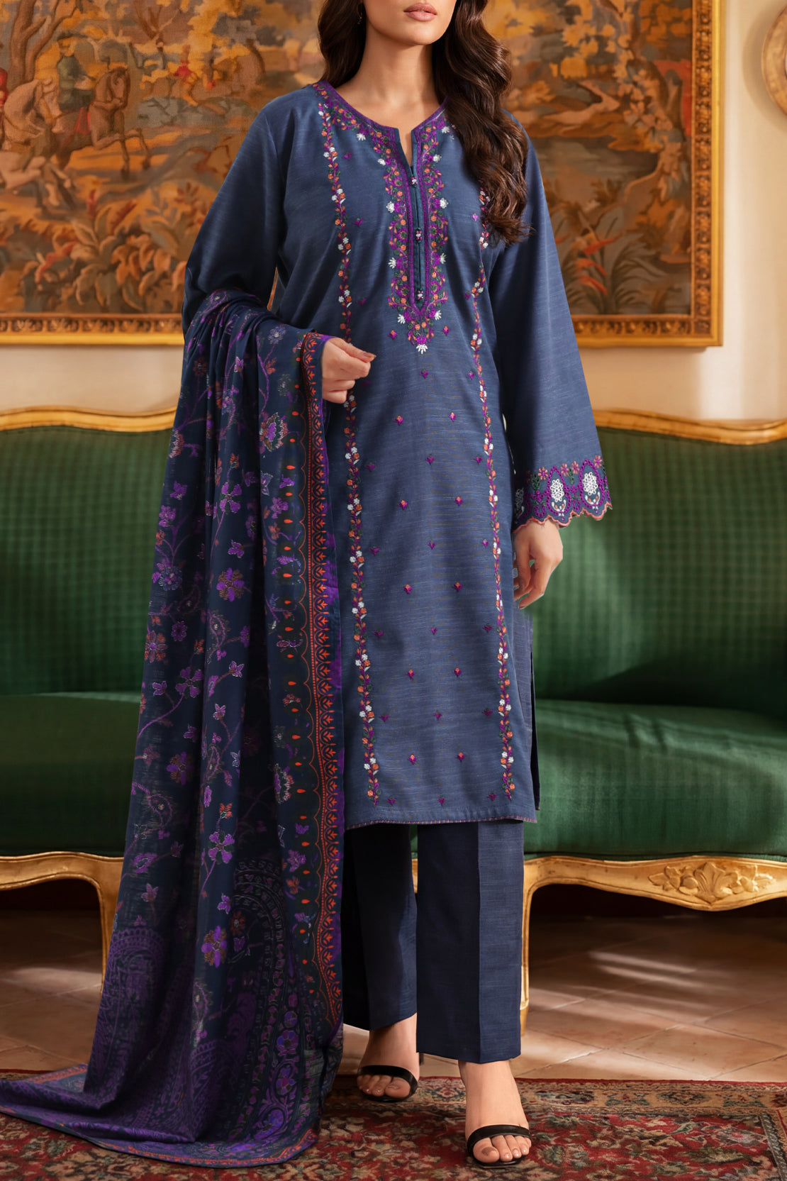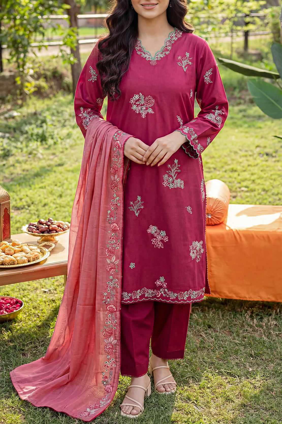 Luxury Pret Embroidered Soft Touch Cotton Stitched 3 Piece