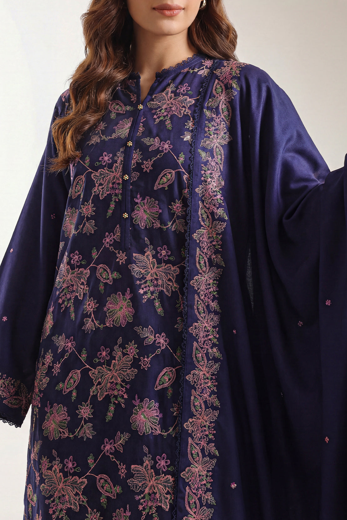 Luxury Pret Embroidered Pashmina Stitched 3 Piece