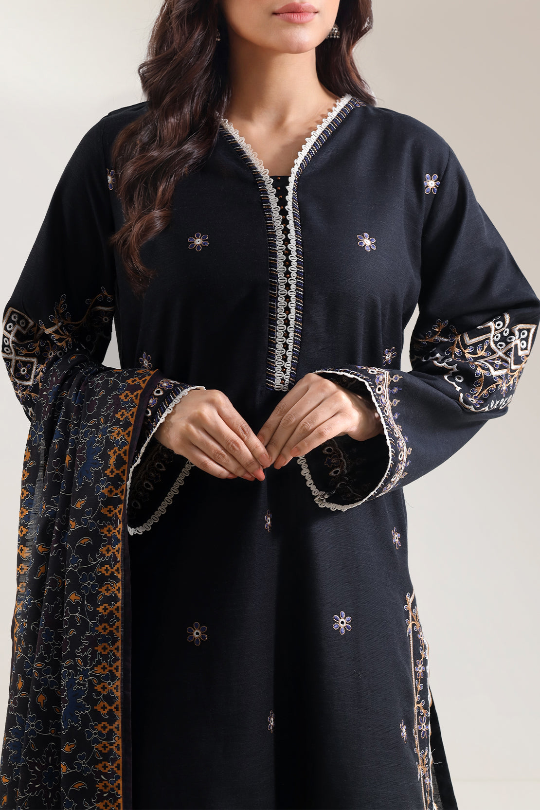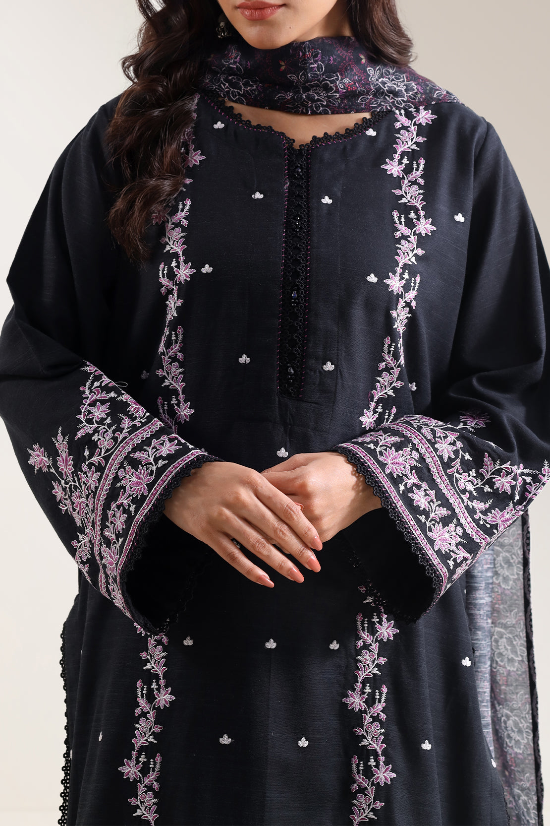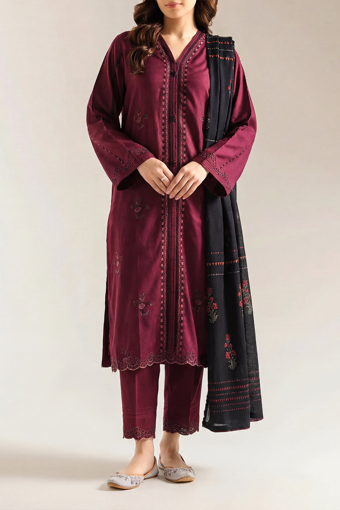 Solid Embroidered Khaddar Stitched 3 Piece