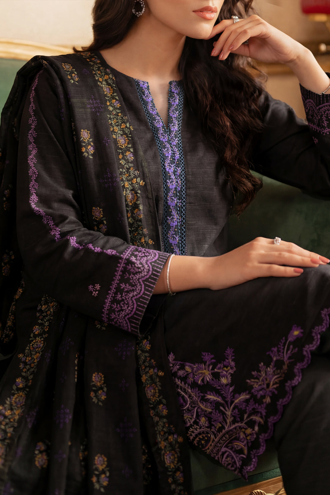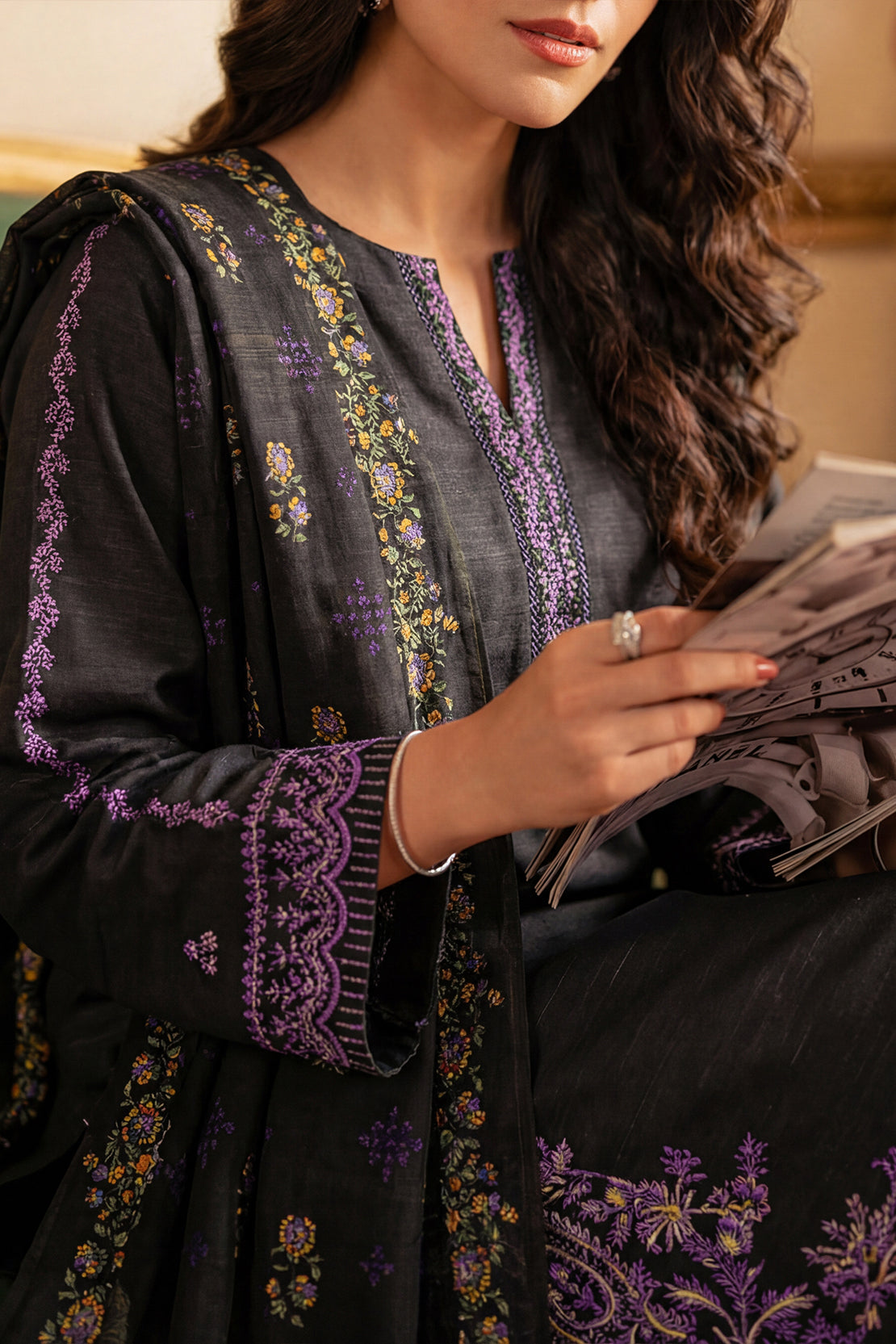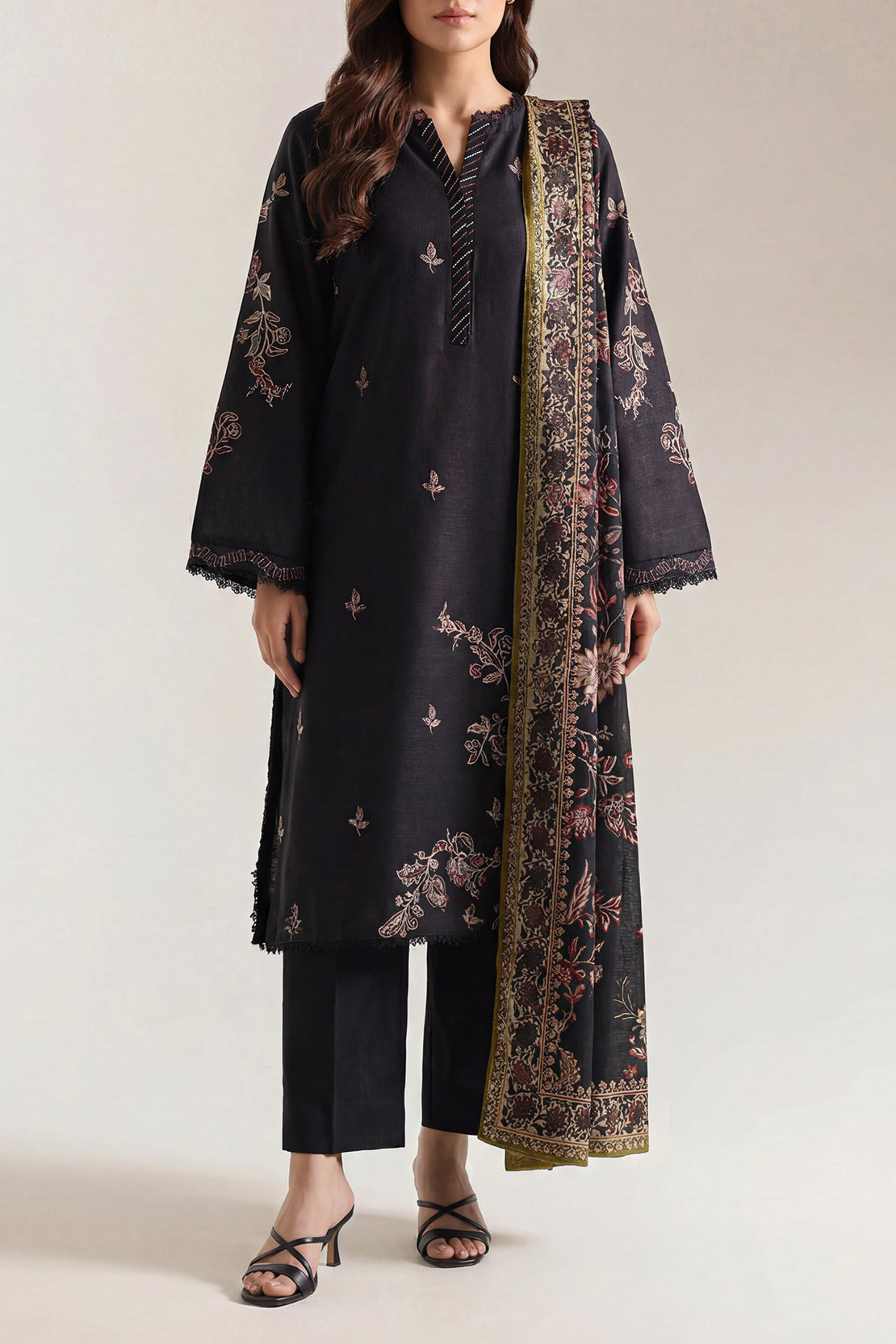 Solid Embroidered Khaddar Stitched 3 Piece