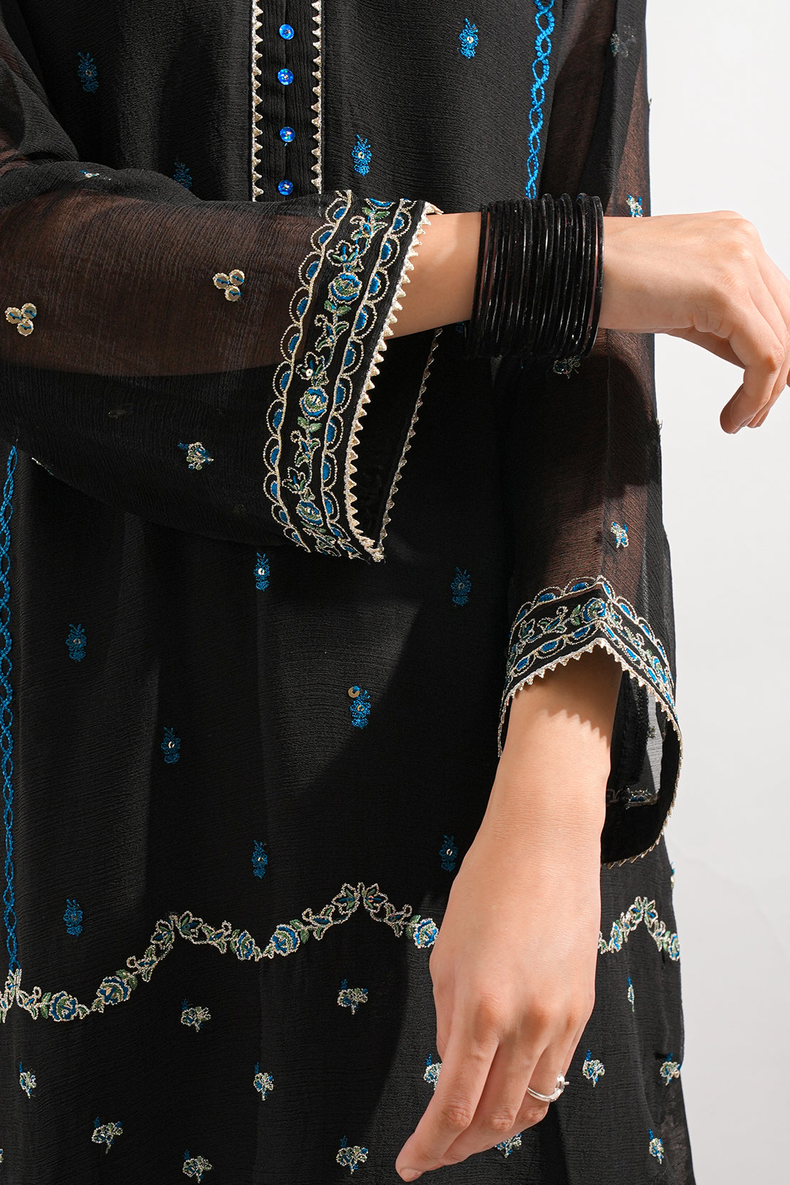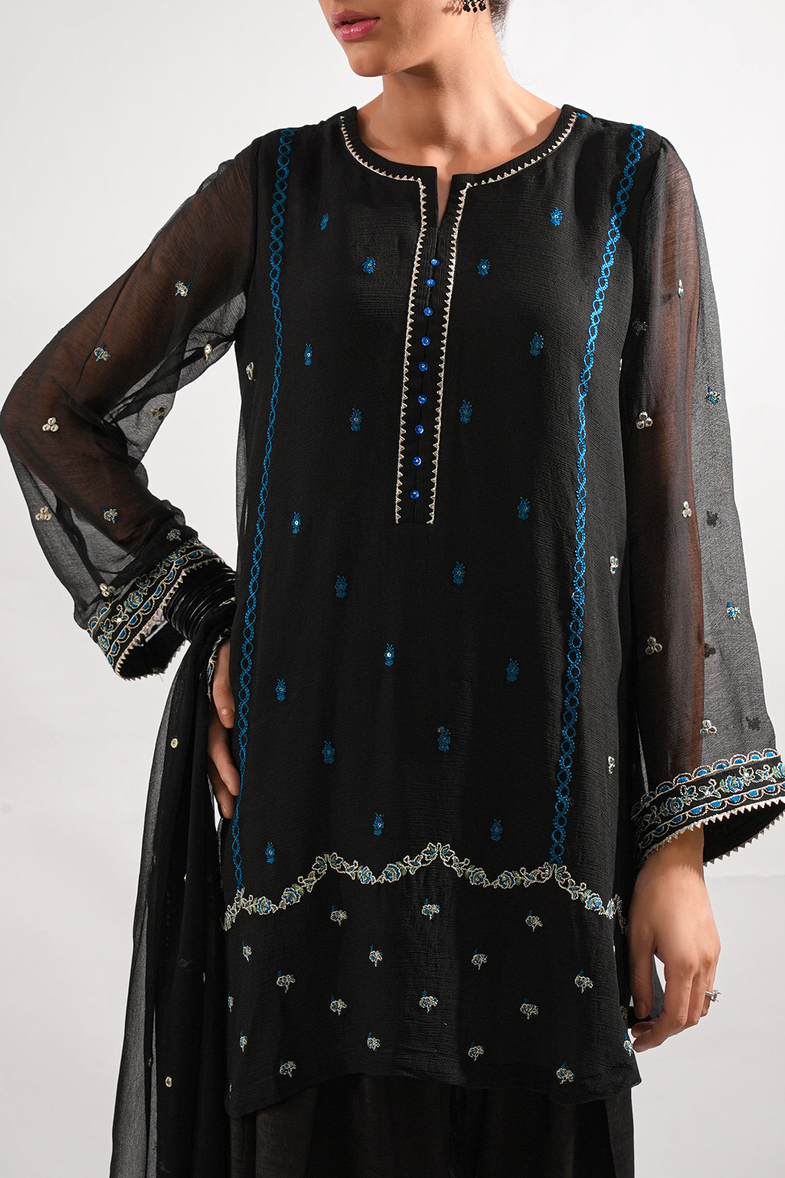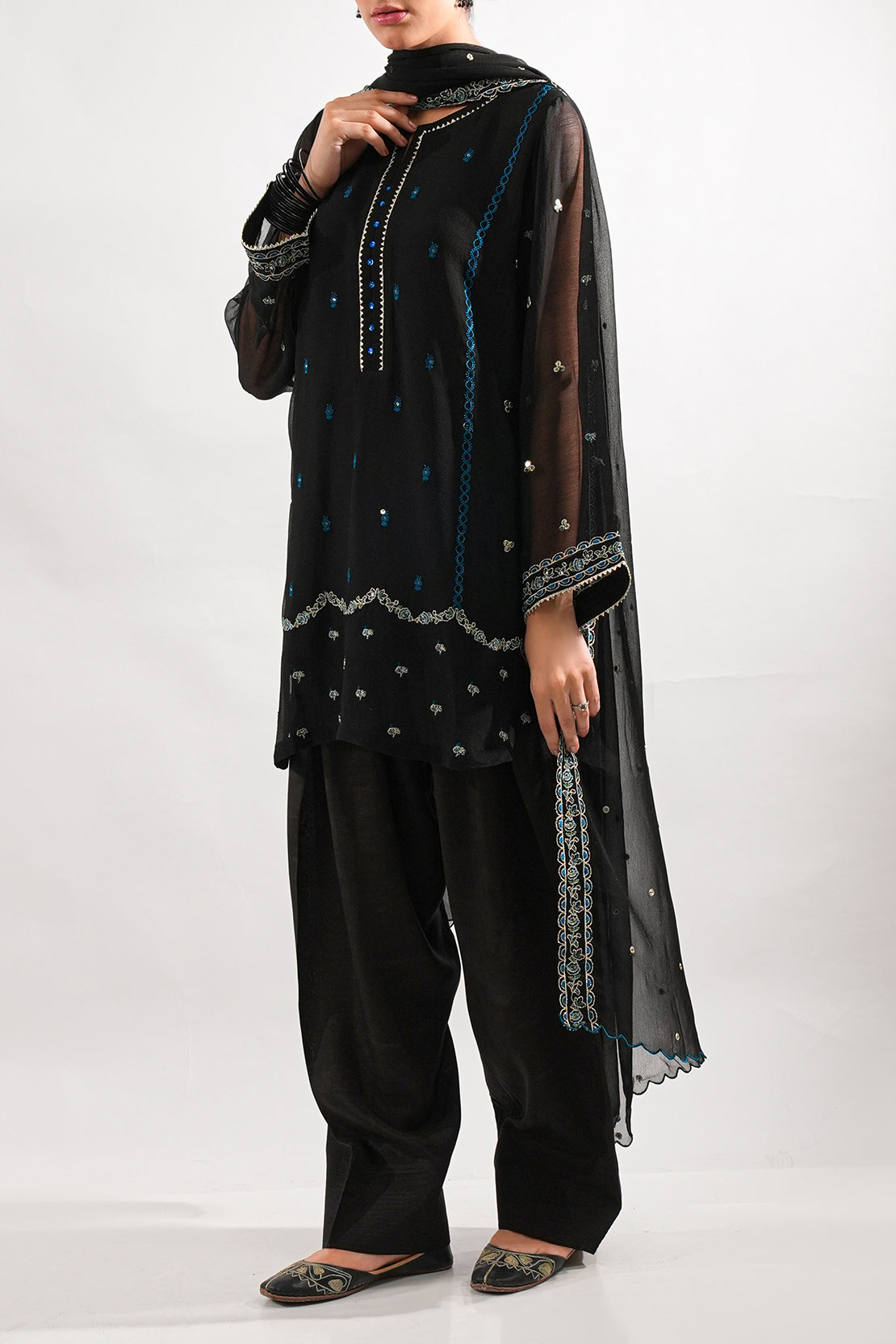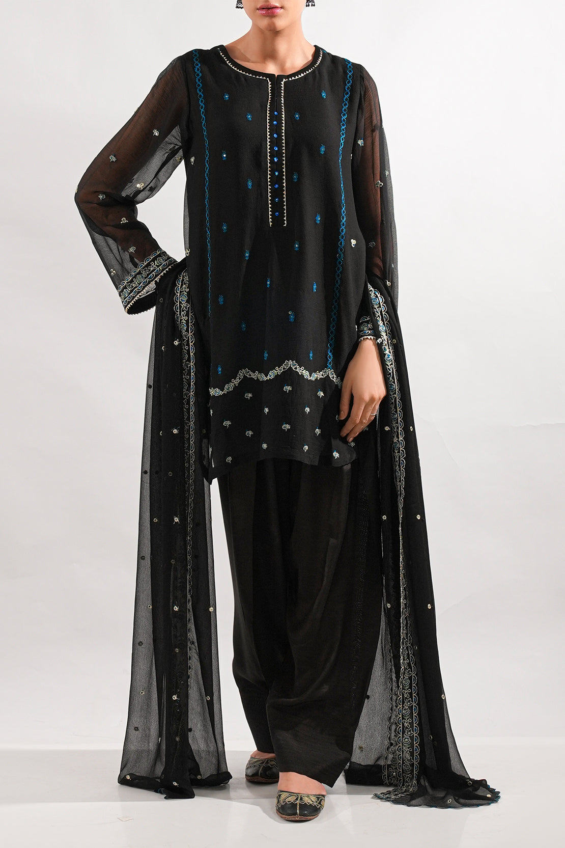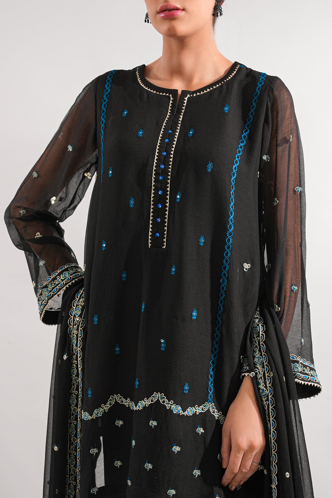 Solid Embroidered Chiffon Stitched 3 Piece