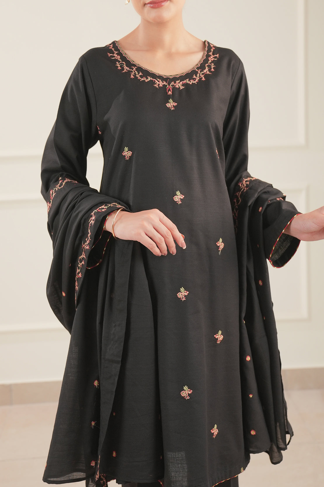 Solid Embroidered Cotton Viscose Stitched 3 Piece