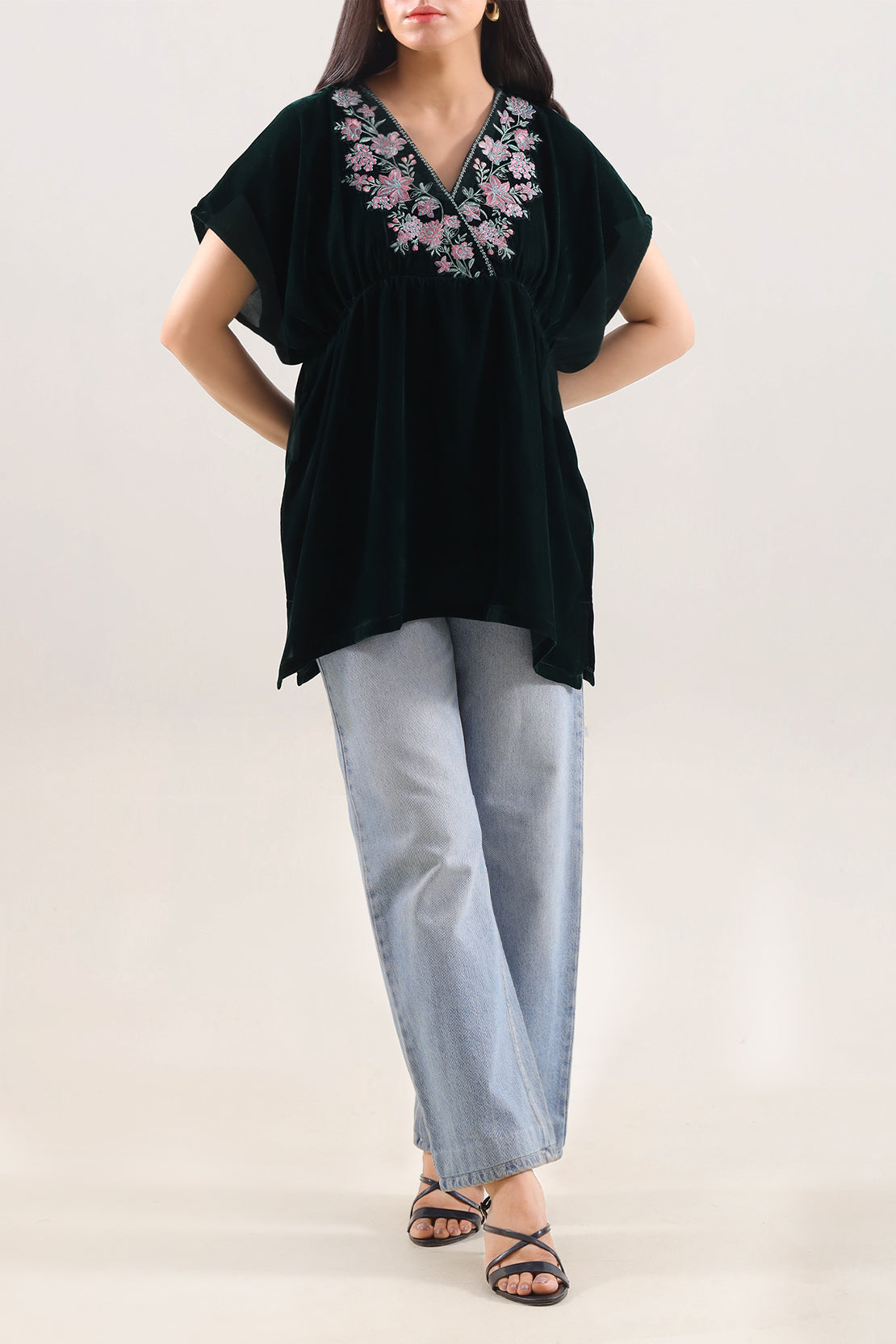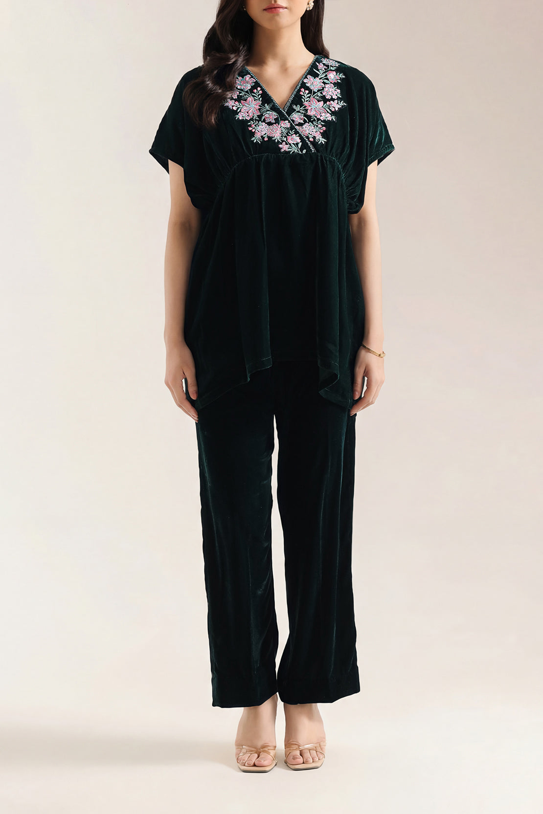 Solid Embroidered Velvet Stitched Shirt