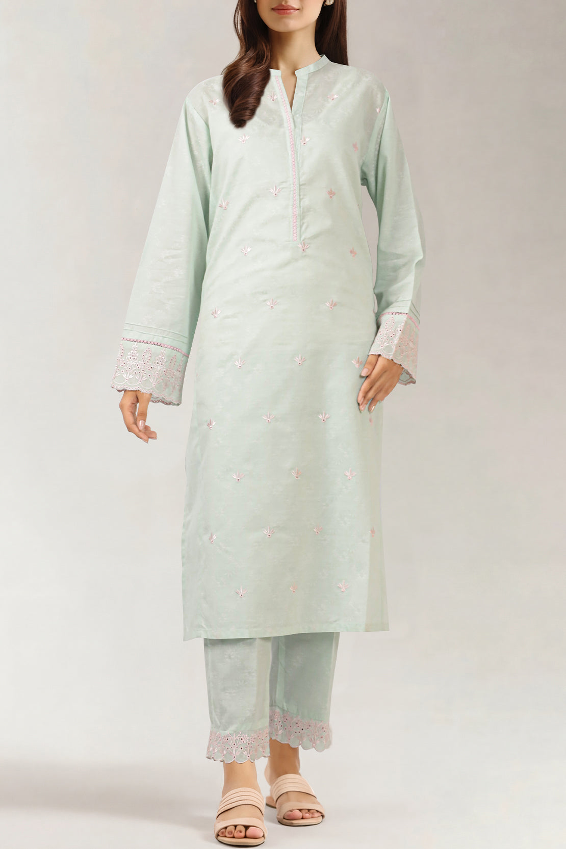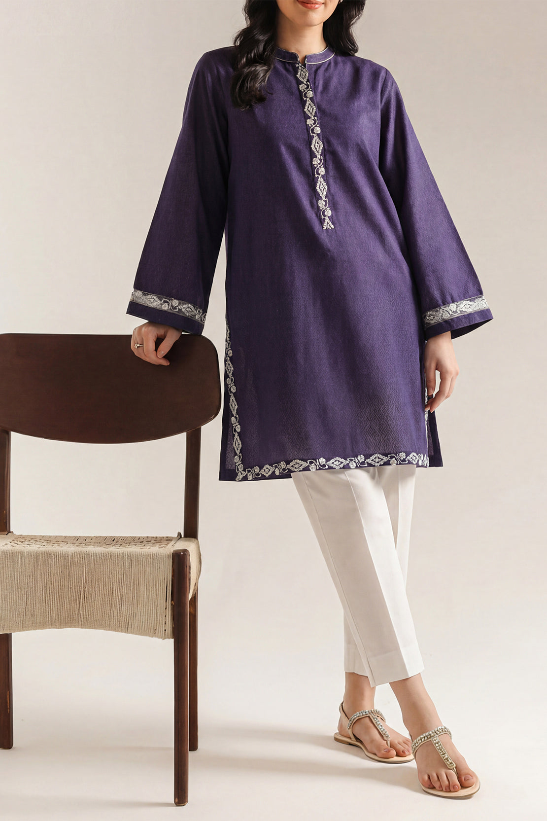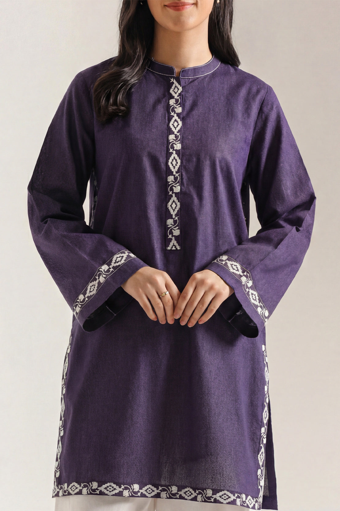 Solid Embroidered Karandi Stitched Shirt