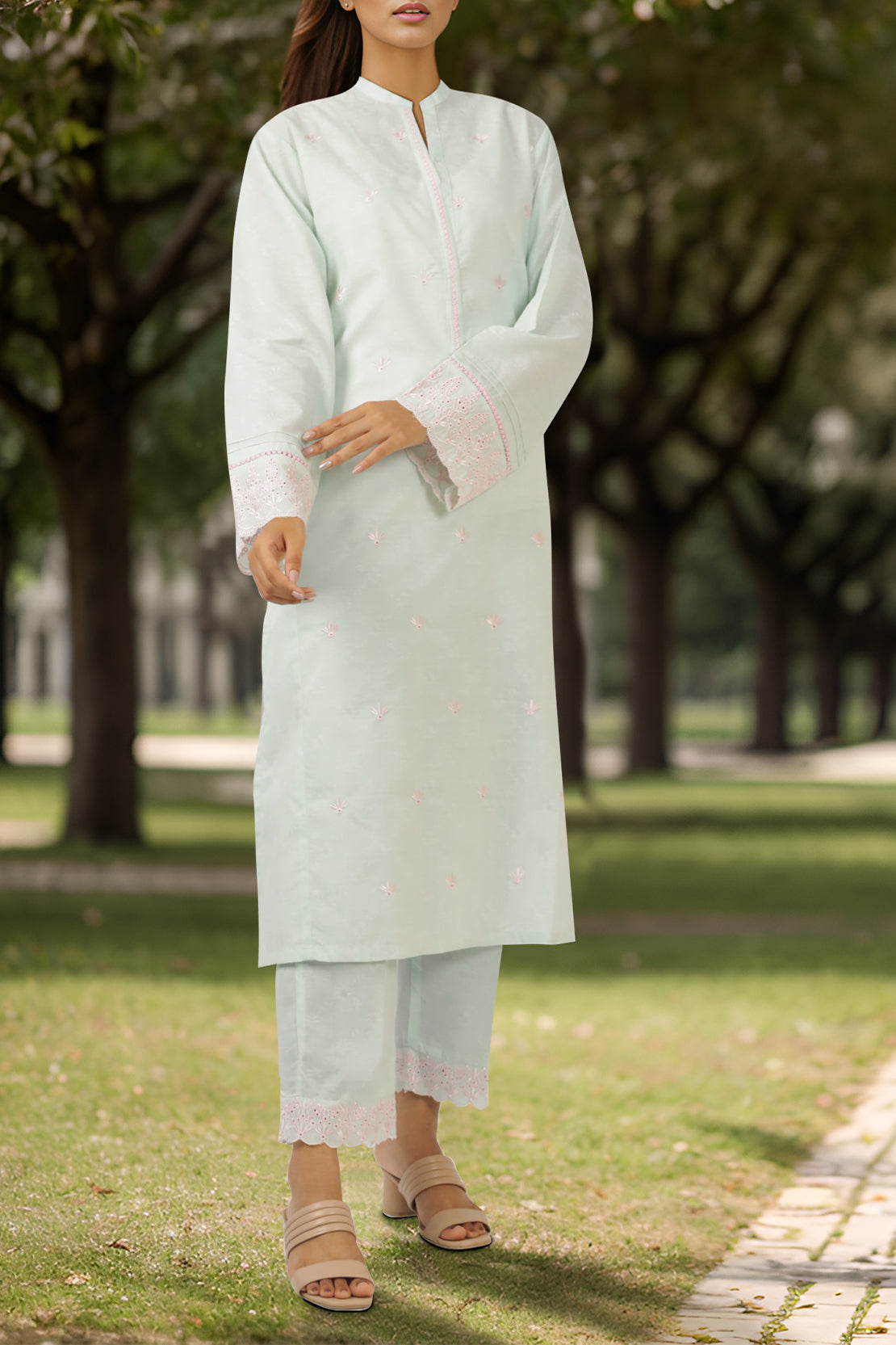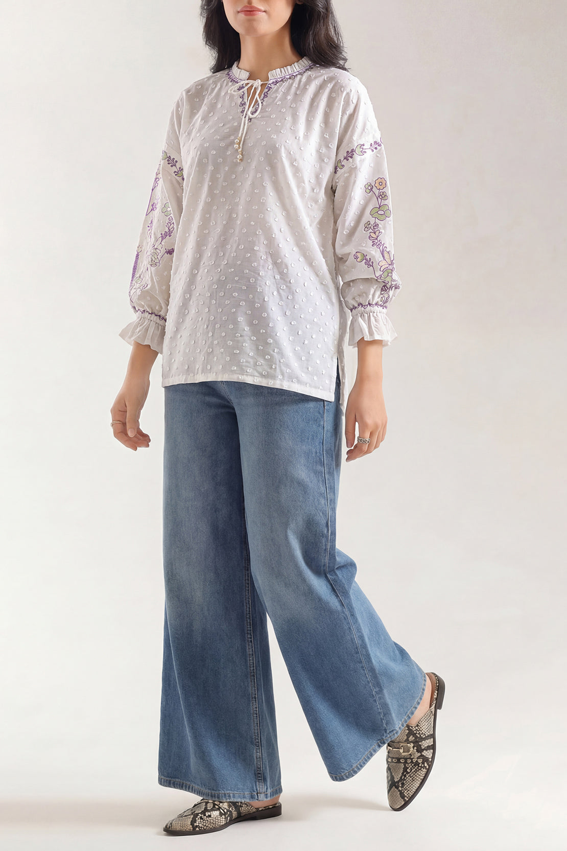 Solid Embroidered Cambric Stitched Shirt