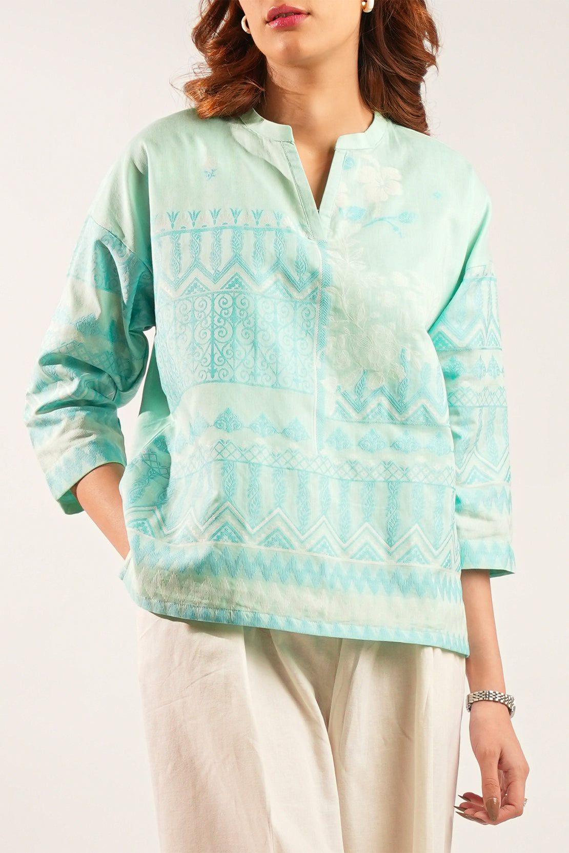 Embroidered Jacquard Cotton Stitched Shirt
