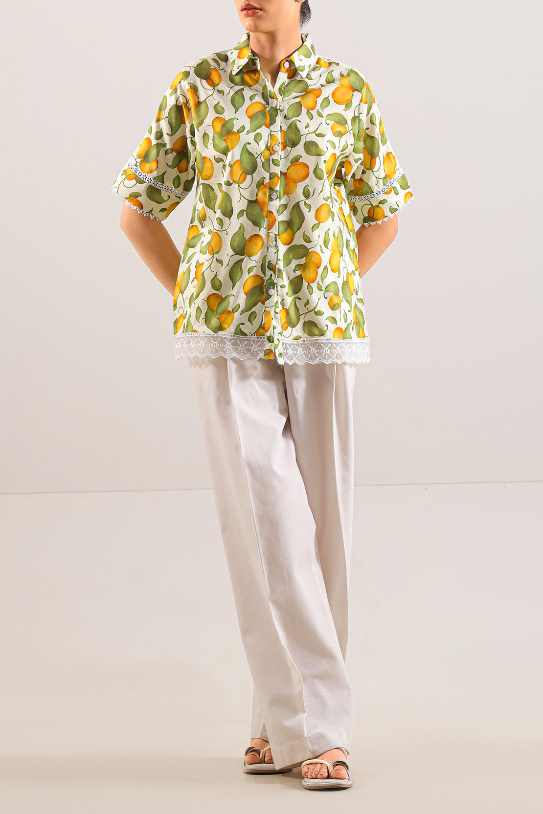 An Elevated Ready-To-Wear Shirt Crafted From Distinctively Textured Dobby Self Fabric That Offers Subtle Visual Depth And Light Structure. The Tailored Silhouette Features A Delicate Printed Pattern Infused With Understated Elegance, Perfect For Everyday Sophistication. This SAYA Shirt Blends Refined Detail With Breathable Comfort—Ideal For Transitional Styling, Casual Daywear, Or Graceful Layered Looks.
