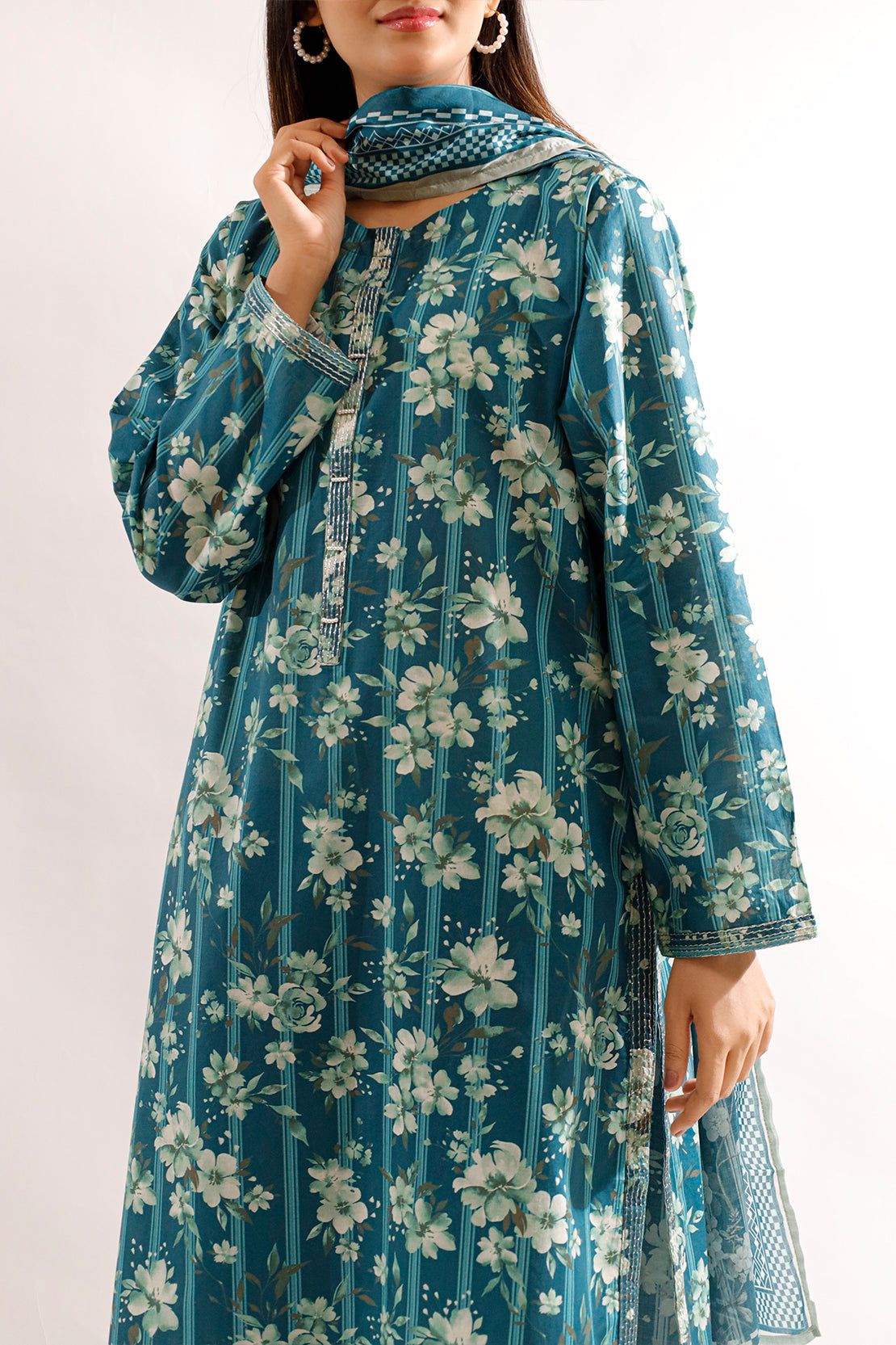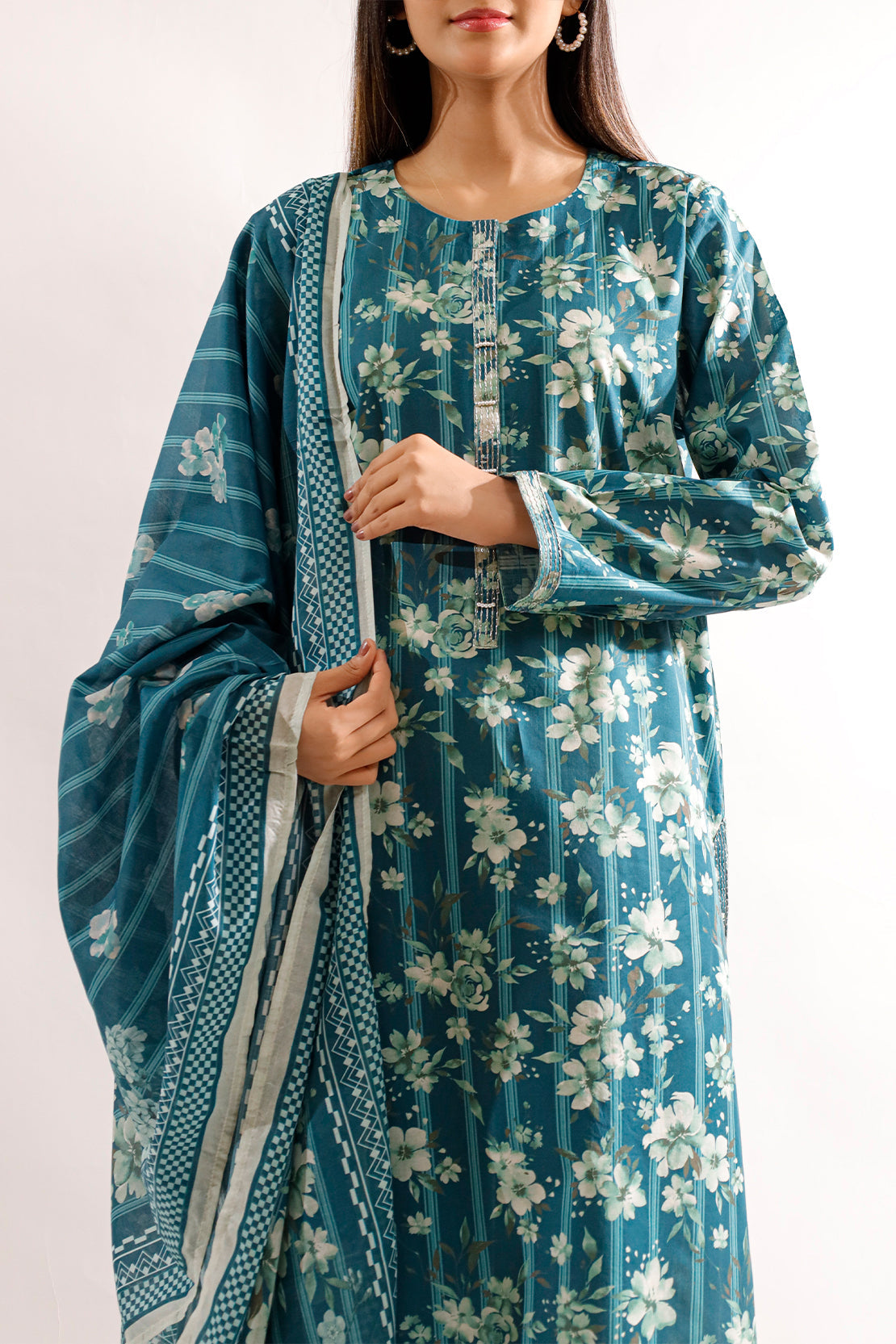 Crafted in breathable lawn fabric, this printed and embroidered stitched shirt from Saya.pk blends classic design with contemporary charm. Its delicate embroidery adds a graceful touch, making it perfect for casual and semi-formal daywear.