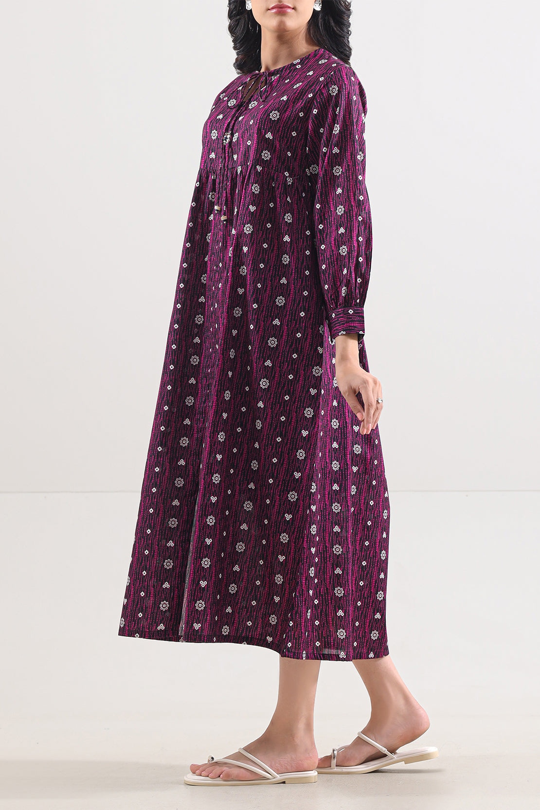 Channel Everyday Grace With This Printed Lawn Stitched Dress From SAYA. Made From Lightweight, Breathable Lawn Fabric, The Dress Features A Delicate Print That Blends Soft Hues With Feminine Detail. Its Flowing Silhouette Ensures Comfortable Wear With A Touch Of Elegance, Making It Ideal For Casual Gatherings, Summer Outings, Or Daytime Events. A Perfect One-Piece Solution That Combines Style, Comfort, And Seasonal Freshness With Effortless Charm.