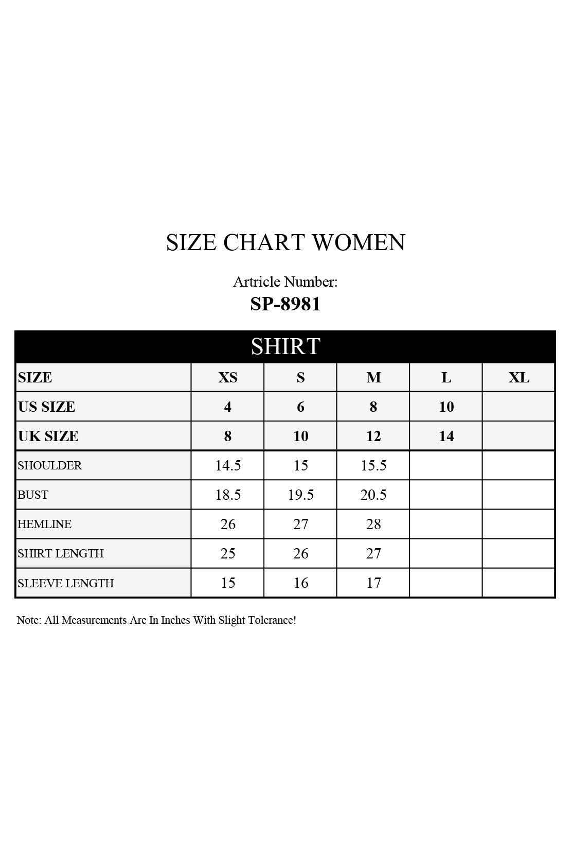 | Shirt Length | 0.5 | 44 | 44 | 45 | 45 | 46 |