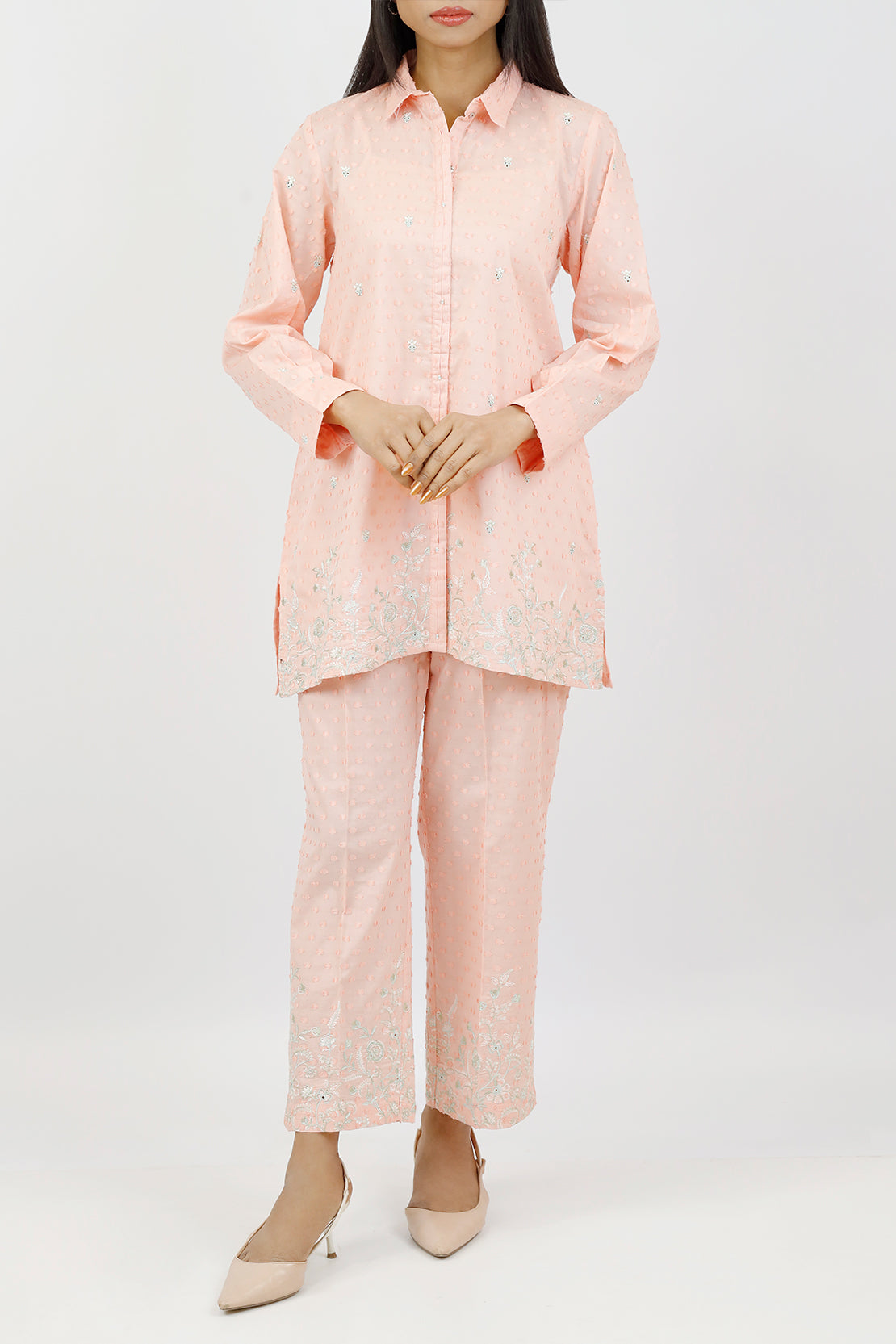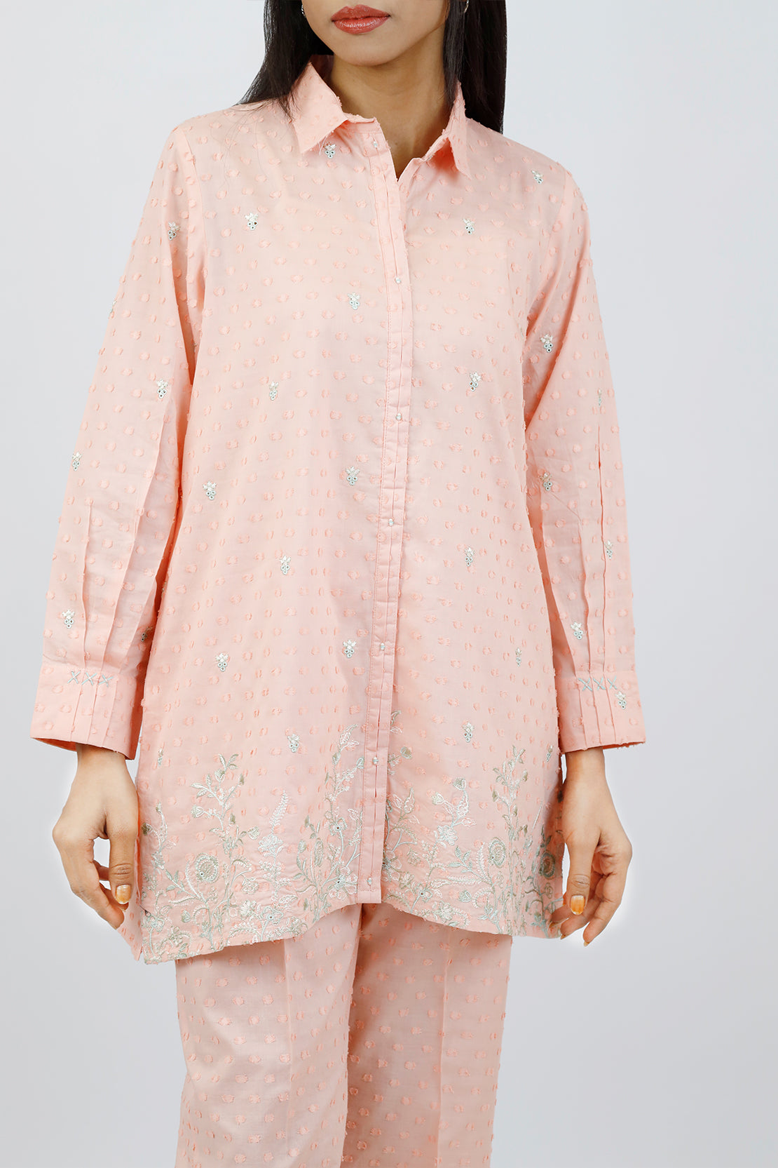 Embroidered Cotton Reverse Jacquard Stitched Shirt Trouser