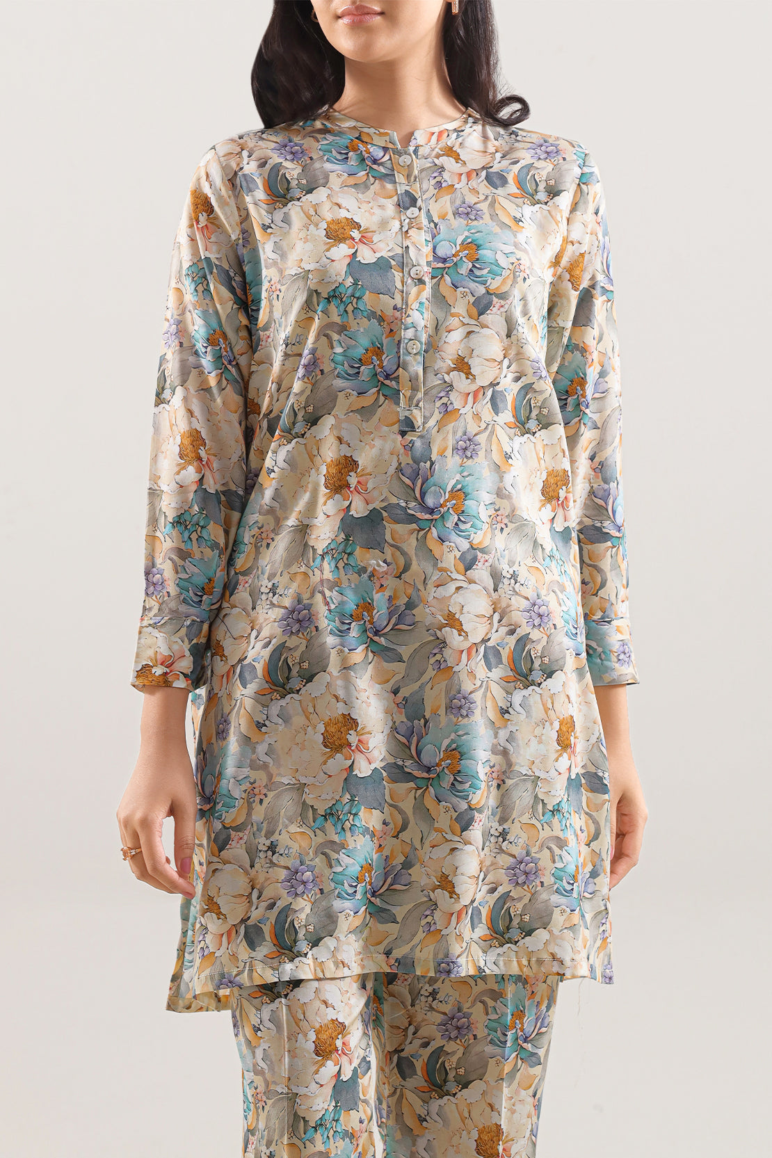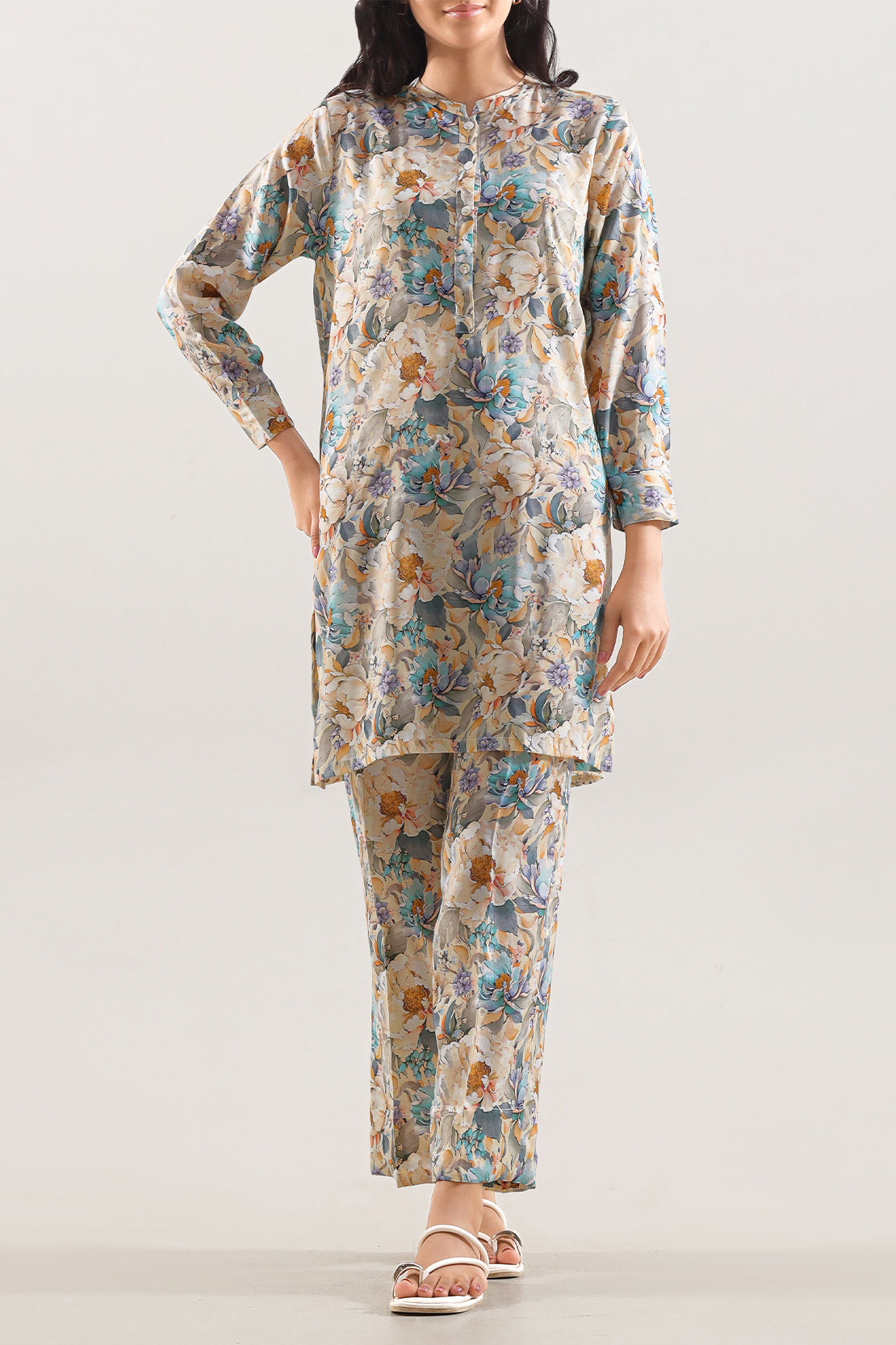 Infuse grace into your everyday wardrobe with this Printed Arabic Lawn Stitched 2-Piece. Crafted from airy Arabic lawn, this design offers a lightweight feel ideal for the warm season. The elegant print and clean-cut trouser ensure a smart, modest silhouette perfect for daywear.