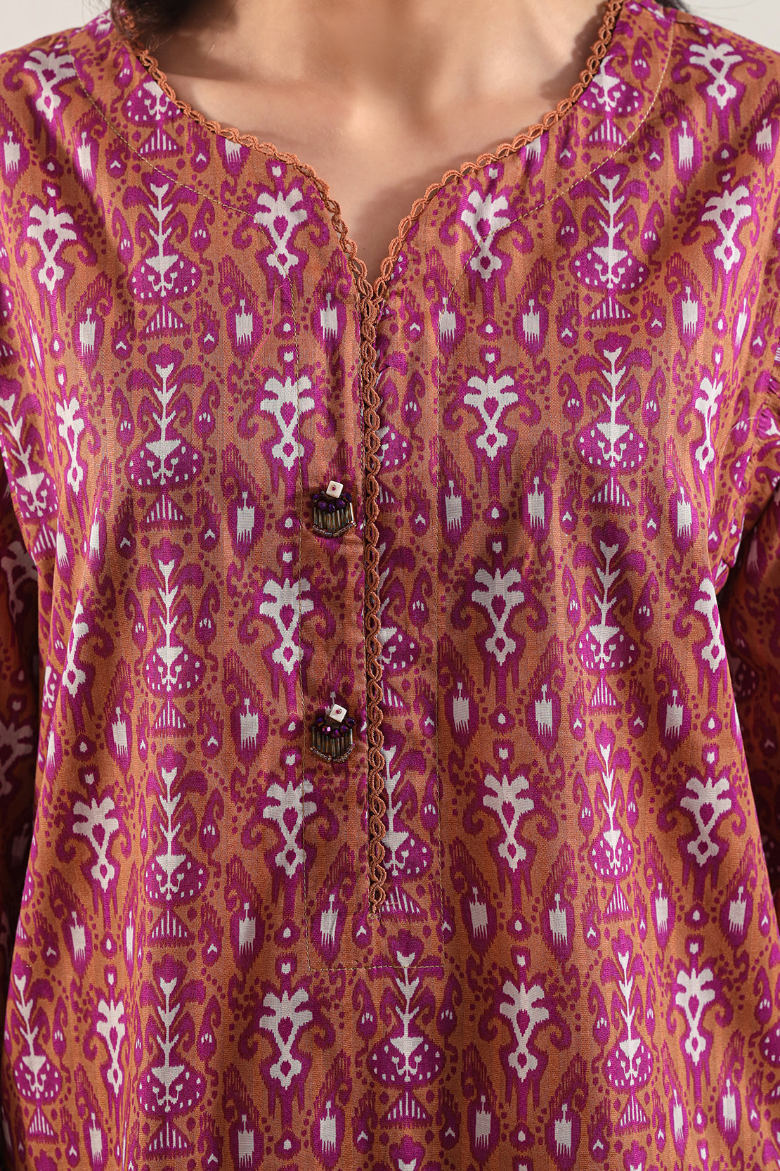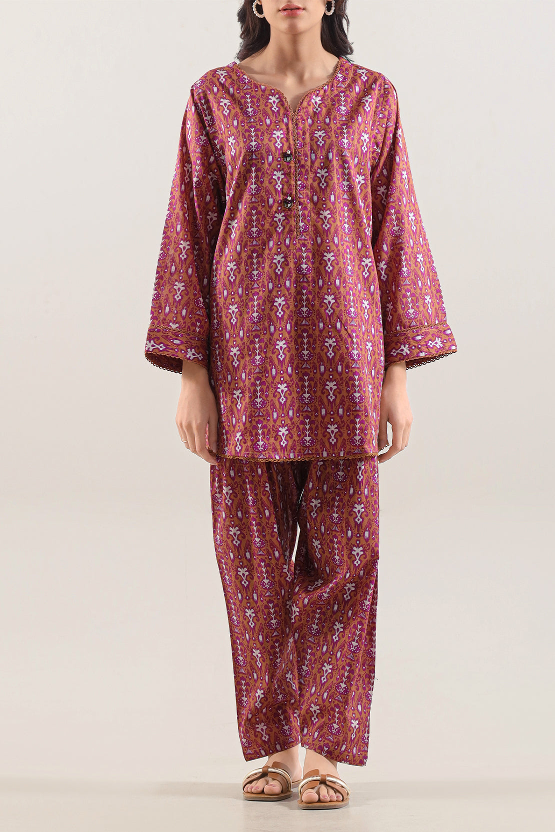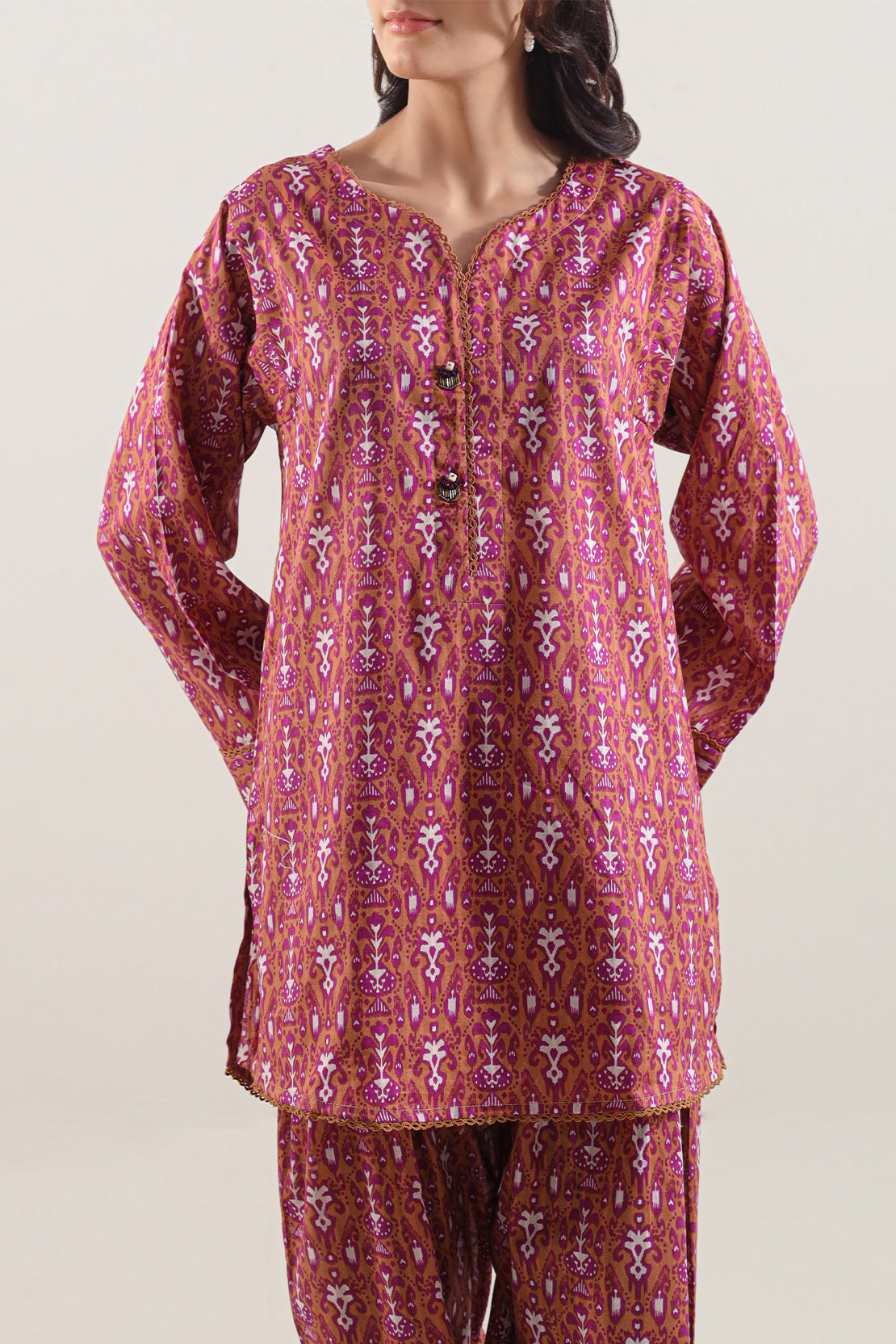 Playfully Elegant, This Printed Lawn Stitched 2‑Piece Set From SAYA Blends Comfort With Chic Style. Crafted From Soft, Breathable Premium Lawn Featuring A Vibrant Seasonal Print, The Ready‑To‑Wear Shirt Offers Lightweight Ease And Stylish Appeal, While The Matching Trouser Ensures Comfortable Movement. Ideal For Casual Meet‑Ups, Festive Events, Or Everyday Summer Chic.