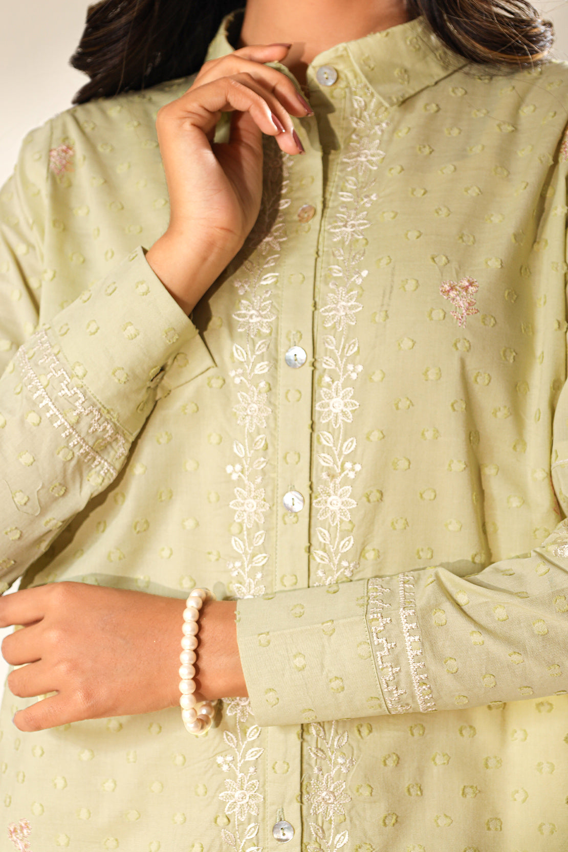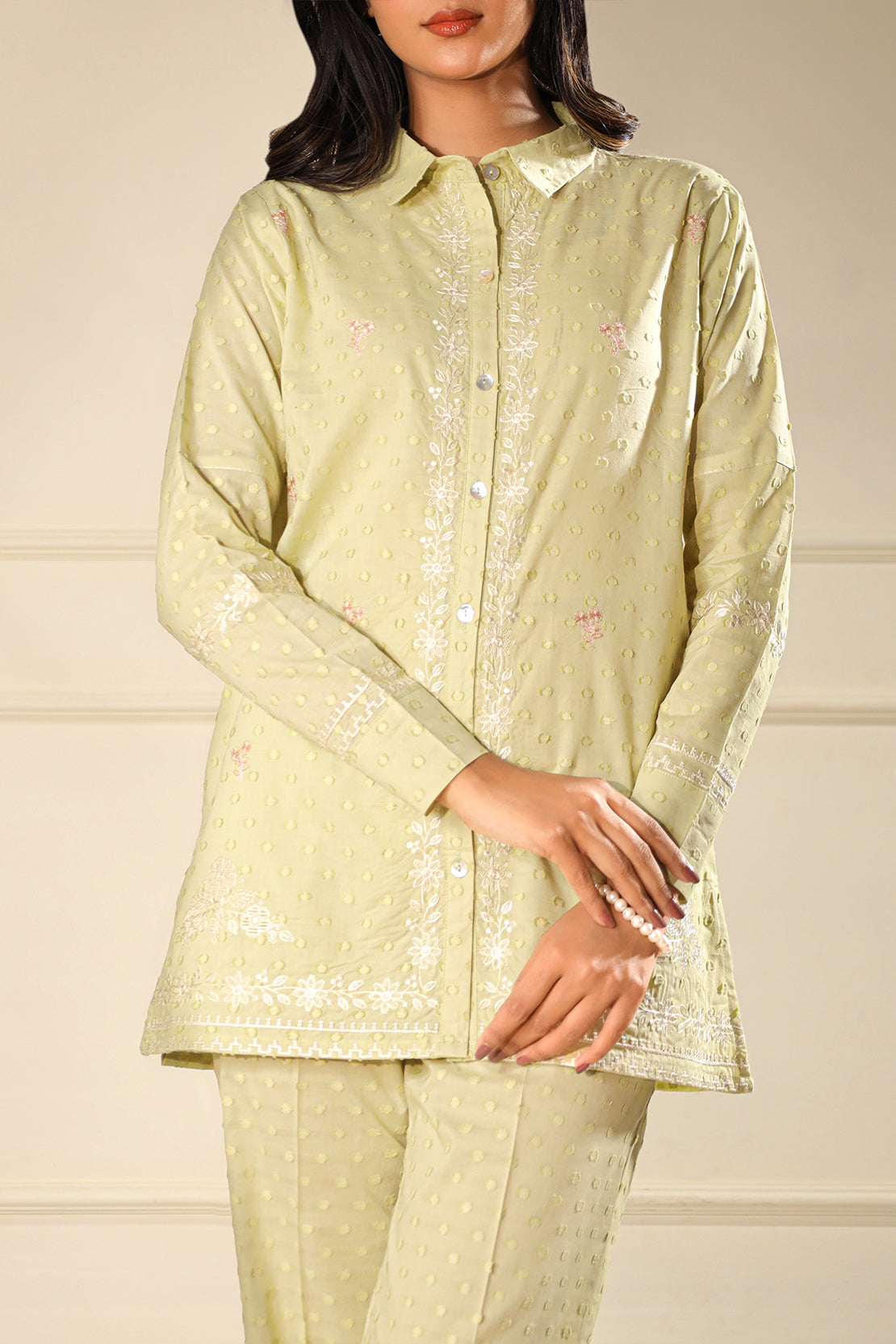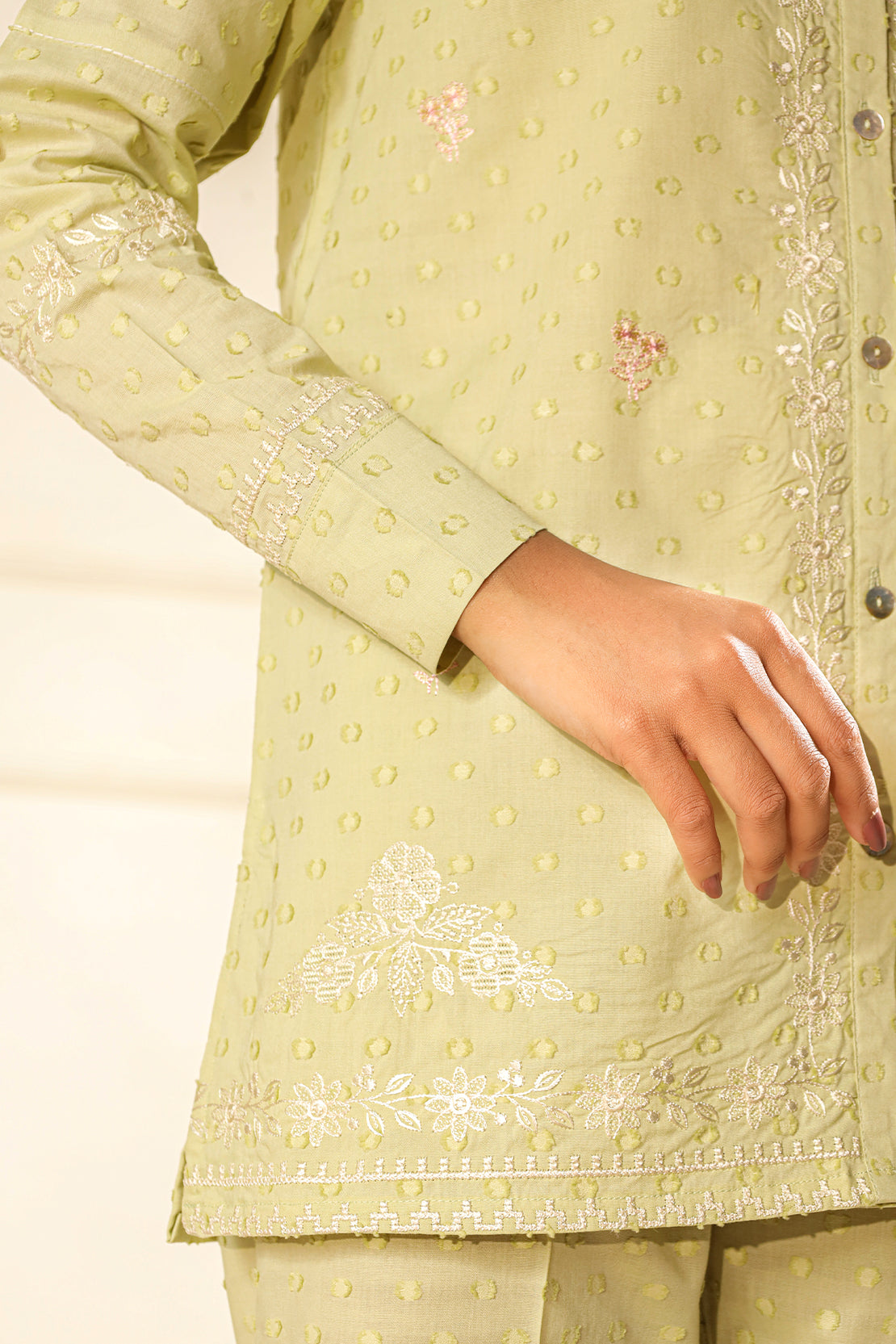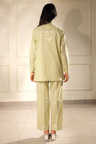 Elevate your wardrobe with Saya's Reverse Jacquard Stitched 2-Piece ensemble. Crafted from premium reverse jacquard fabric, this ready-to-wear set in a vibrant yellowish-green hue offers a perfect blend of comfort and elegance. Ideal for semi-formal occasions and festive gatherings, it reflects Saya's commitment to quality and contemporary design.
