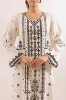 Add grace to your everyday wear with this solid embroidered stitched 2-piece. The elegant cotton shirt features tasteful embroidery paired with a dyed cotton trouser—an ideal pick for a refined casual look with a classic touch.