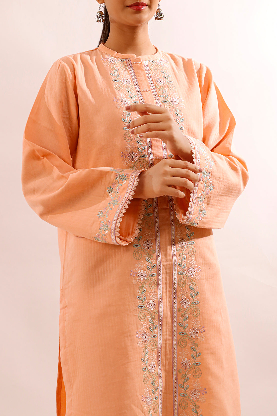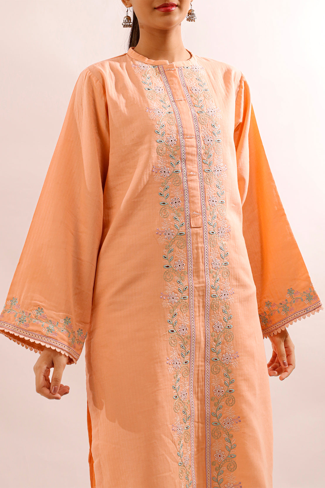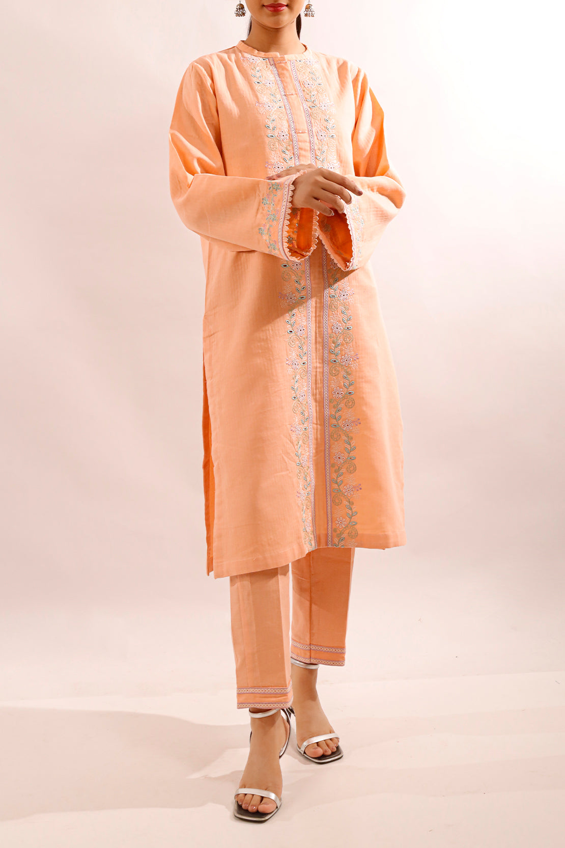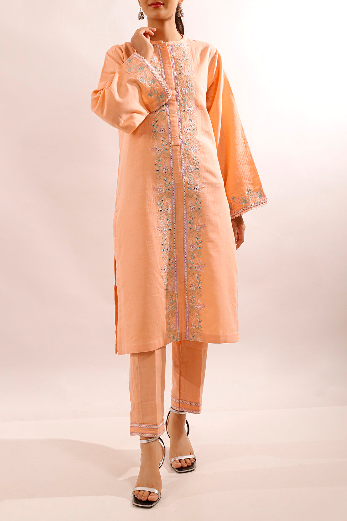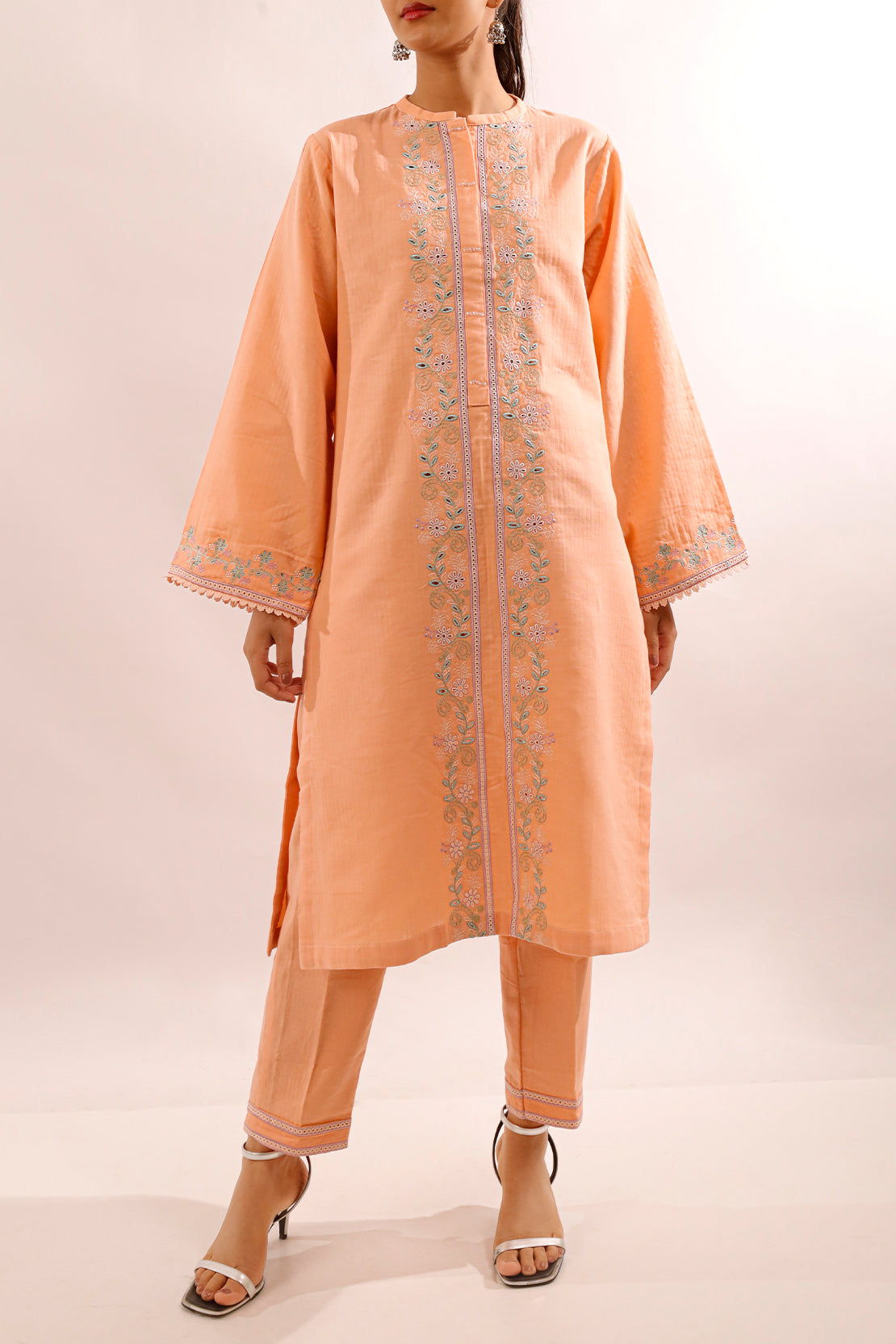 Solid Embroidered Cotton Stitched 2 Piece (Shirt/Trouser)
